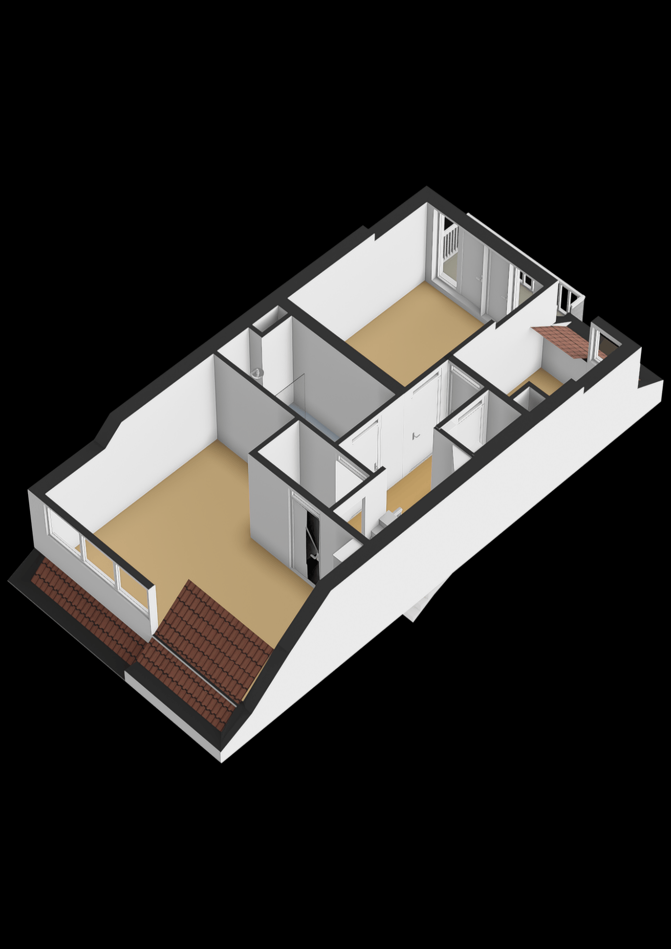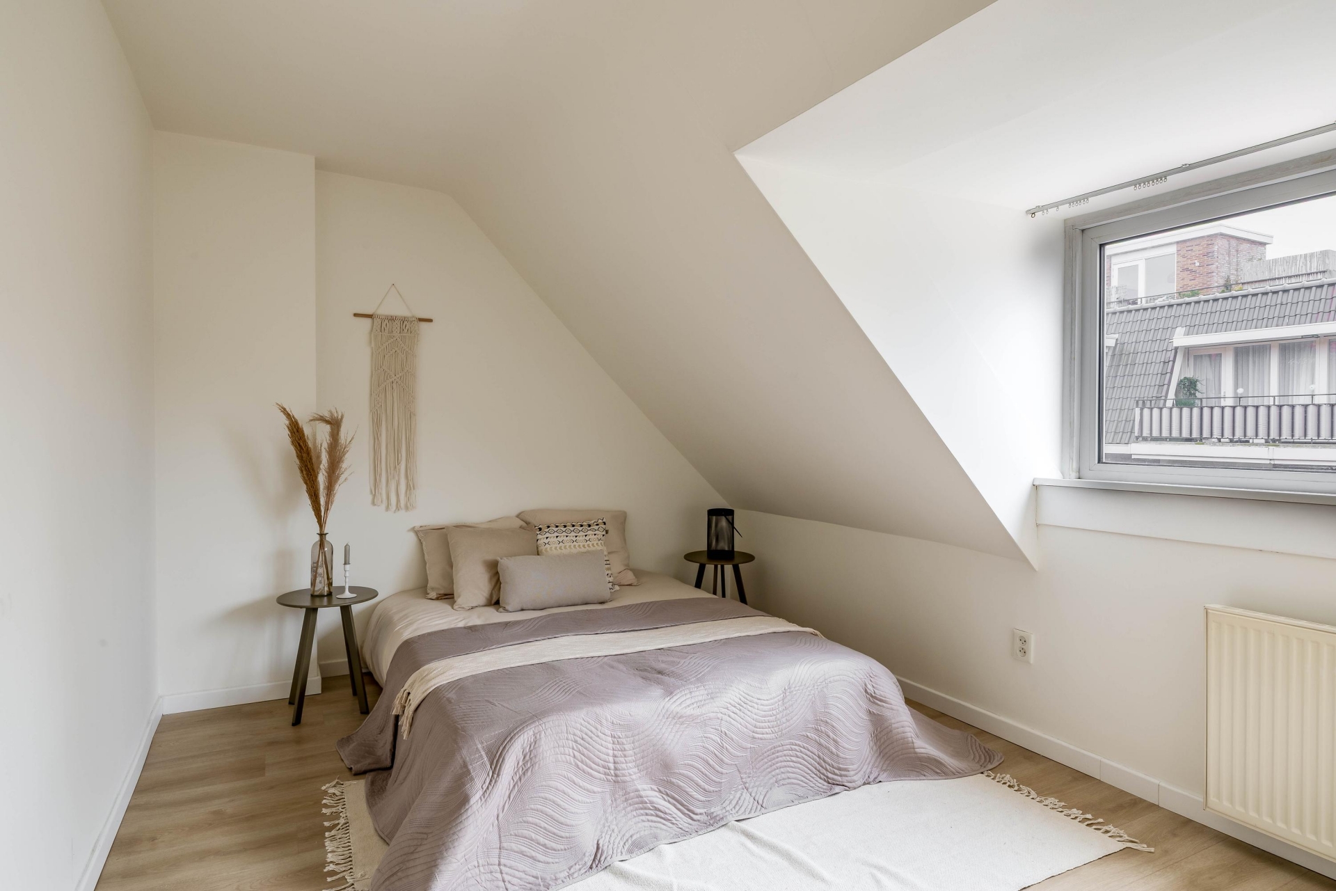 De tweede verdieping beschikt over twee ruime slaapkamers, waarvan één met schuifpui naar het tweede balkon, een aparte werkkamer, een moderne inloopdouche met mechanische ventilatie en een separaat toilet. Ook hier is alles uitgevoerd met kunststof kozijnen en dubbelglas.