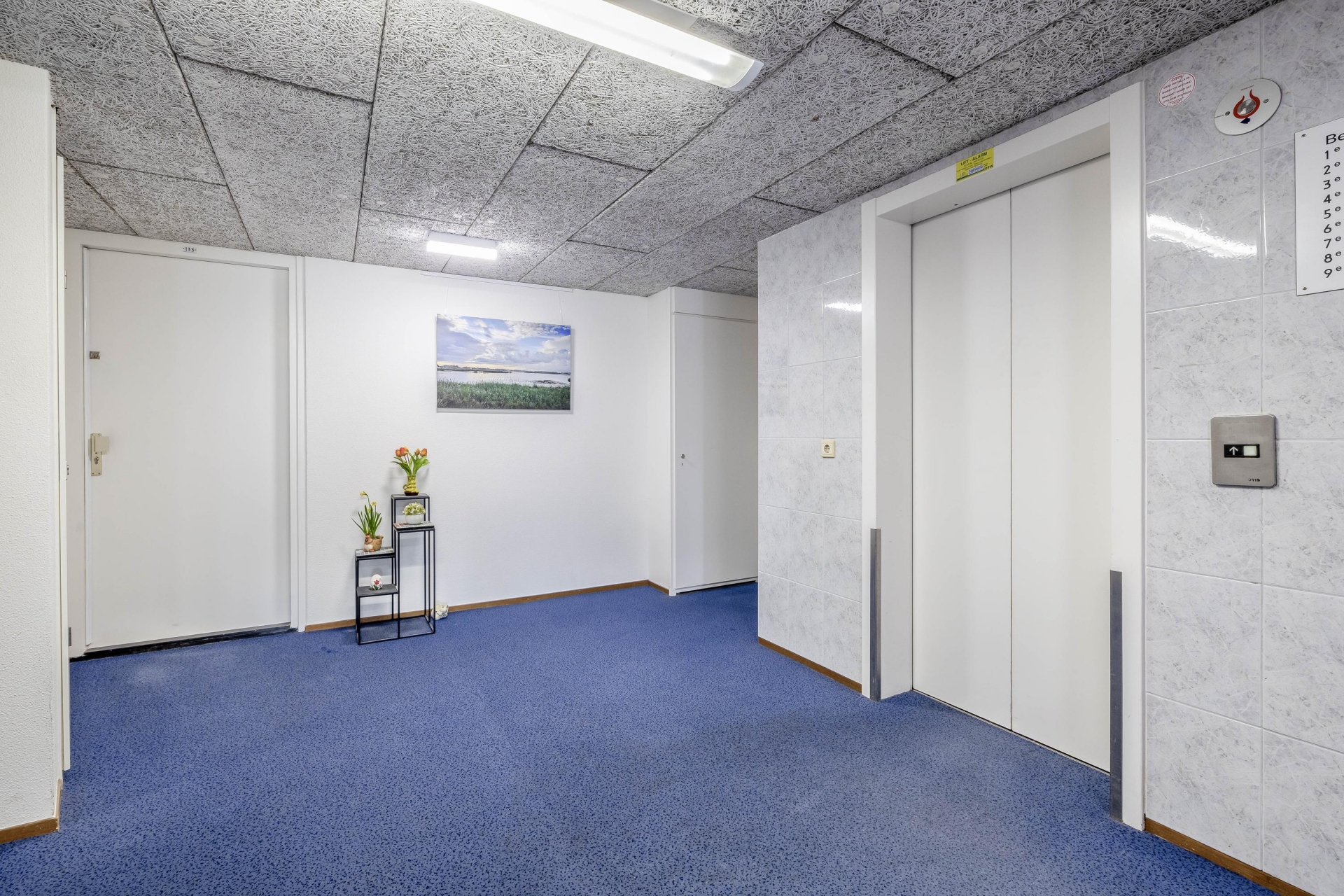 Het complex is verzorgd en biedt toegang tot de appartementen via een centrale entree. Vanuit hier bereik je de woning en de bijbehorende voorzieningen, waaronder de garage.