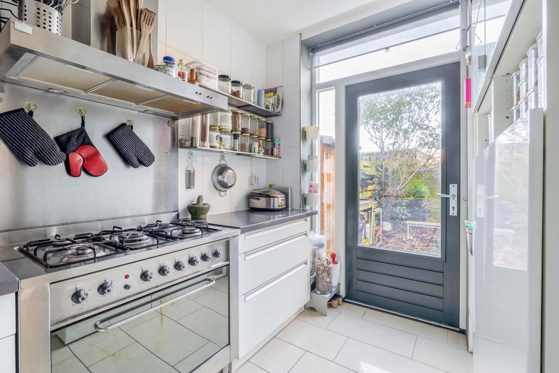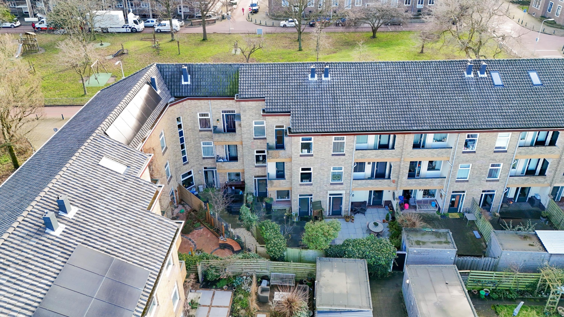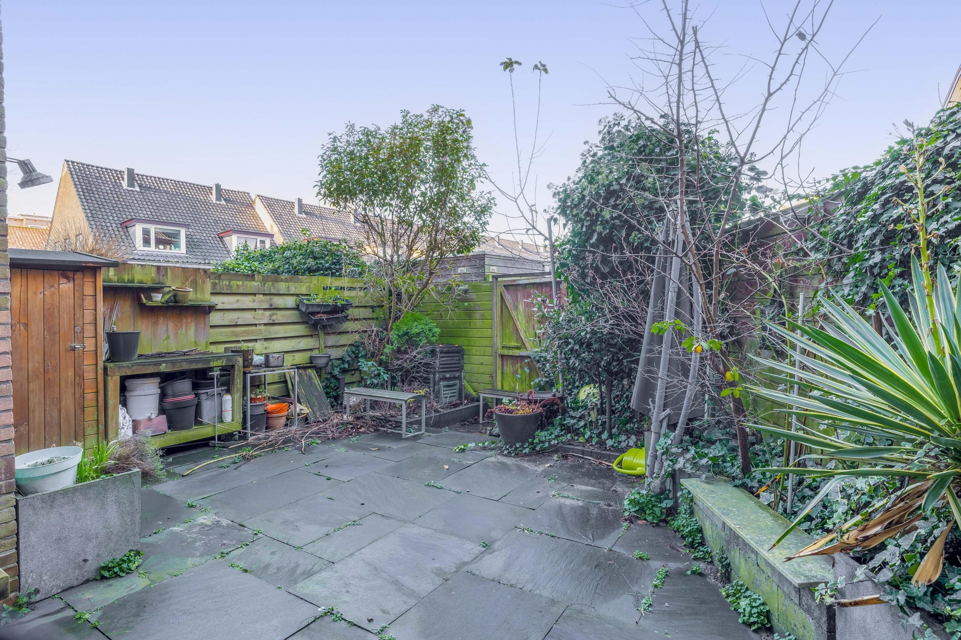 De achtertuin beschikt over een achterom en een houten berging. Ideaal voor fietsen en opslag. De voortuin zorgt voor extra privacy en een prettige afstand tot de straat.