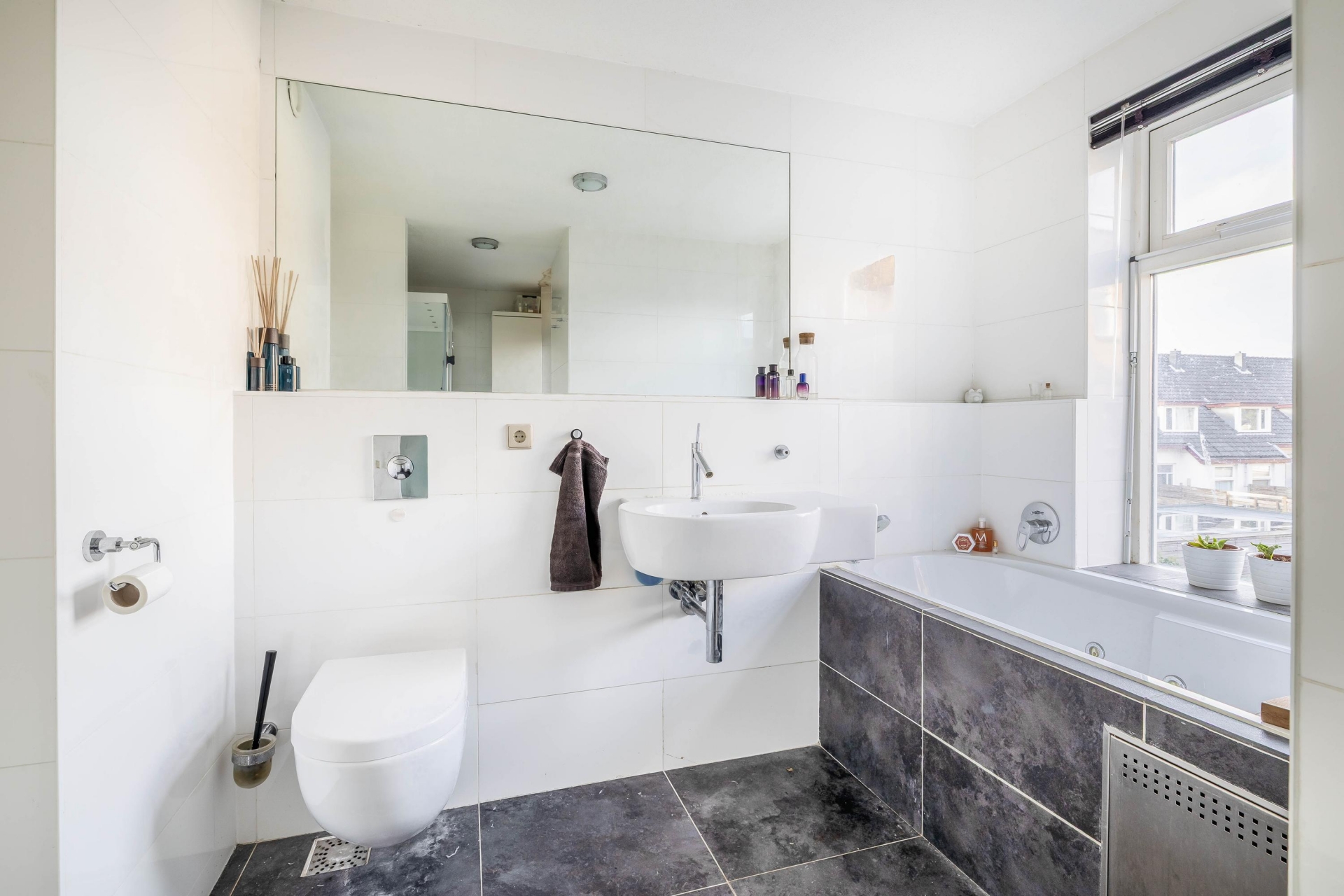 Op de eerste verdieping bevinden zich twee slaapkamers en de badkamer. De badkamer is compleet uitgevoerd met een inloopdouche, ligbad en toilet. Eén van de slaapkamers geeft toegang tot het balkon en wordt momenteel gebruikt als inloopkast.