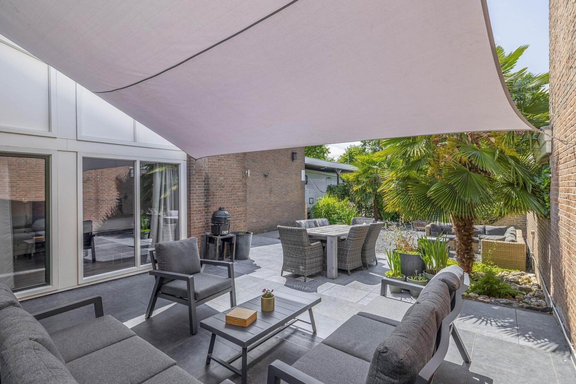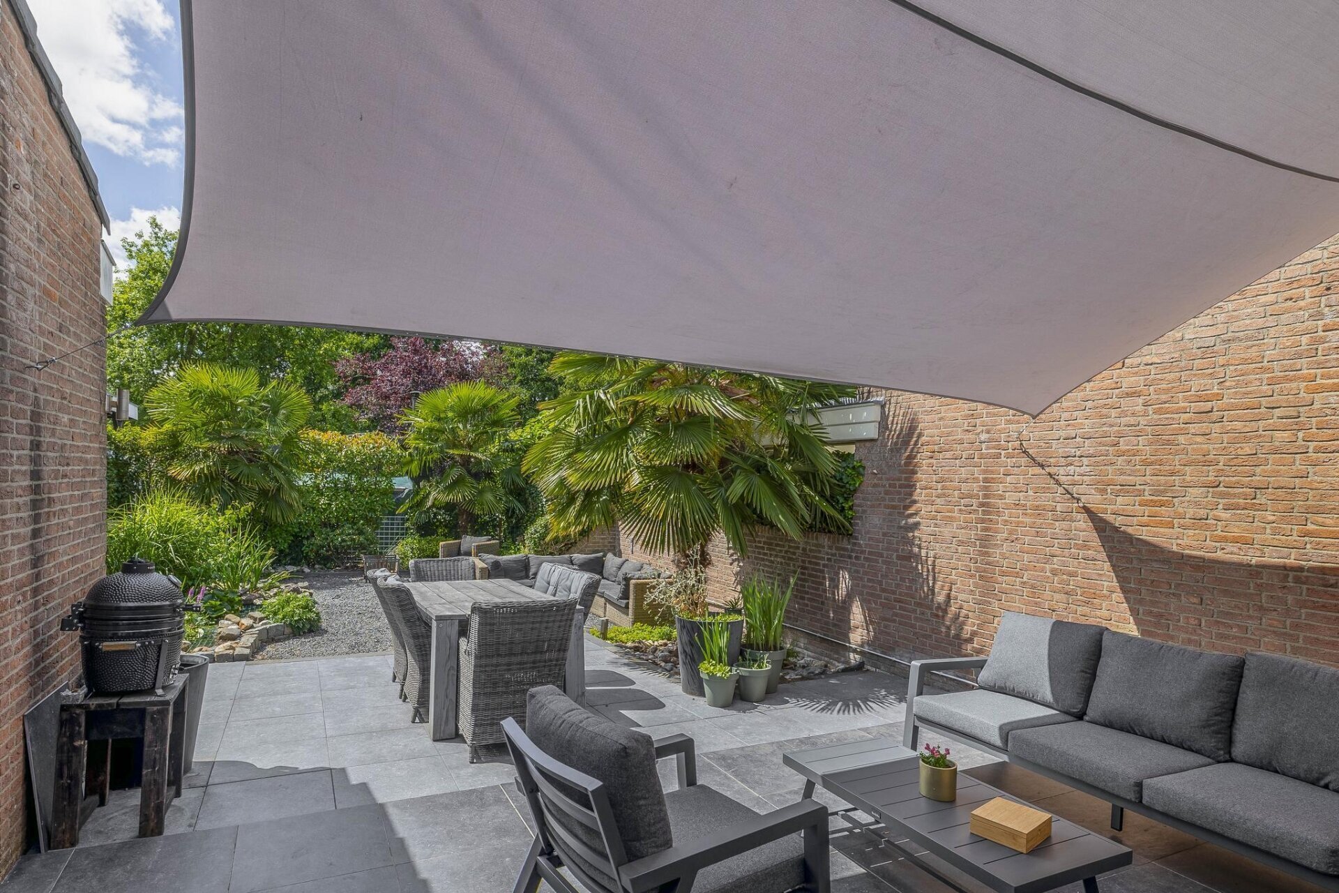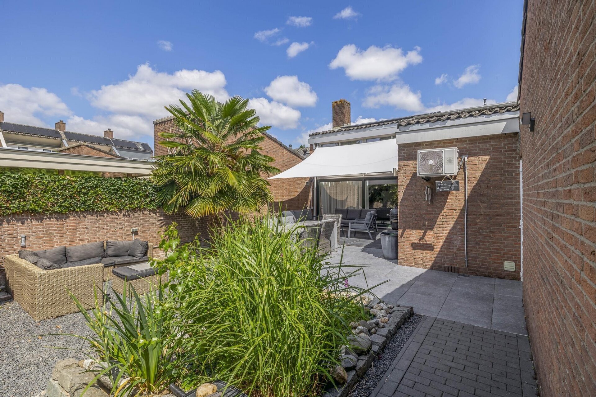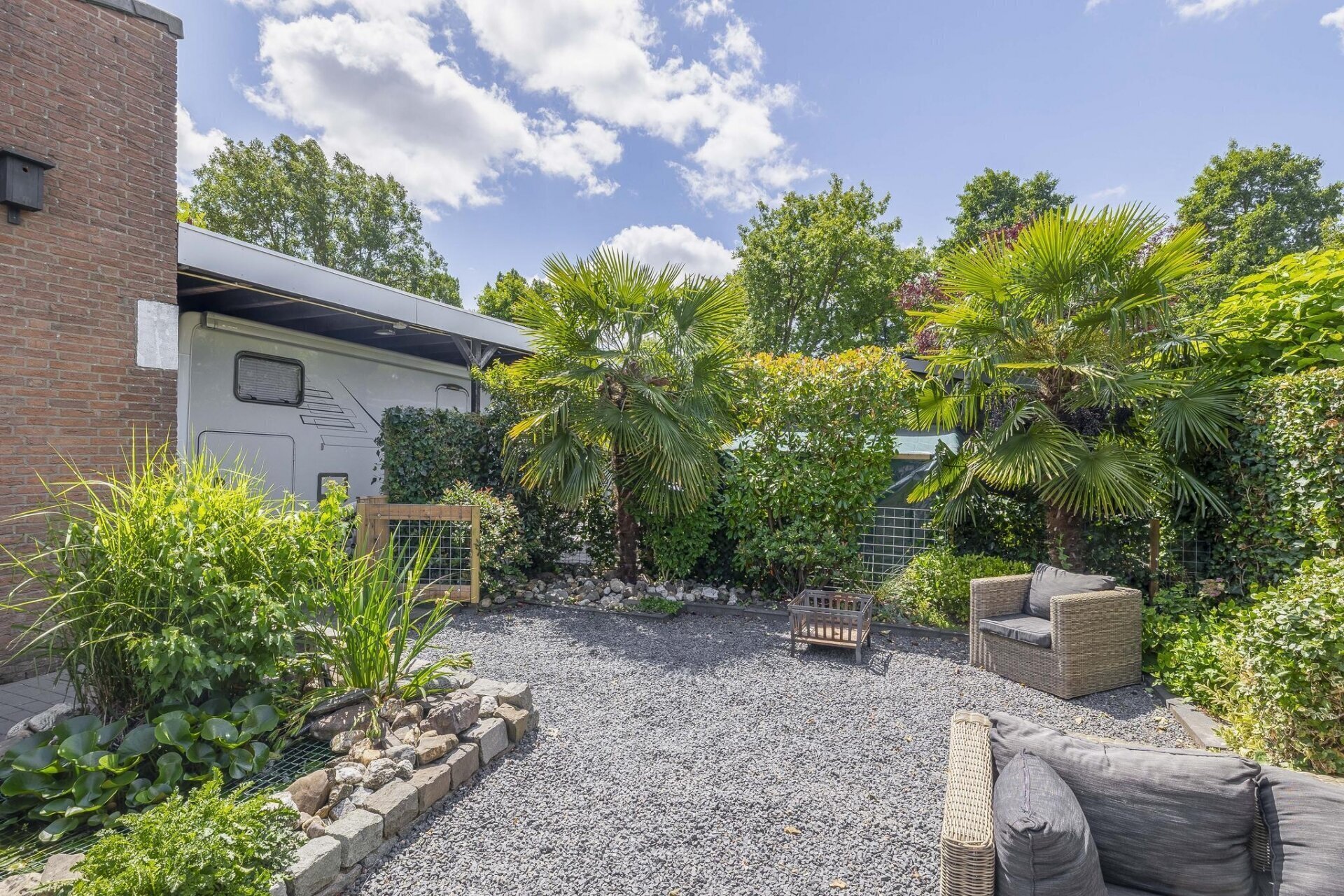 Zodra je via de schuifpui de tuin instapt, waan je je in een vakantieoord. De zuidwestelijke ligging zorgt ervoor dat je hier volop van de zon kunt genieten. De tuin is onderhoudsvriendelijk aangelegd met een groot onderheid terras van 6 bij 4 meter, fraaie beplanting en zelfs een vijverpartij. Dankzij de volwassen begroeiing en de fijne ligging ervaar je hier volop privacy.