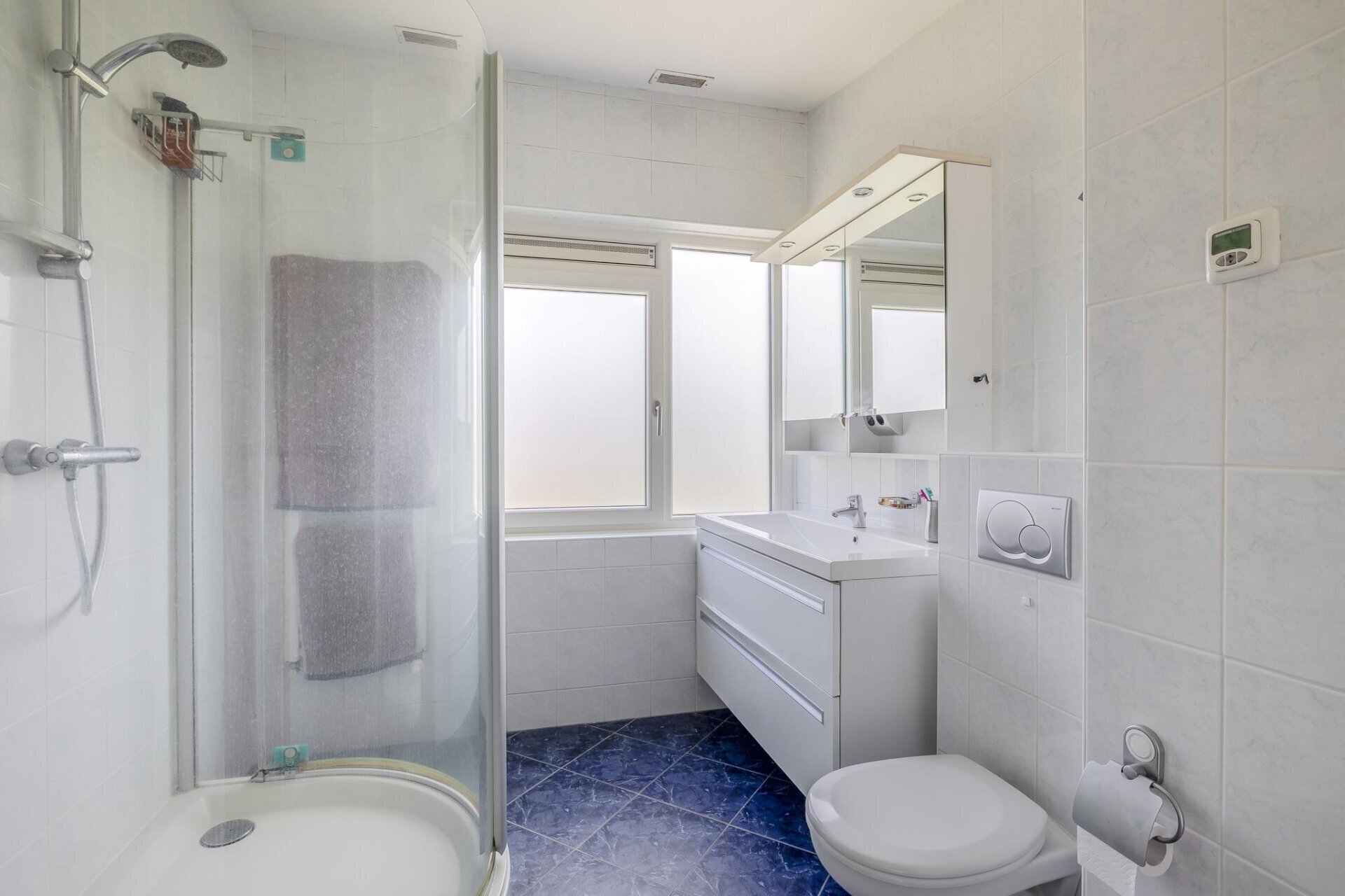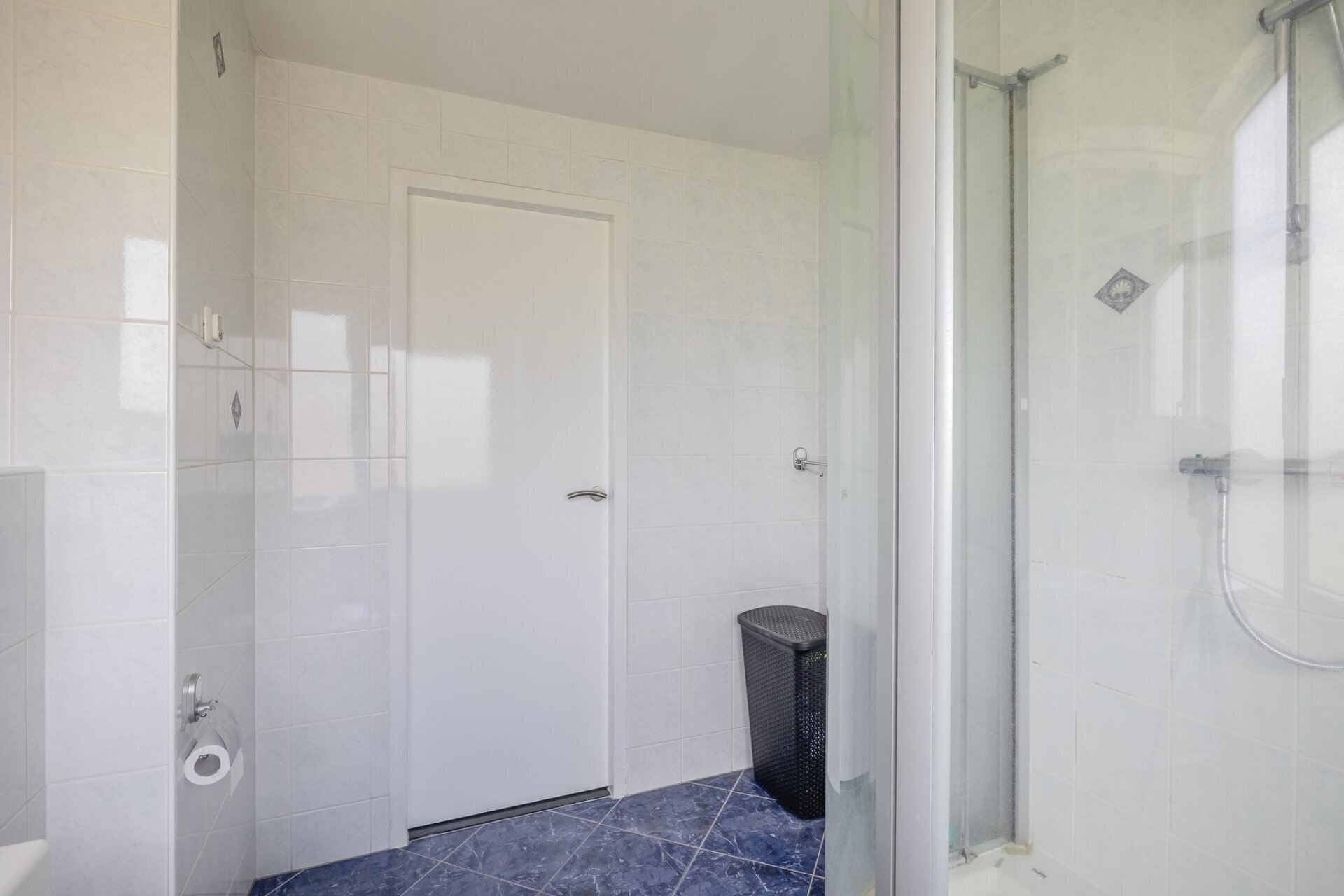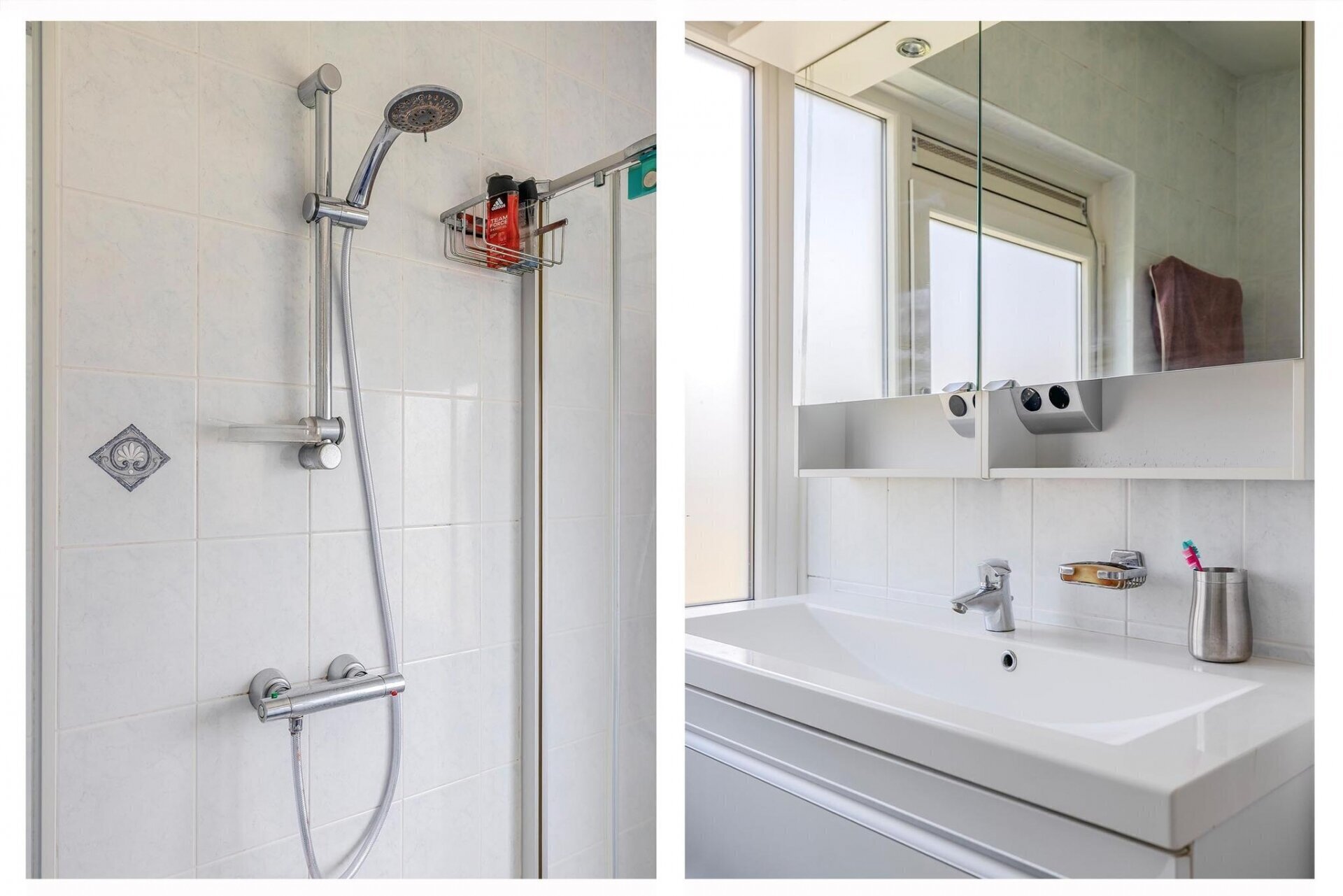 Wat dit huis extra praktisch maakt, is de aanwezigheid van een slaapkamer én een badkamer op de begane grond. De badkamer is modern en fris ingericht met een inloopdouche, wastafelmeubel en toilet. Deze indeling maakt de woning bijzonder geschikt voor mensen die graag gelijkvloers wonen, maar zeker ook voor gezinnen die gewoon veel ruimte willen.