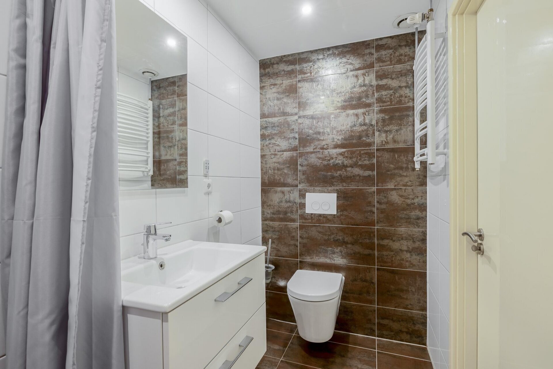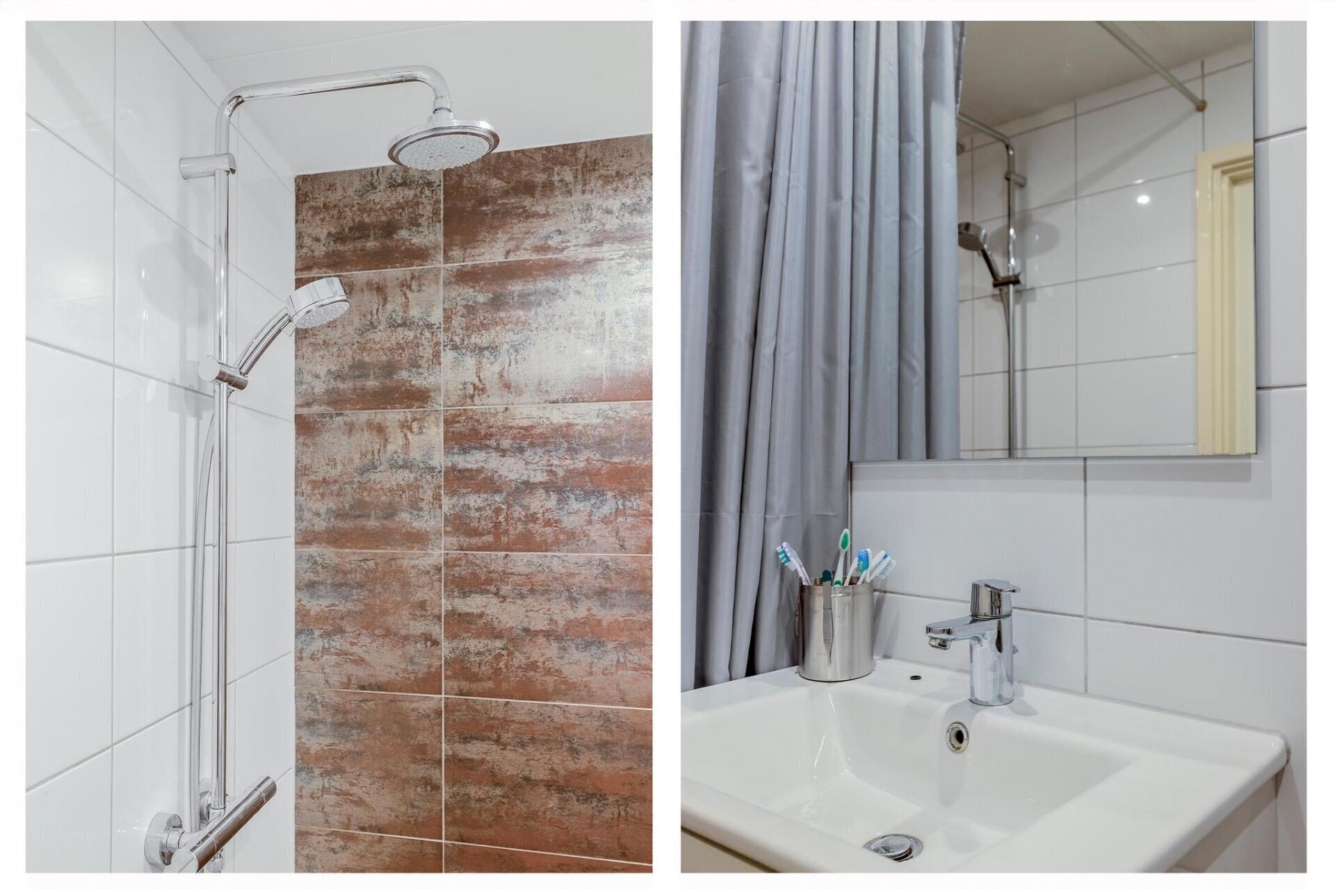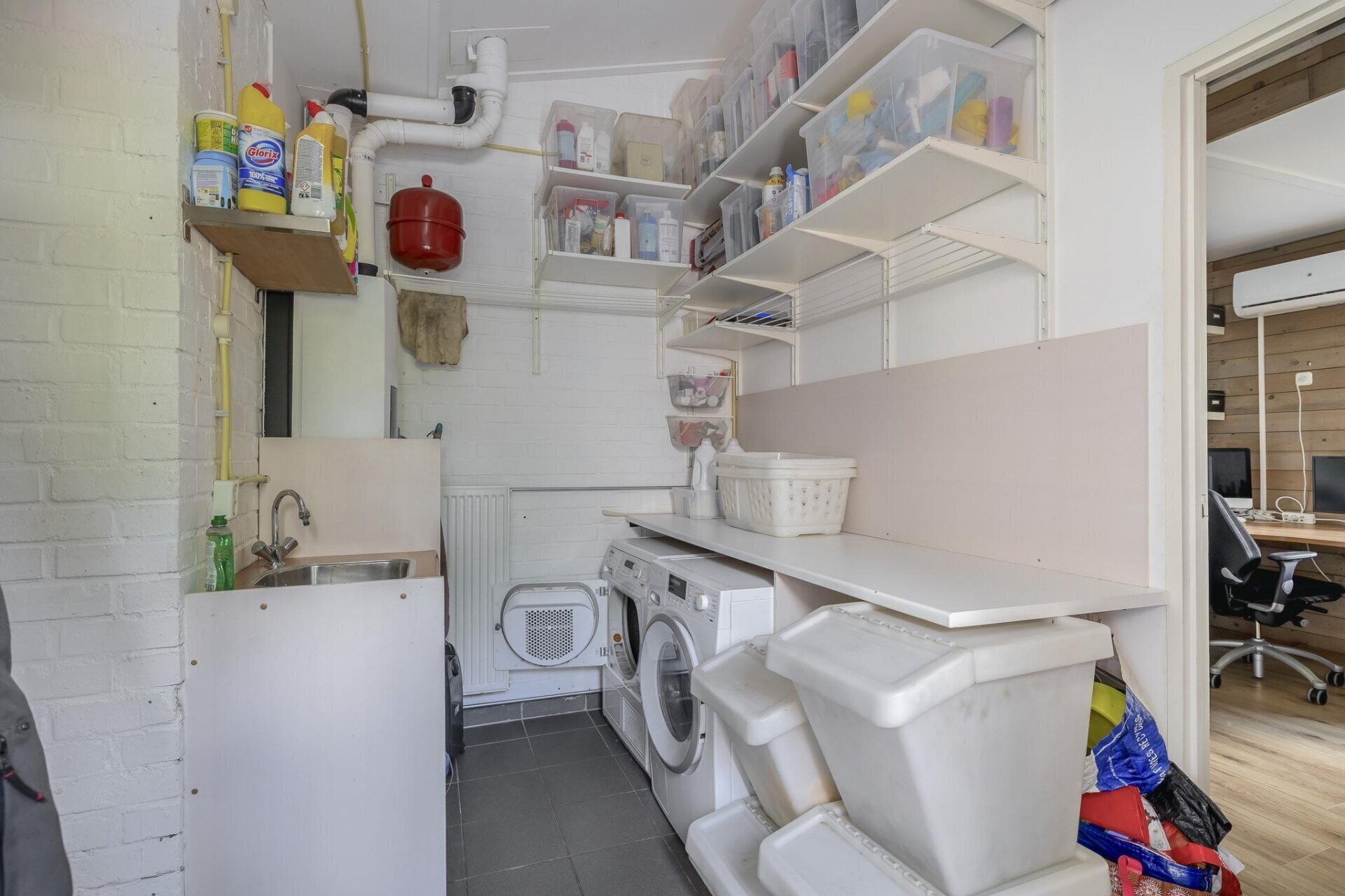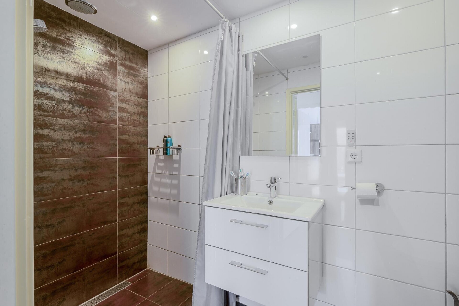 Wat dit huis extra praktisch maakt, is de aanwezigheid van een slaapkamer én een badkamer op de begane grond. De badkamer is modern en fris ingericht met een inloopdouche, wastafelmeubel en toilet. Deze indeling maakt de woning bijzonder geschikt voor mensen die graag gelijkvloers wonen, maar zeker ook voor gezinnen die gewoon veel ruimte willen.