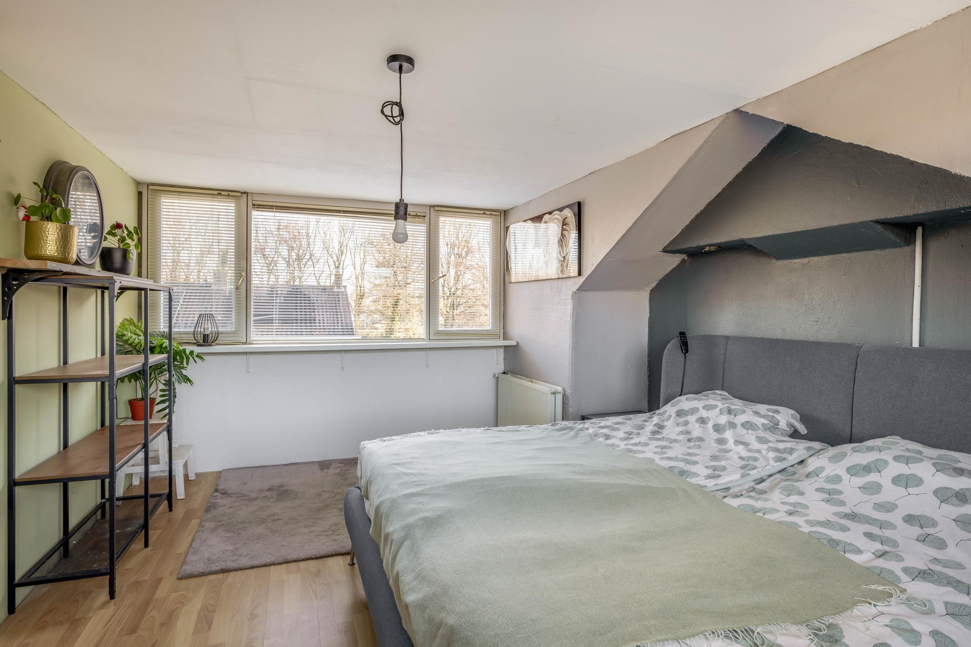 Deze familiewoning is gelegen op de hoek en beschikt daardoor over een perceel van 219 m². De 119 m² woonoppervlakte is verdeeld over 3 woonlagen. Op de begane grond is een lichte doorzonwoonkamer met een dichte keuken aan de achterzijde. Doordat de woning op een hoek is gelegen, beschikt de woonkamer over een extra raam in de zijgevel. Op de eerste verdieping zijn 4 slaapkamers en een inpandige badkamer. De badkamer is vernieuwd in 2024 en beschikt over een ruime douchecabine en een wastafel met meubel. Op de 2e verdieping zijn 2 woningbrede dakkapellen geplaatst, waardoor er een royale 5e slaapkamer is ontstaan. Op de overloop is nog de opstelling voor de (huur) cv-ketel.