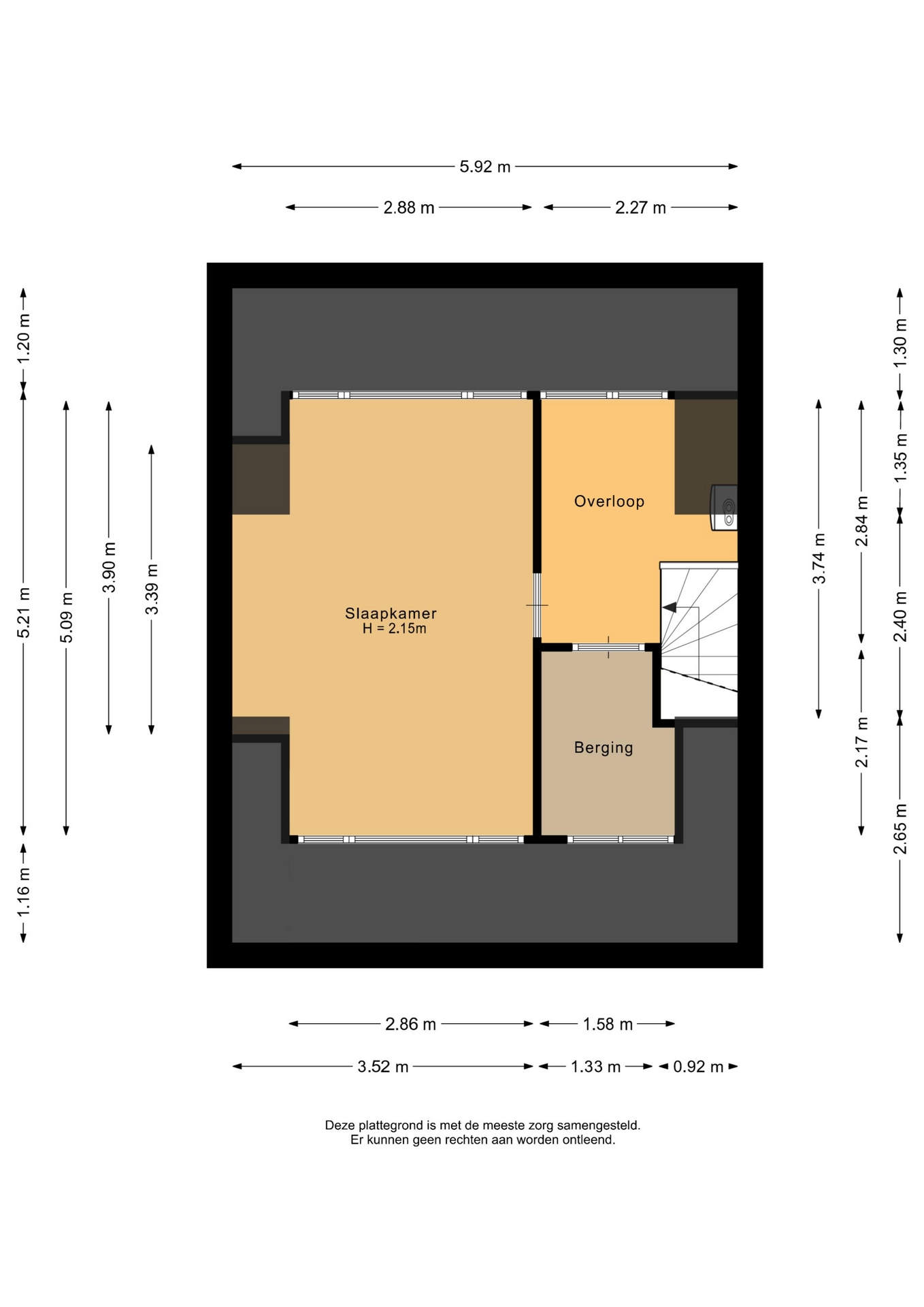 “Deze informatie is door ons met de nodige zorgvuldigheid samengesteld. Onzerzijds wordt echter geen enkele aansprakelijkheid aanvaard voor enige onvolledigheid, onjuistheid of anderszins, dan wel de gevolgen daarvan. Alle opgegeven maten en oppervlakten zijn indicatief.”