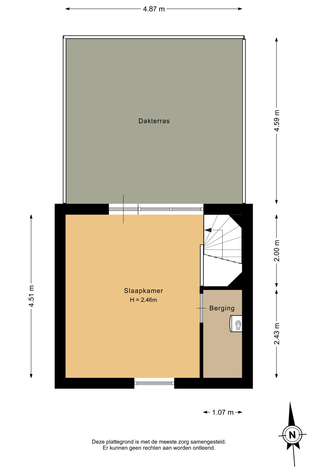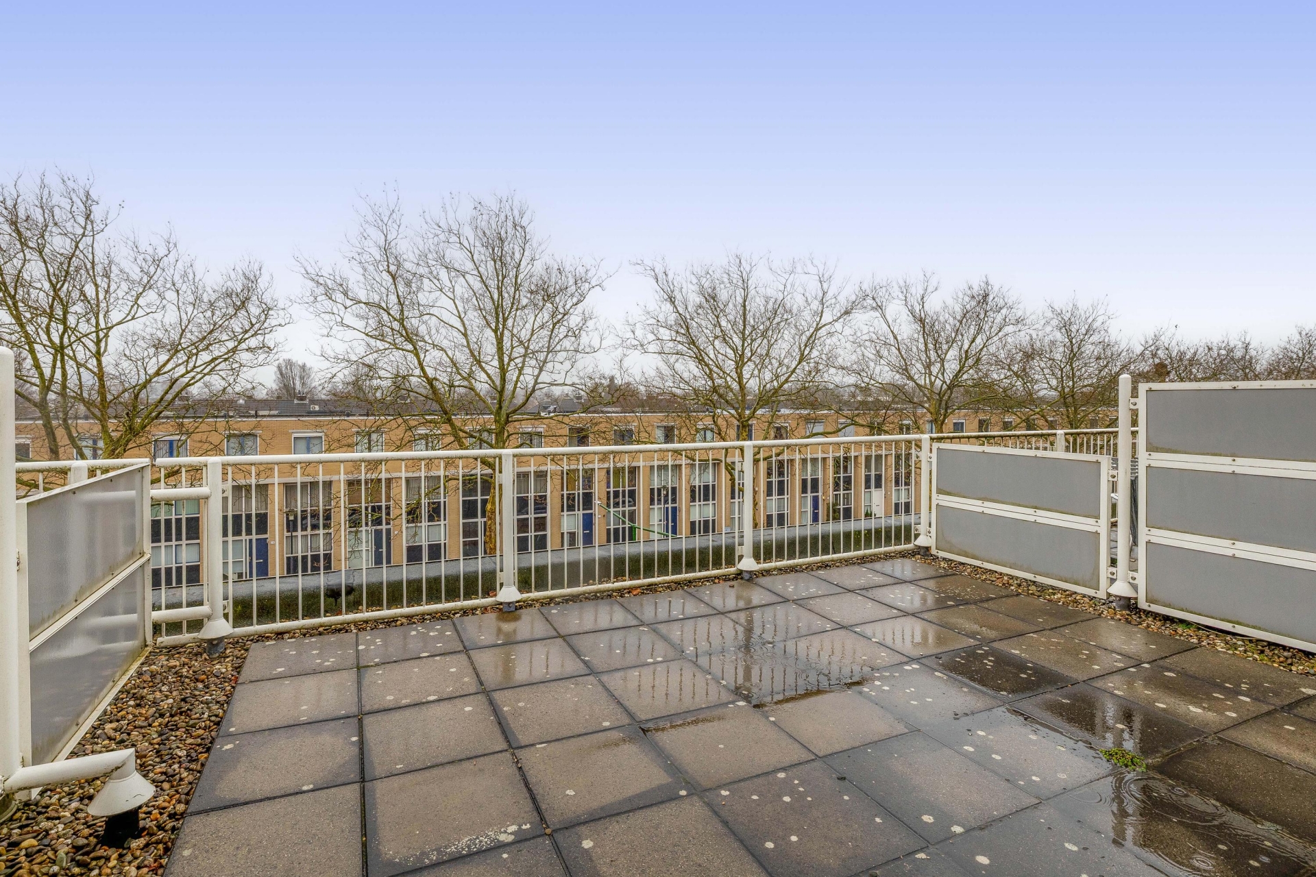 De derde etage is opgedeeld in een grote kamer (17m²) met een stookruimte (2.6m²) en een aangrenzend, betegeld dakterras (22m²), gelegen op het zuiden.