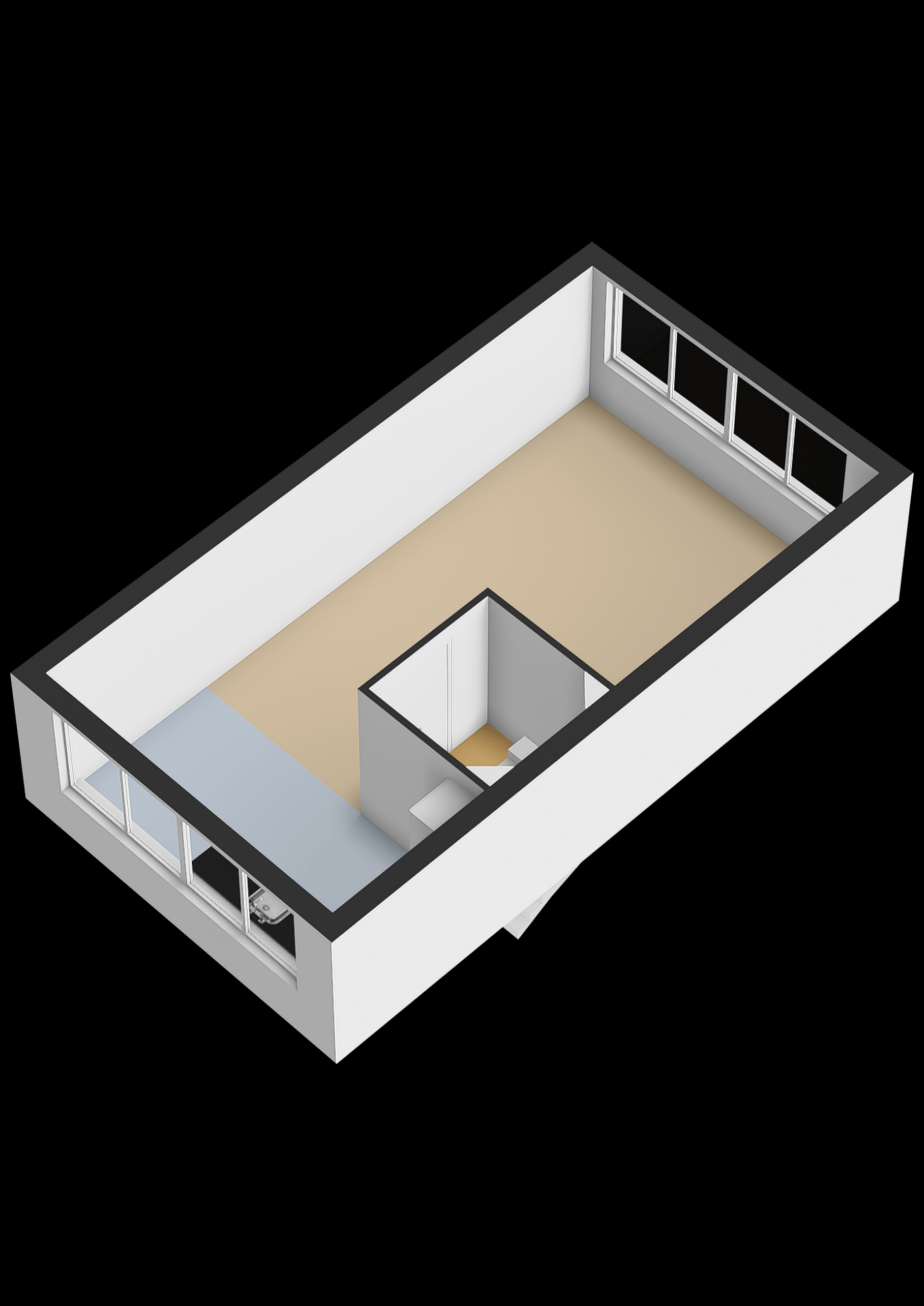 De derde kamer aan de achterzijde is de grootste op deze etage en meet ca.19m².