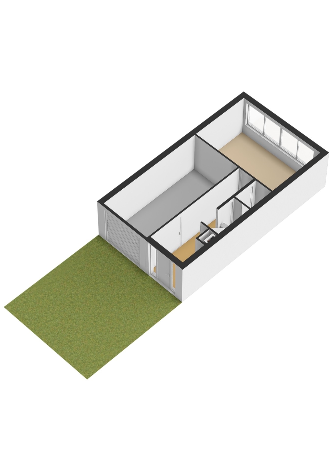 De voortuin (32m²) biedt ruimte voor het parkeren van de auto op eigen terrein.