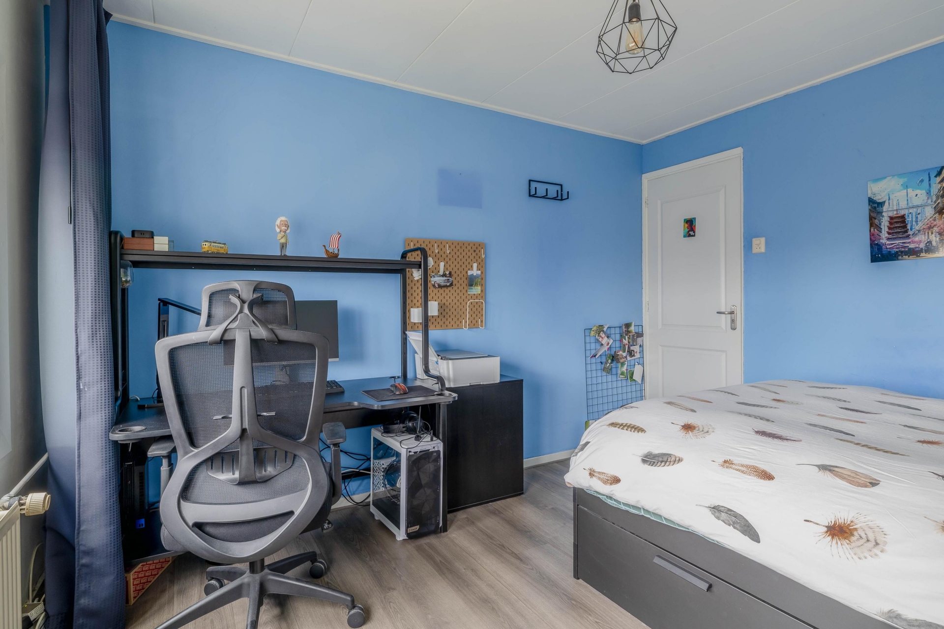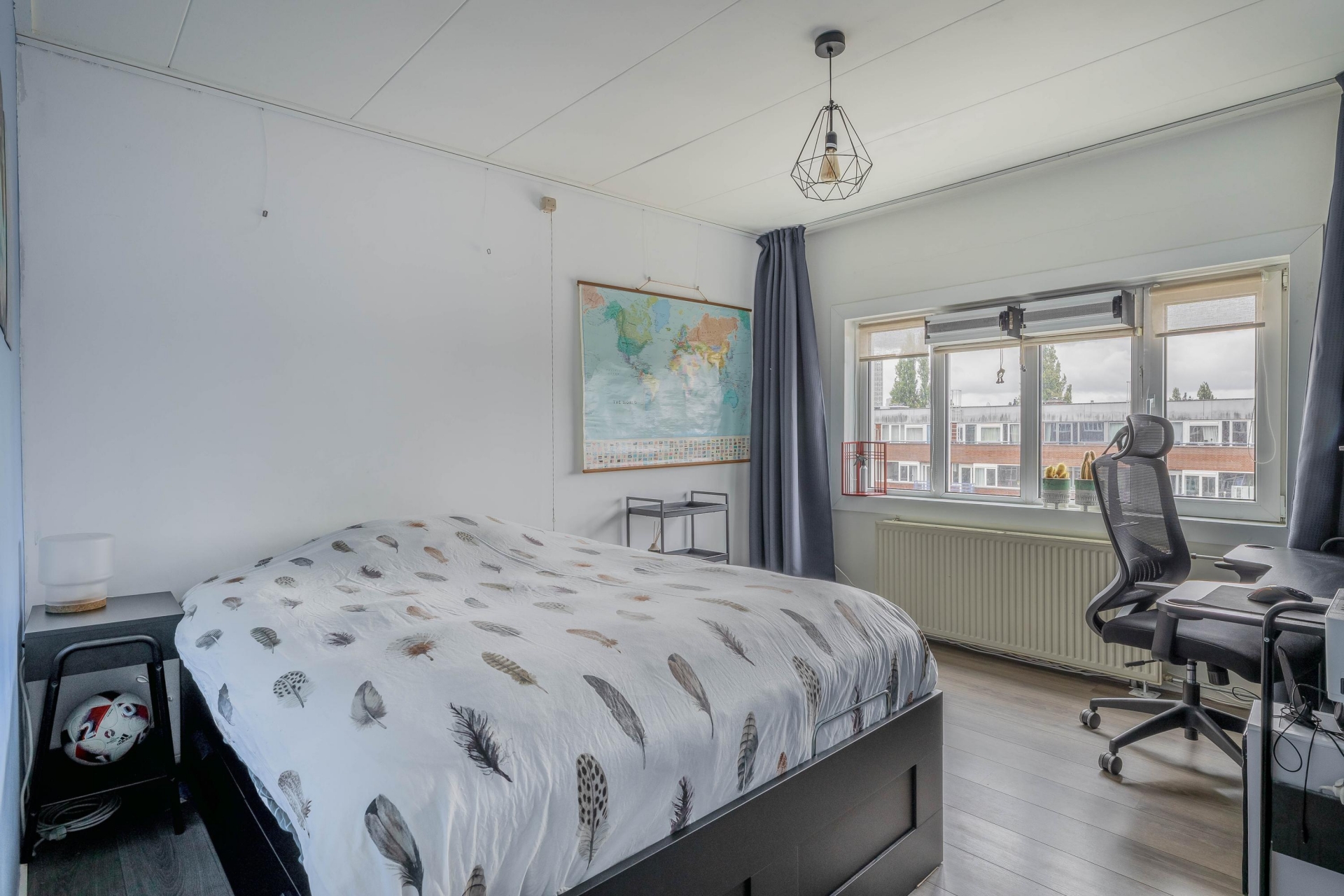 Verspreid over twee woonlagen vind je drie goed bemeten slaapkamers. Op de derde verdieping is een ruime kamer met een charmante erker, perfect als slaapkamer, werkkamer of hobbyruimte. Boven, op de vierde verdieping, liggen nog twee grote slaapkamers, waarvan één met hetzelfde panoramische uitzicht als de woonkamer.