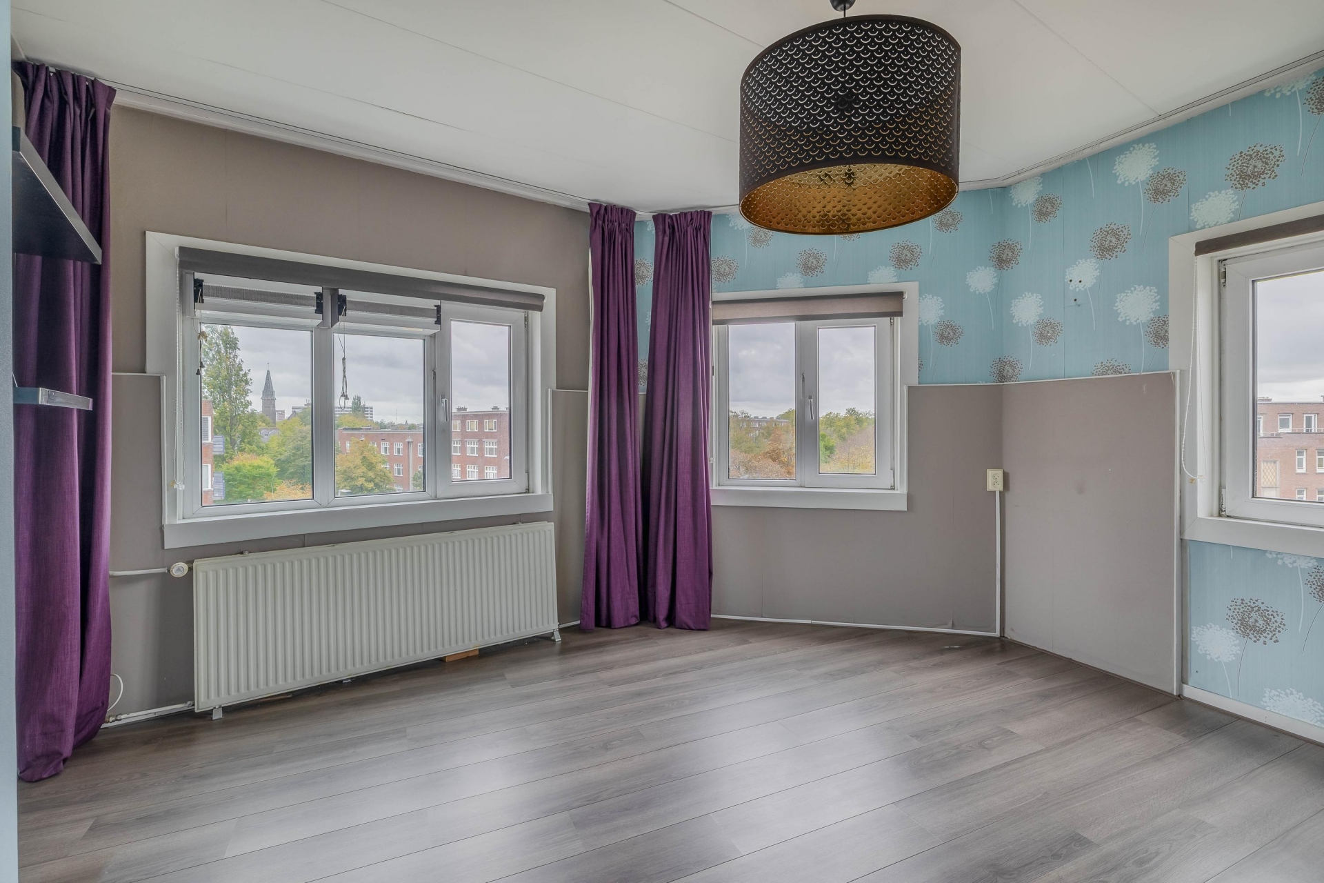 De lichte woonkamer is een echte blikvanger: groot, zonnig en met ramen rondom. Dankzij de hoekligging heb je vrij uitzicht over de Schepenstraat, Stadhoudersweg, Schieweg en natuurlijk de Vlaggemanstraat zelf. De afgeronde hoek met grote raampartijen geeft de ruimte extra karakter en een ruimtelijk gevoel.