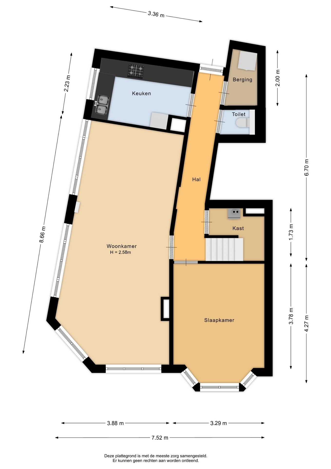 “Deze informatie is door ons met de nodige zorgvuldigheid samengesteld. Onzerzijds wordt echter geen enkele aansprakelijkheid aanvaard voor enige onvolledigheid, onjuistheid of anderszins, dan wel de gevolgen daarvan. Alle opgegeven maten en oppervlakten zijn indicatief.”