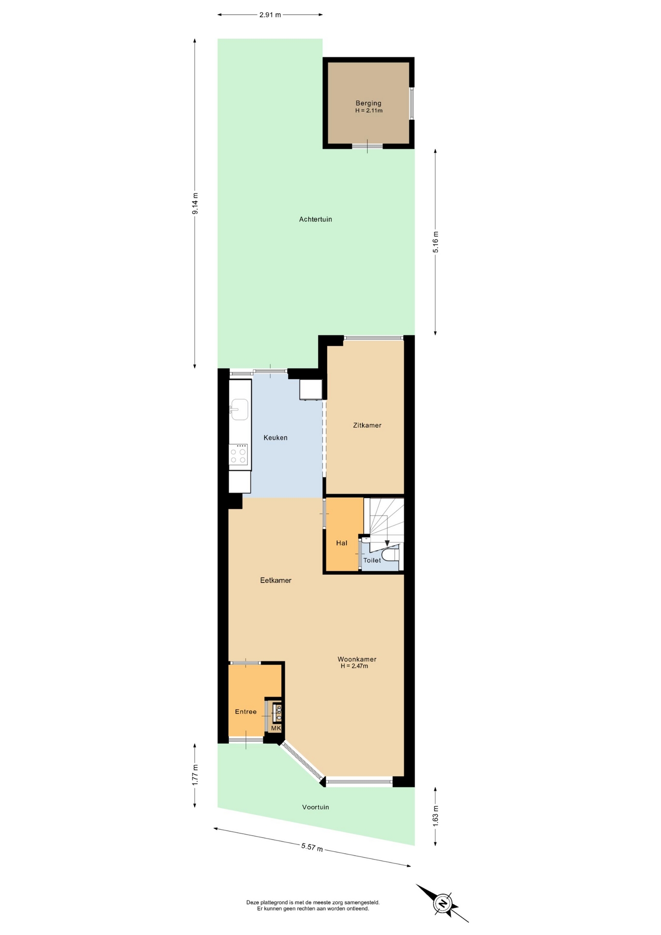 “Deze informatie is door ons met de nodige zorgvuldigheid samengesteld. Onzerzijds wordt echter geen enkele aansprakelijkheid aanvaard voor enige onvolledigheid, onjuistheid of anderszins, dan wel de gevolgen daarvan. Alle opgegeven maten en oppervlakten zijn indicatief.”
