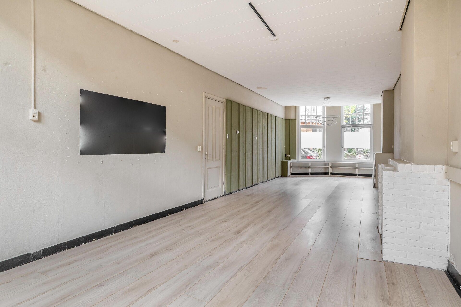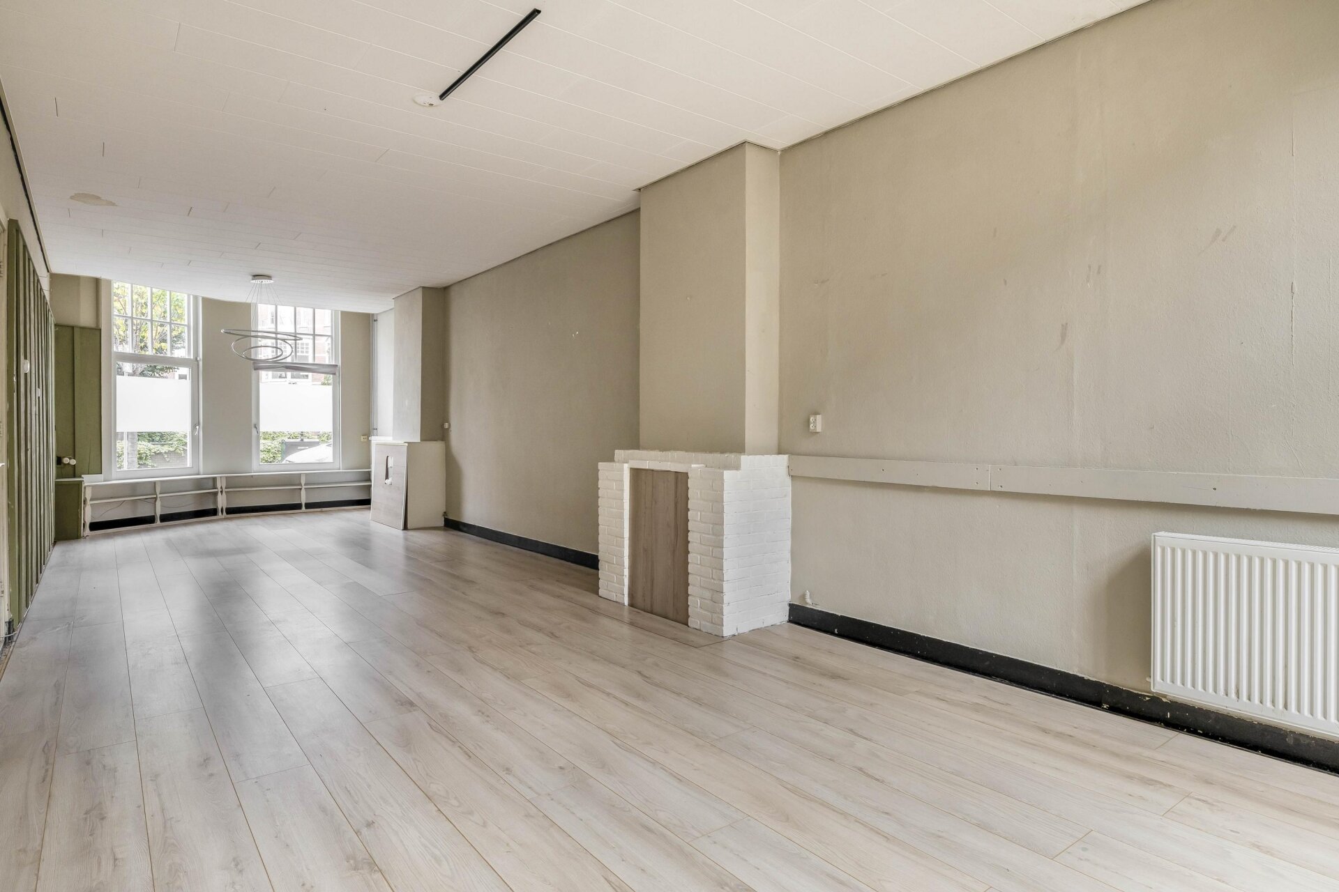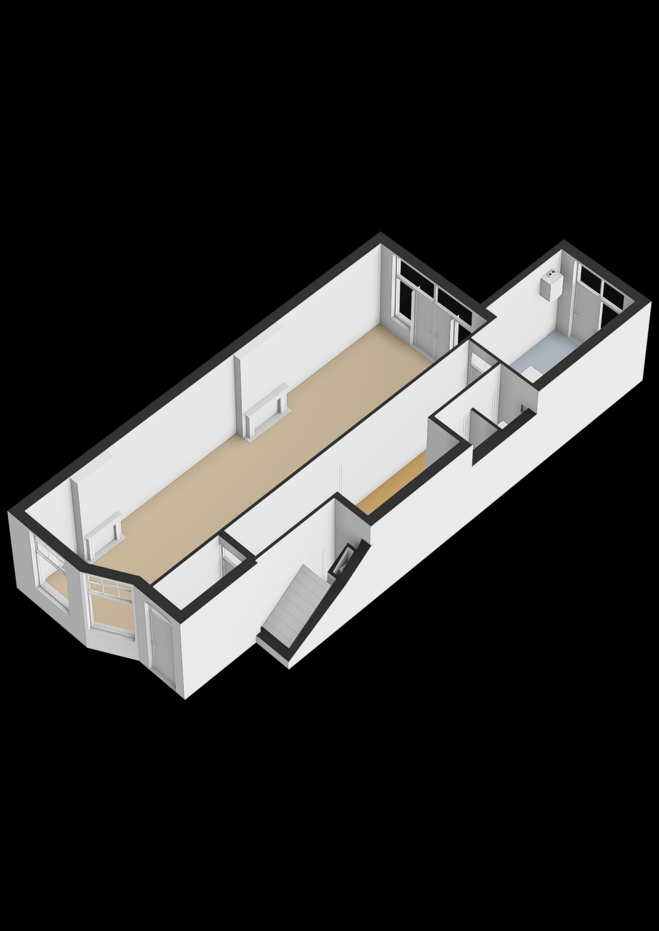 Entree via vestibule; gang met meterkast en bergkast; toilet met fontein; zeer riante woon-/eetkamer (voormalig en suite); keuken, voorzien van eenvoudig blok en opstelplaats c.v.-ketel; achtertuin met stenen berging; binnentrap naar 1e etage.