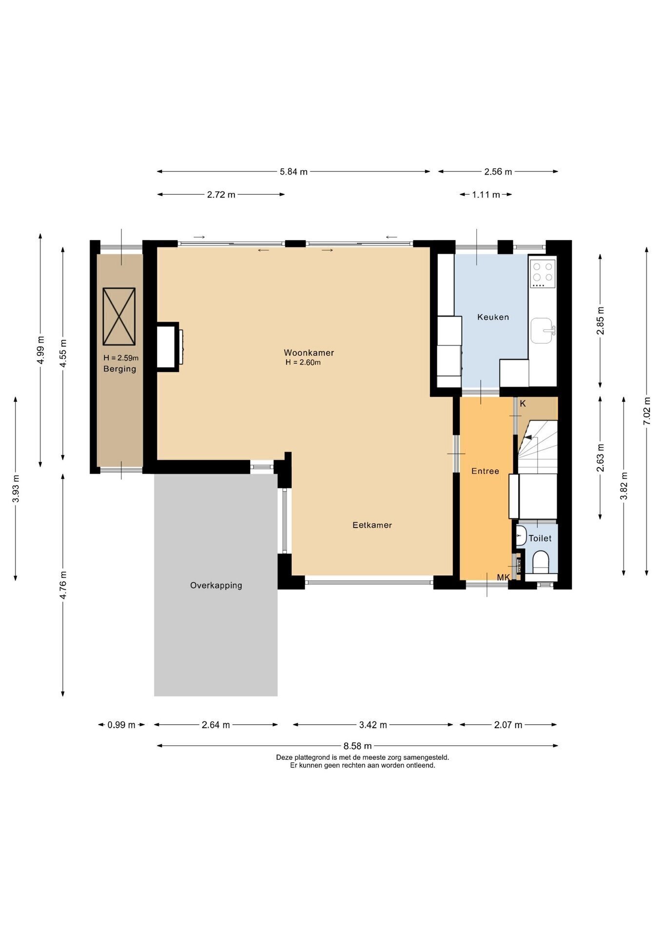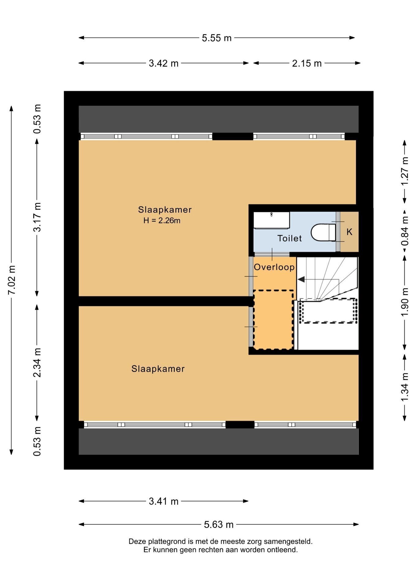 “Deze informatie is door ons met de nodige zorgvuldigheid samengesteld. Onzerzijds wordt echter geen enkele aansprakelijkheid aanvaard voor enige onvolledigheid, onjuistheid of anderszins, dan wel de gevolgen daarvan. Alle opgegeven maten en oppervlakten zijn indicatief.”