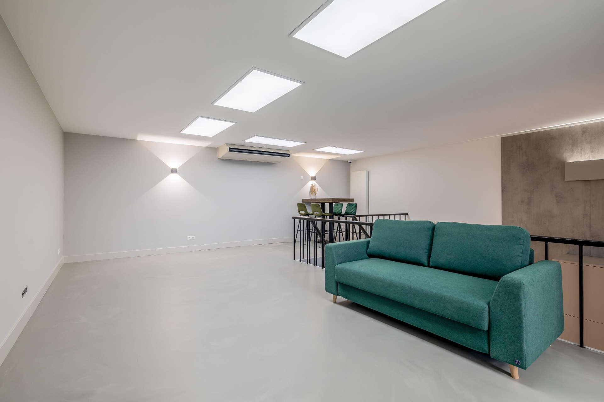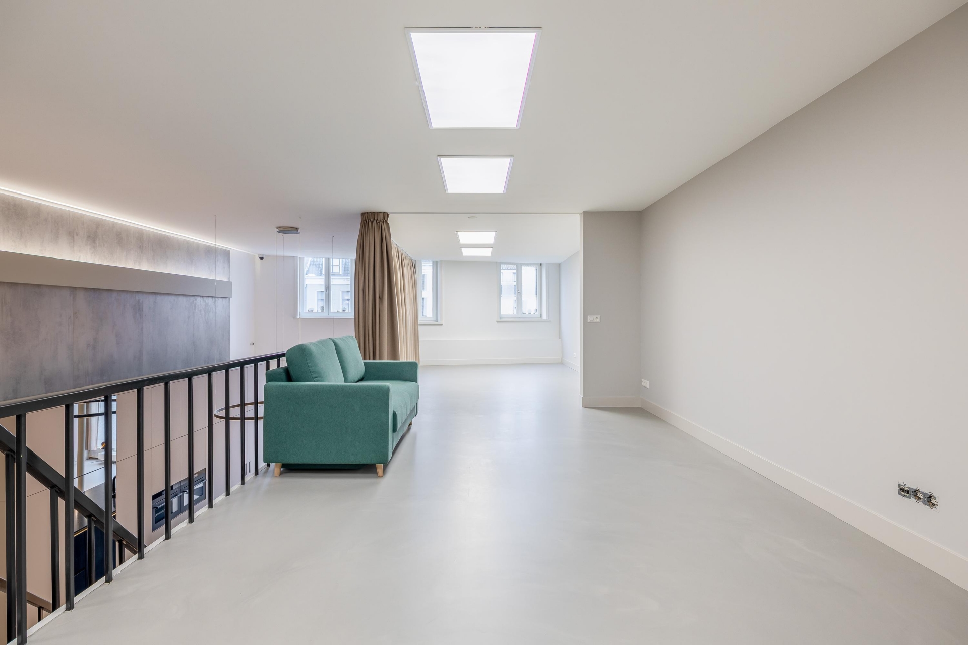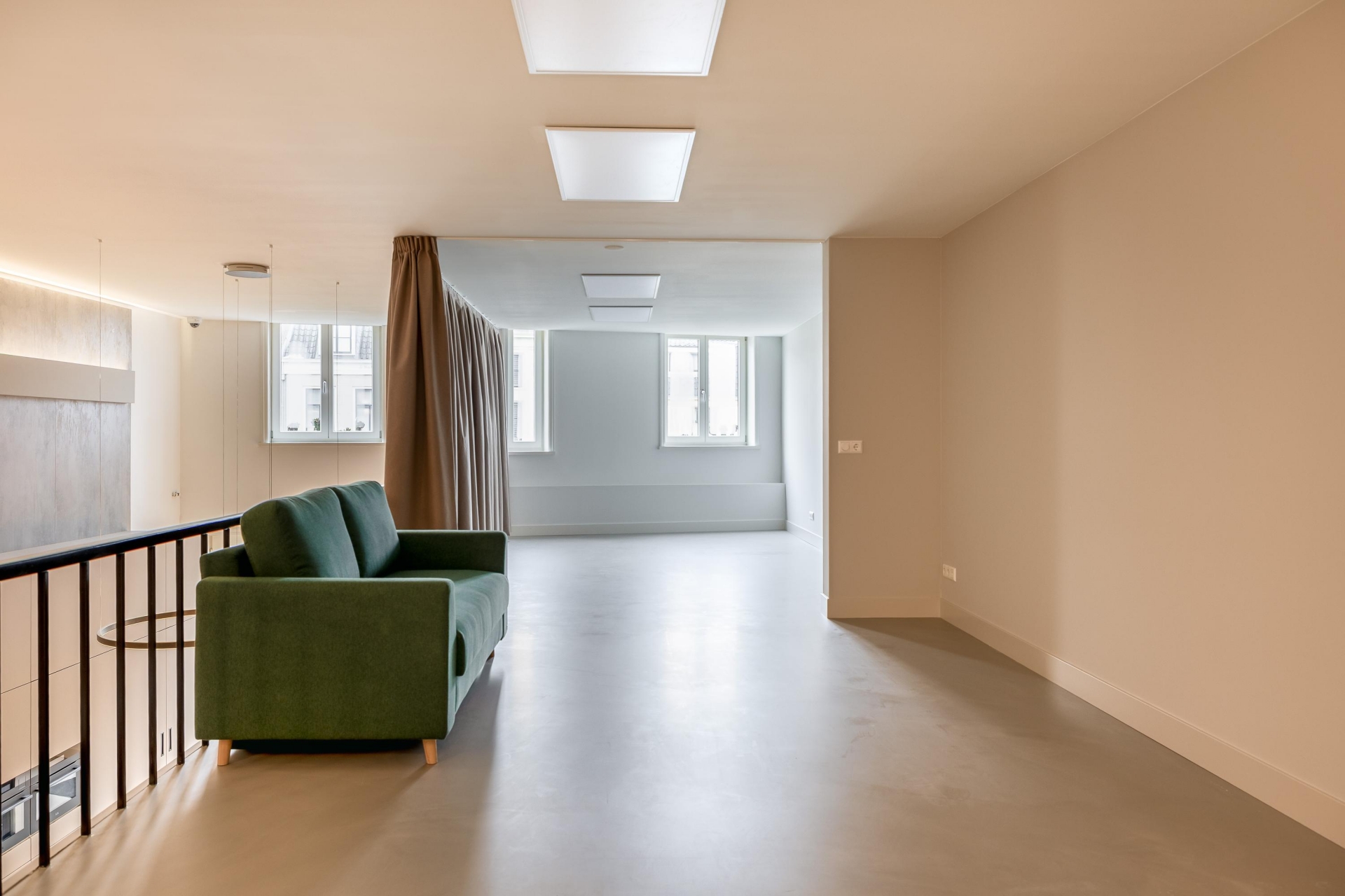 De 1e verdieping is een fraaie open vide en kan gebruikt worden als slaapkamer maar kan ook nog gesplitst worden.