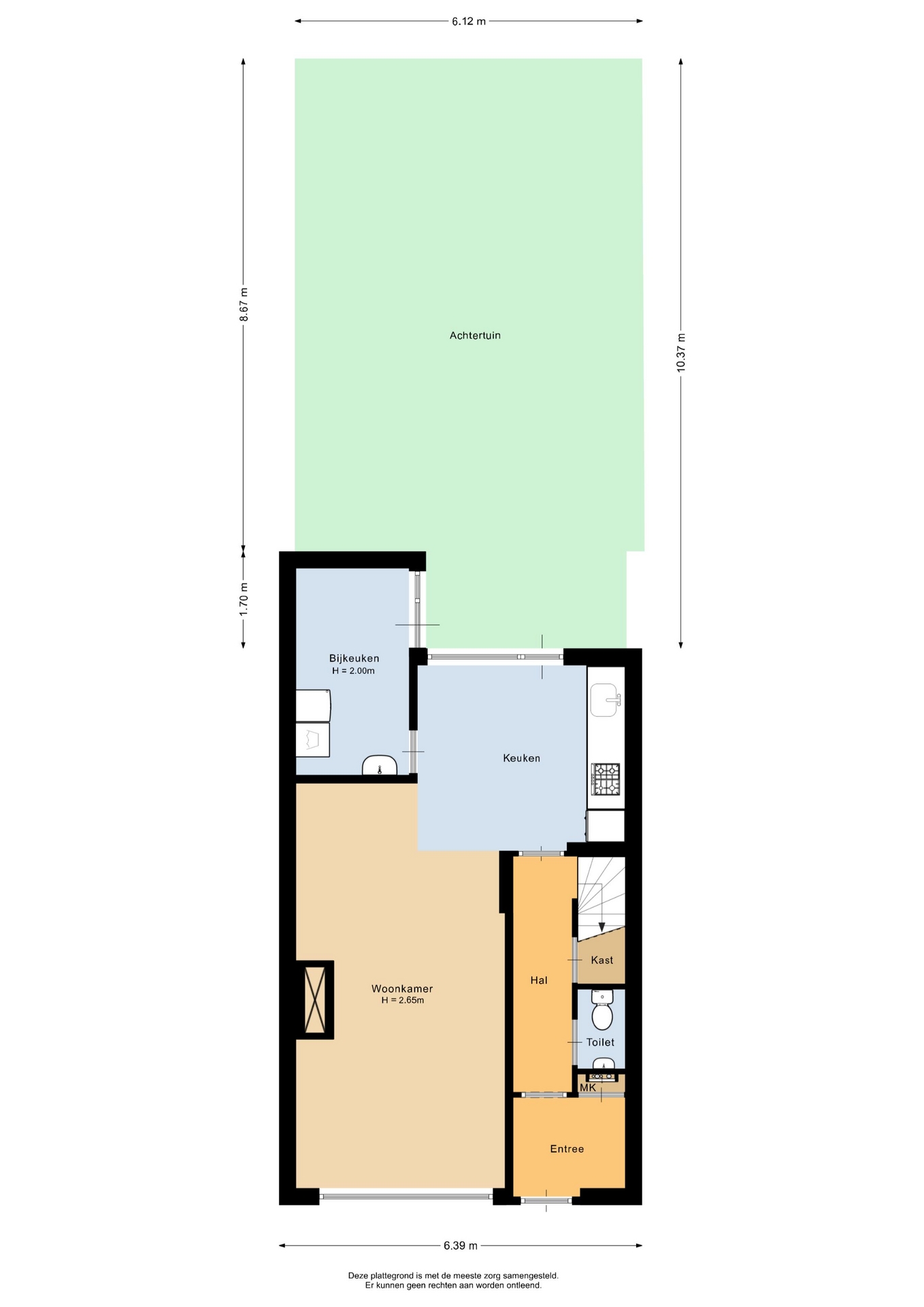 "Deze informatie is door ons met de nodige zorgvuldigheid samengesteld. Onzerzijds wordt echter geen enkele aansprakelijkheid aanvaard voor enige onvolledigheid, onjuistheid of anderszins, dan wel de gevolgen daarvan. Alle opgegeven maten en oppervlakten zijn indicatief. Van toepassing zijn de NVM voorwaarden".