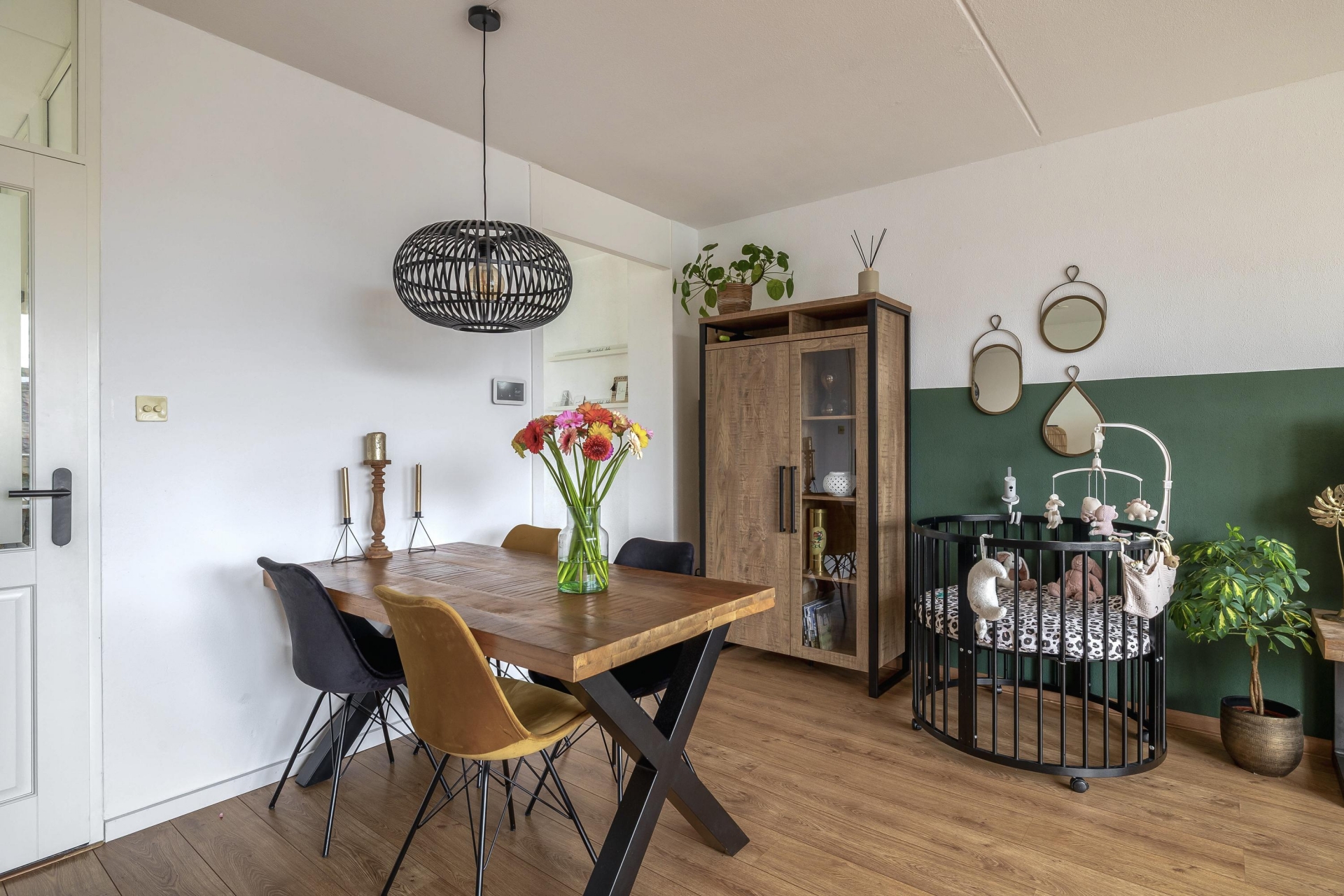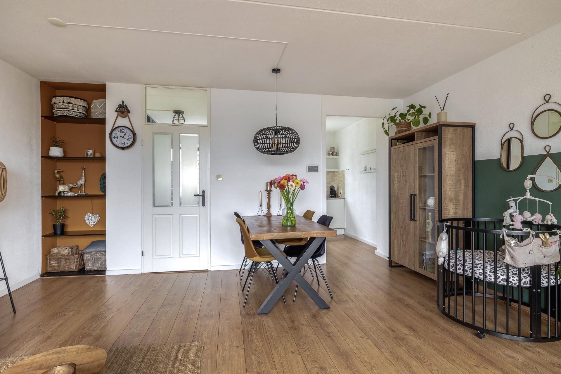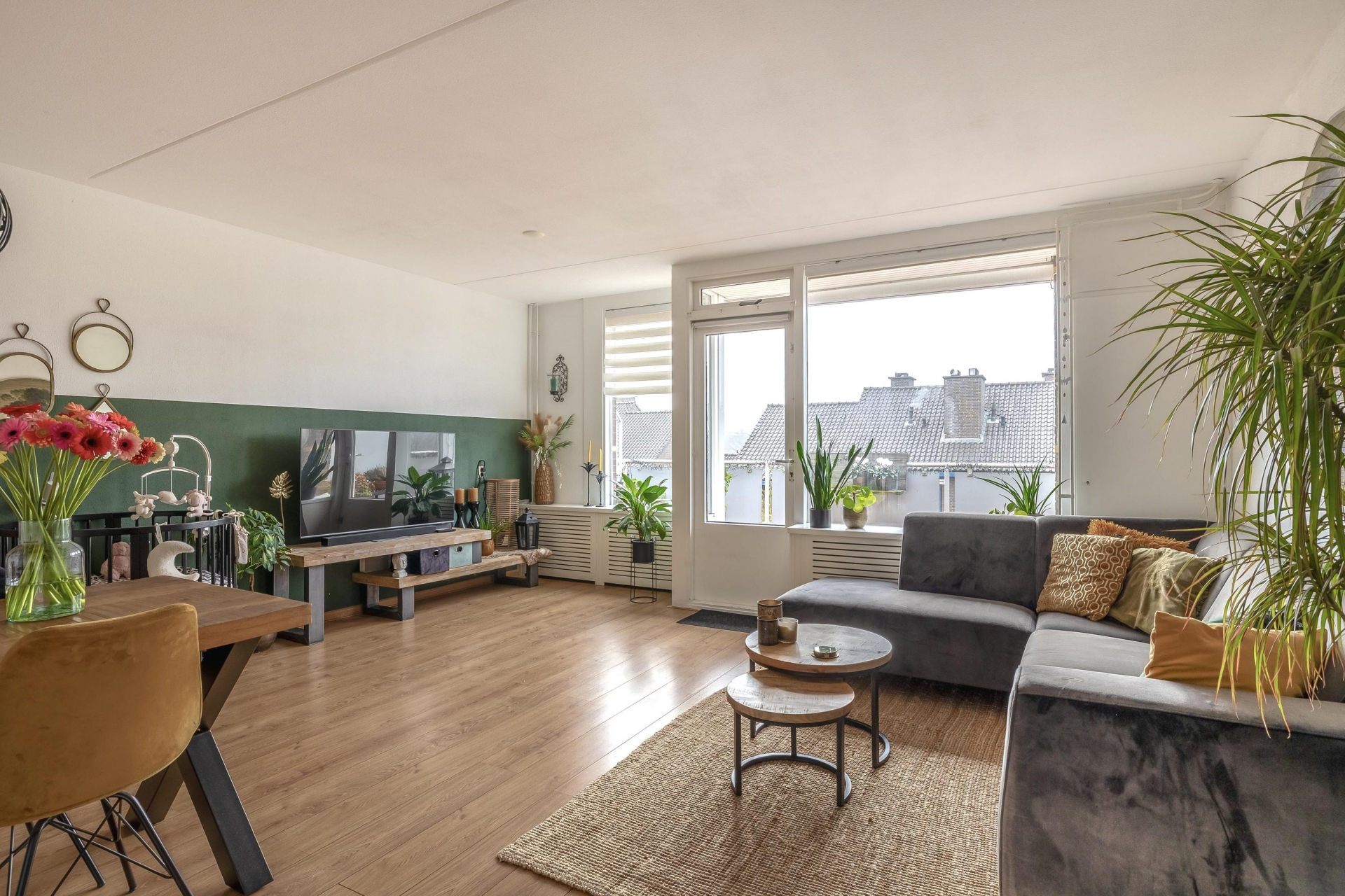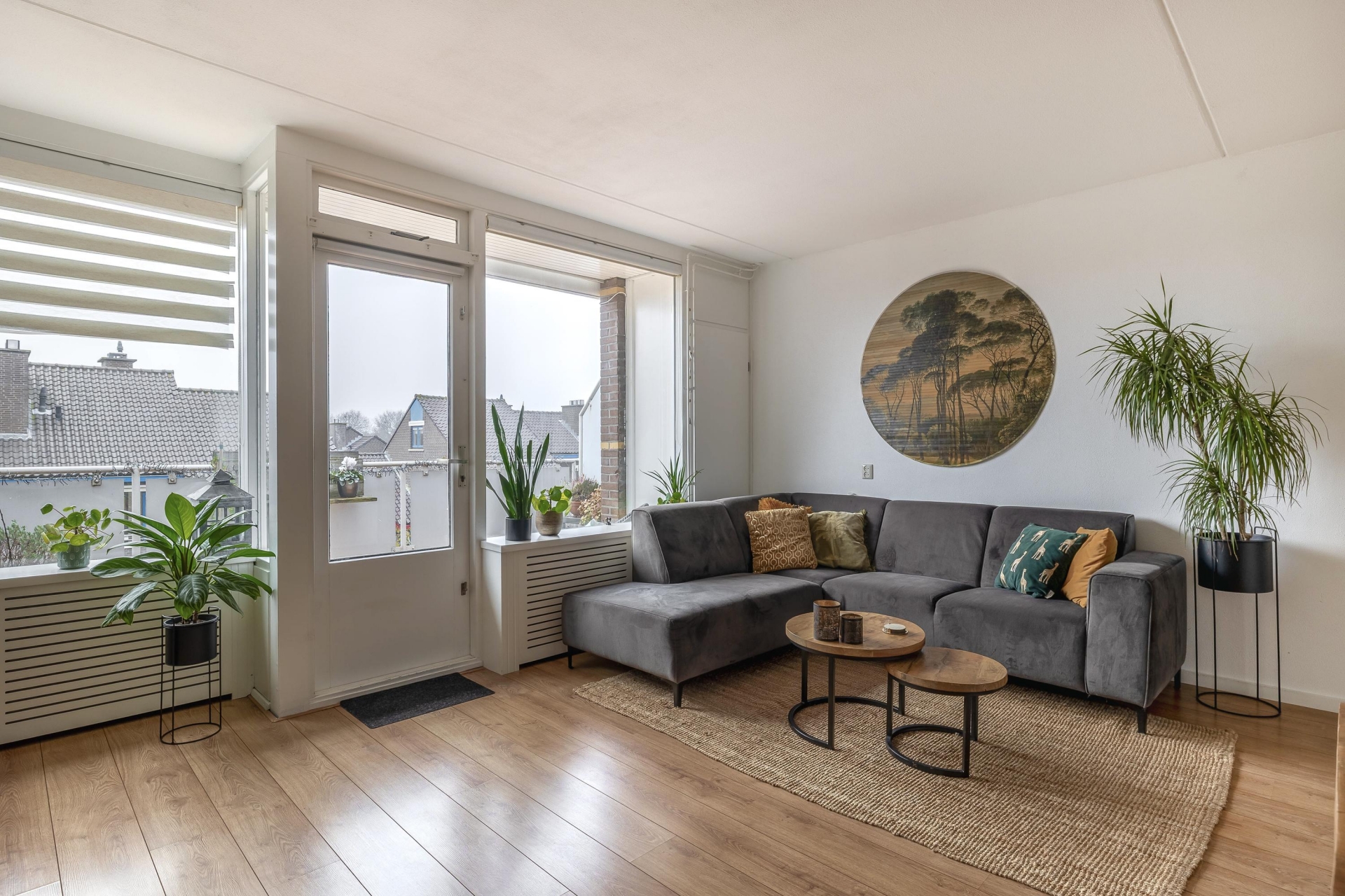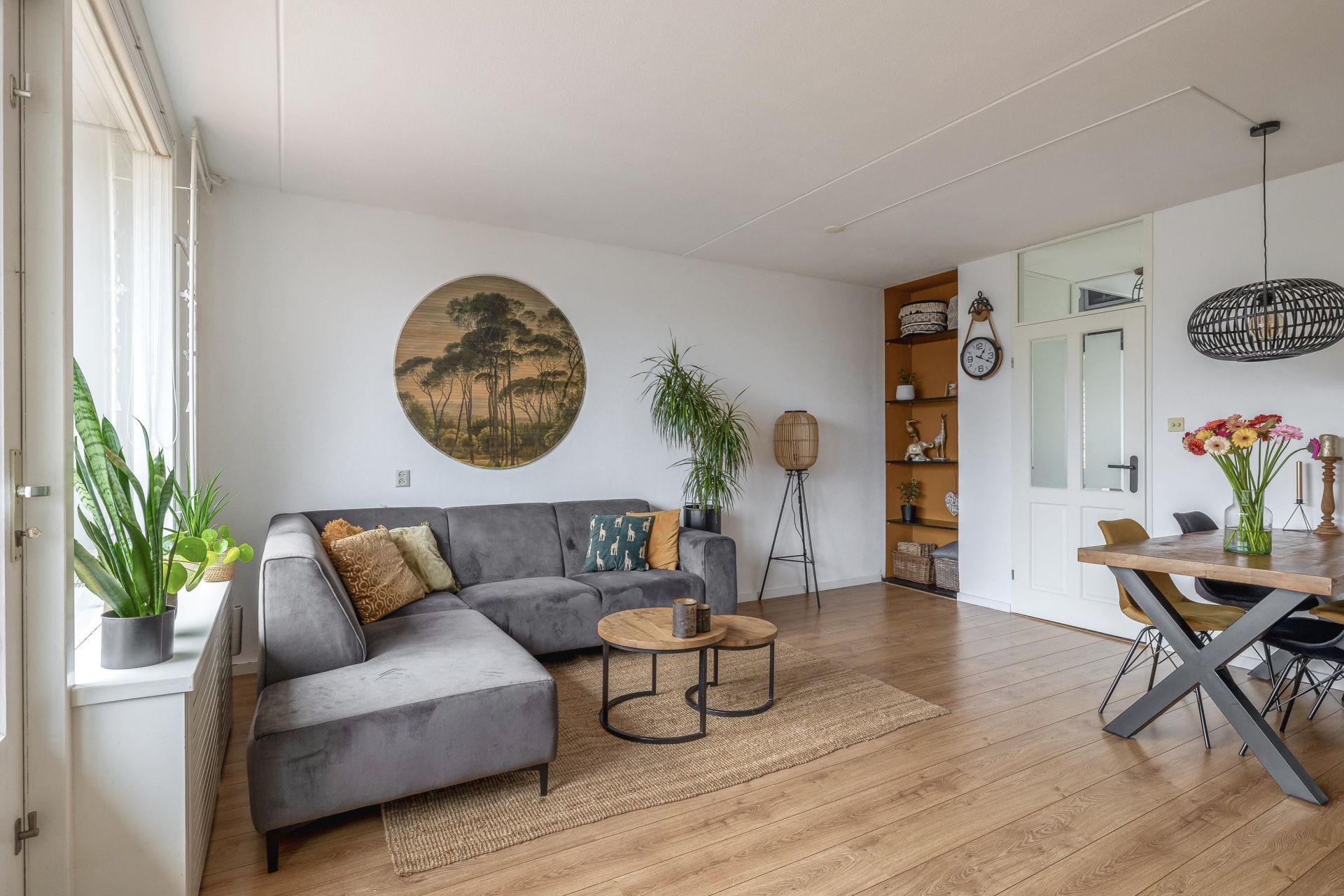 Bij binnenkomst valt direct de prettige lichtinval op. Dankzij de grote raampartijen aan de woonkamerzijde voelt het geheel open en fris aan. De woonkamer zelf is royaal opgezet met voldoende ruimte voor een gezellige zithoek én een eethoek bij de half open keuken. De laminaatvloer en de rustige afwerking maken het geheel tot een warme leefruimte waar je zó kunt intrekken; klussen is hier echt niet nodig.