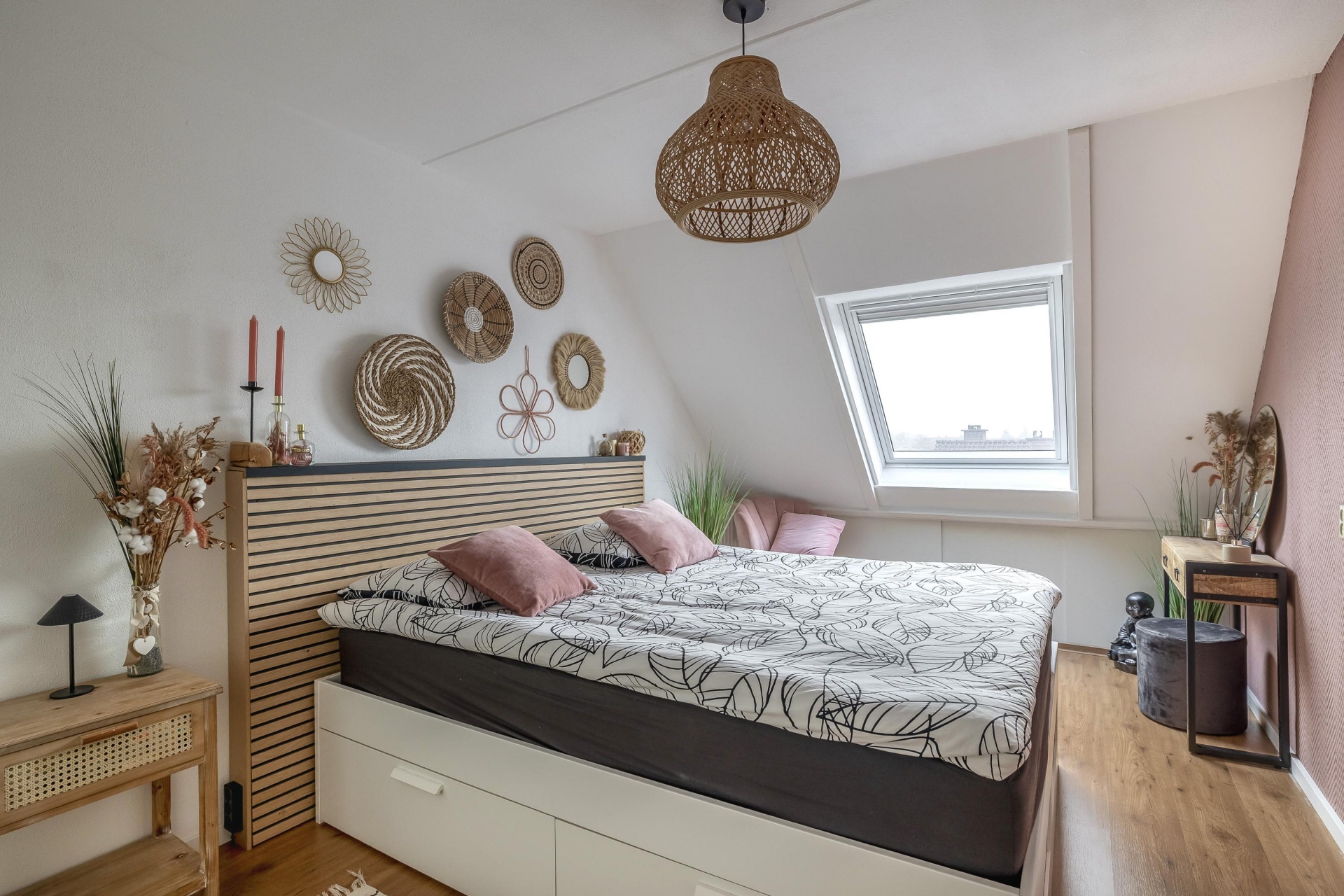 De woning telt in totaal twee ruime slaapkamers, beide gelegen op de bovenverdieping. De grootste slaapkamer is ideaal als master bedroom, terwijl de tweede kamer ook goed dienst kan doen als kinderkamer of logeerkamer, werkkamer of hobbyruimte. Ook hier vind je dezelfde nette afwerking en prettige lichtinval.