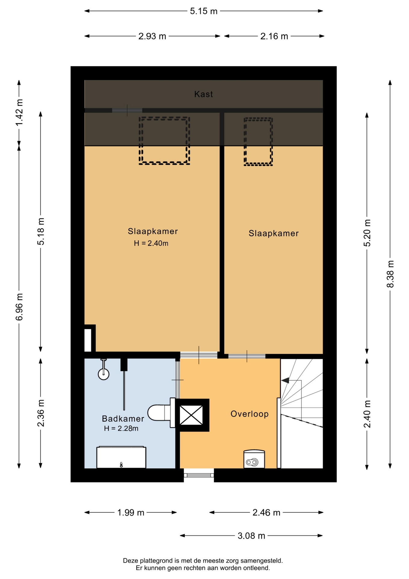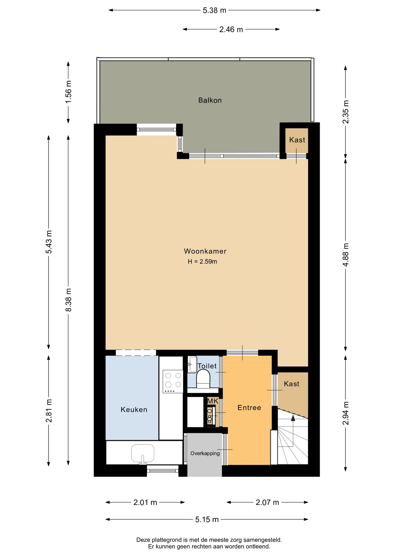 “Deze informatie is door ons met de nodige zorgvuldigheid samengesteld. Onzerzijds wordt echter geen enkele aansprakelijkheid aanvaard voor enige onvolledigheid, onjuistheid of anderszins, dan wel de gevolgen daarvan. Alle opgegeven maten en oppervlakten zijn indicatief.”