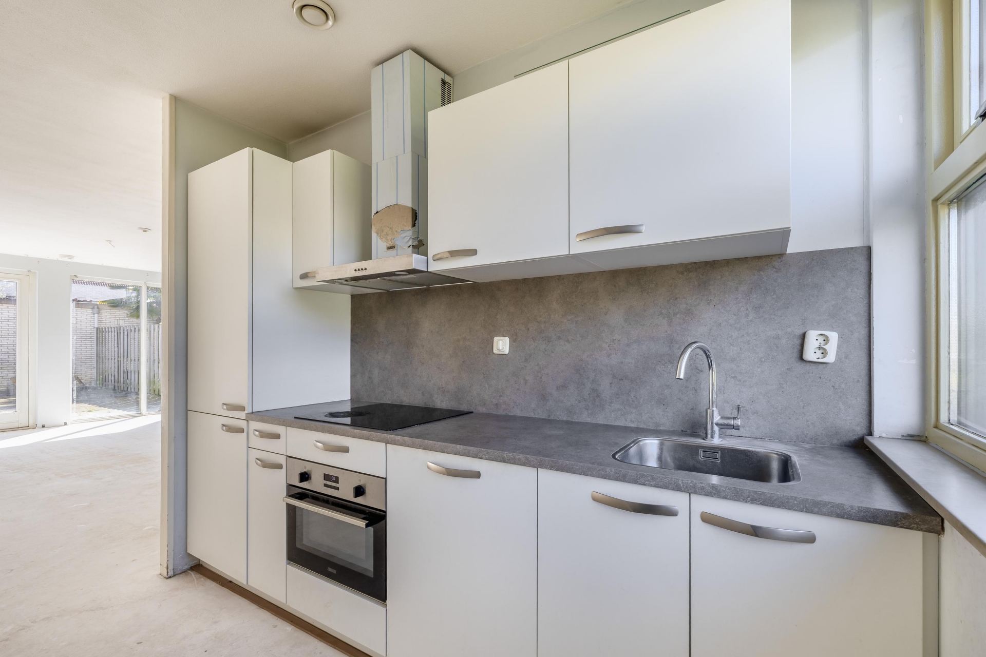 De keuken bevindt zich aan de voorzijde en is functioneel, maar gedateerd. Ook hier geldt: de ruimte is goed, de mogelijkheden zijn er. Wil je een open keuken? Of juist een moderne leefkeuken met veel kastruimte? Hier kun je jouw woonwensen realiseren zonder eerst te hoeven verbouwen aan de constructie.