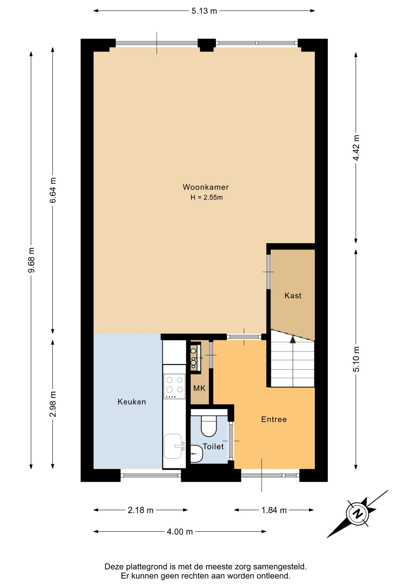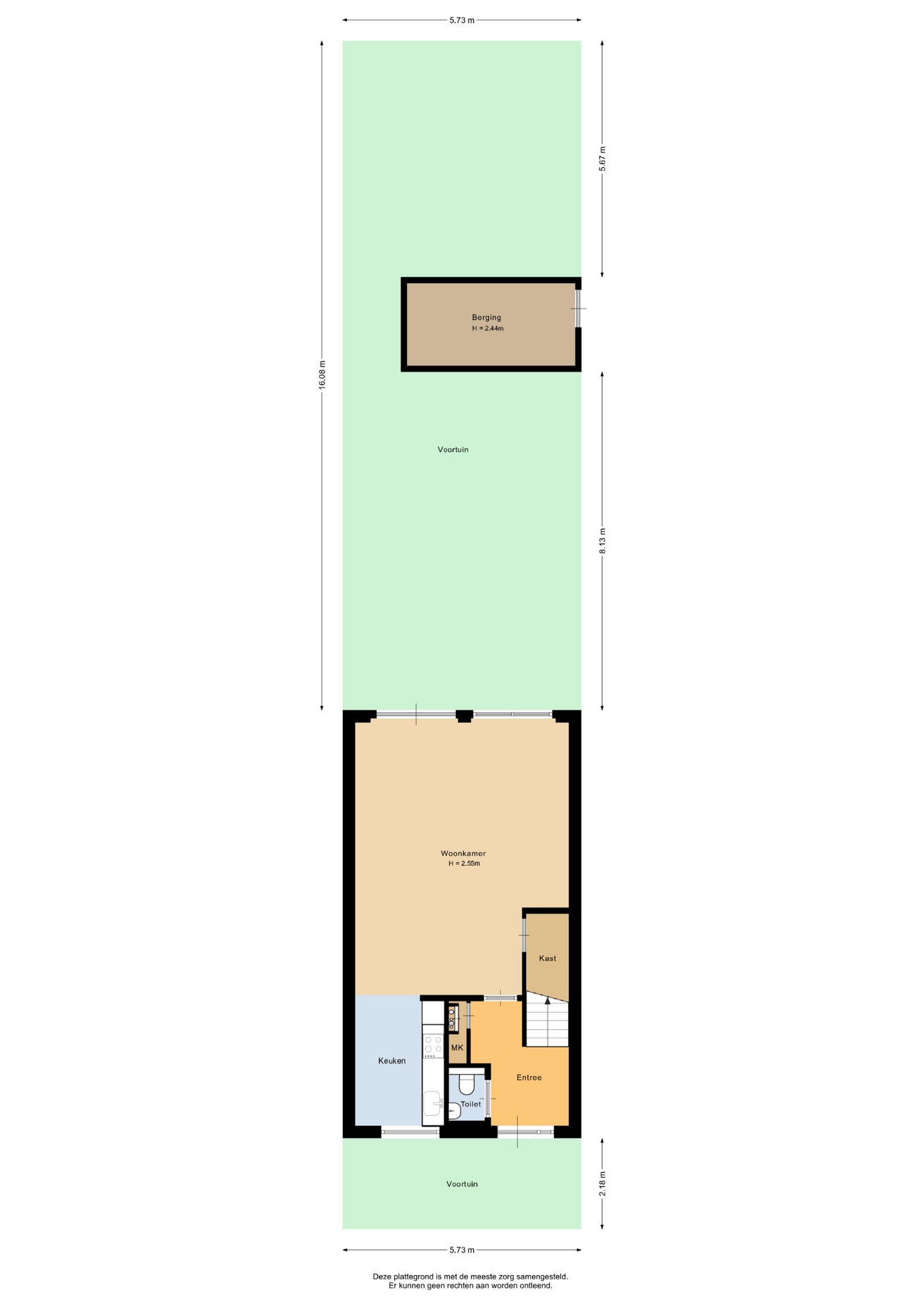 “Deze informatie is door ons met de nodige zorgvuldigheid samengesteld. Onzerzijds wordt echter geen enkele aansprakelijkheid aanvaard voor enige onvolledigheid, onjuistheid of anderszins, dan wel de gevolgen daarvan. Alle opgegeven maten en oppervlakten zijn indicatief.”