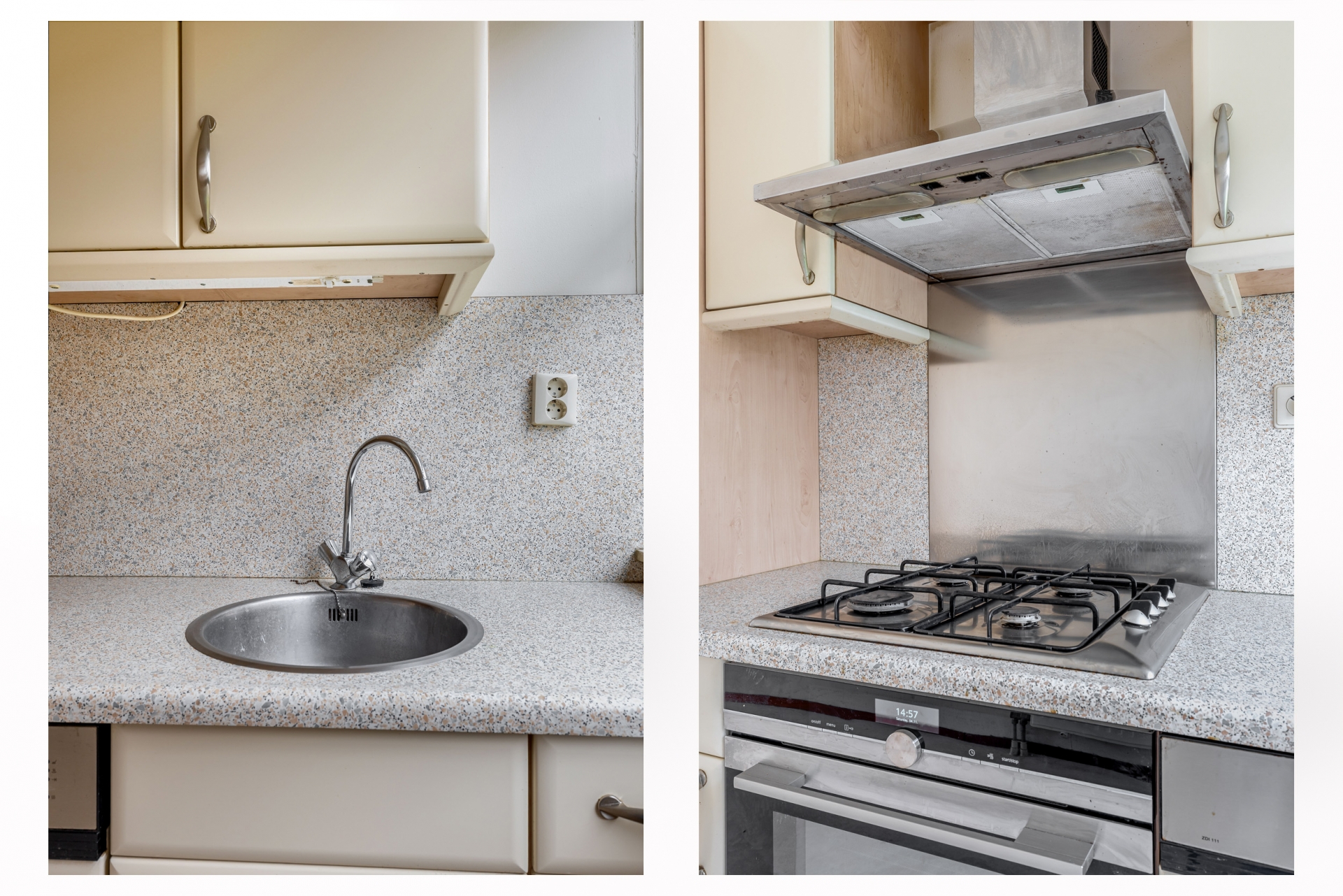 De keuken bevindt zich aan de voorzijde en is functioneel, maar gedateerd. Ook hier geldt: de ruimte is goed, de mogelijkheden zijn er. Wil je een open keuken? Of juist een moderne leefkeuken met veel kastruimte? Hier kun je jouw woonwensen realiseren zonder eerst te hoeven verbouwen aan de constructie.