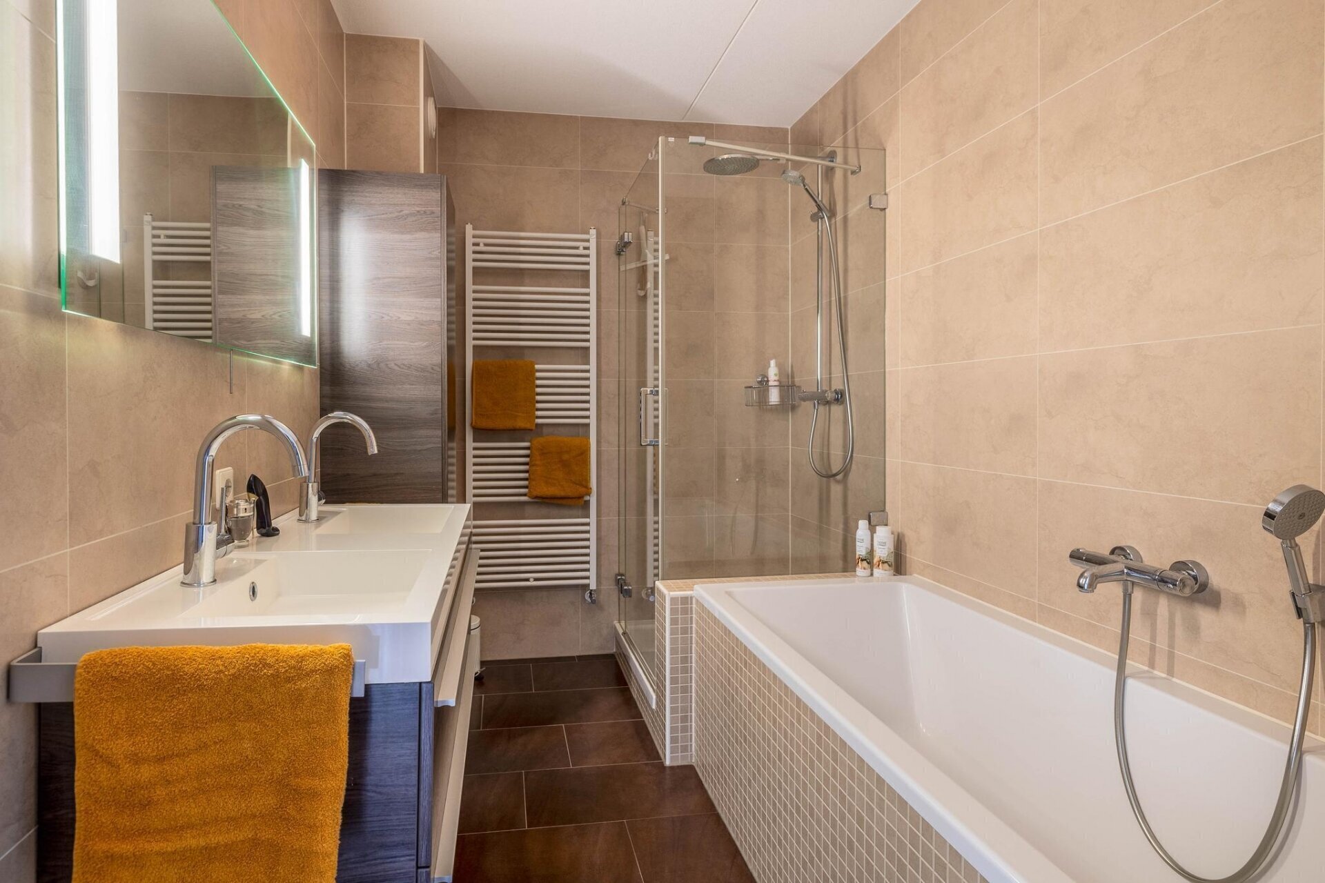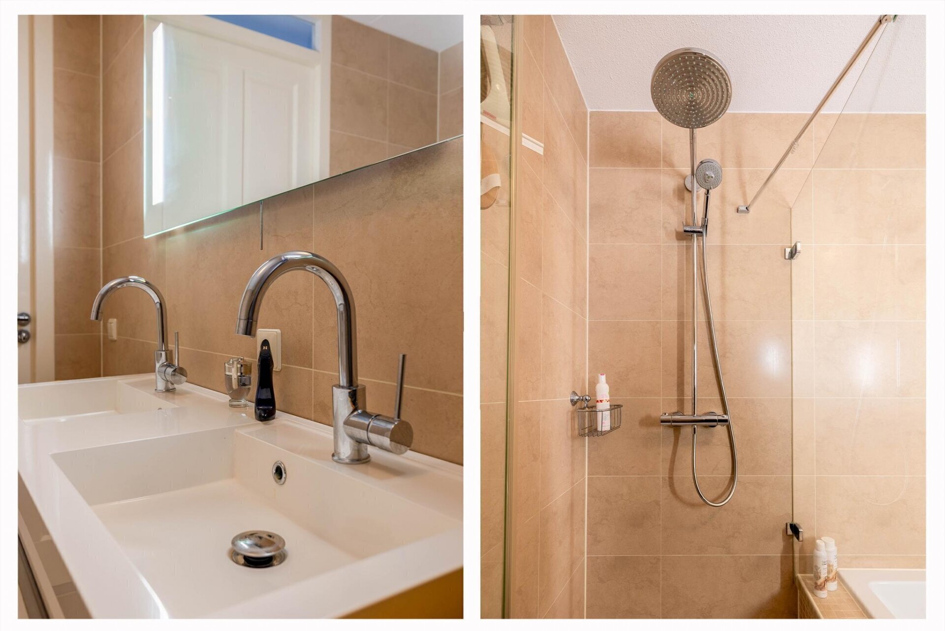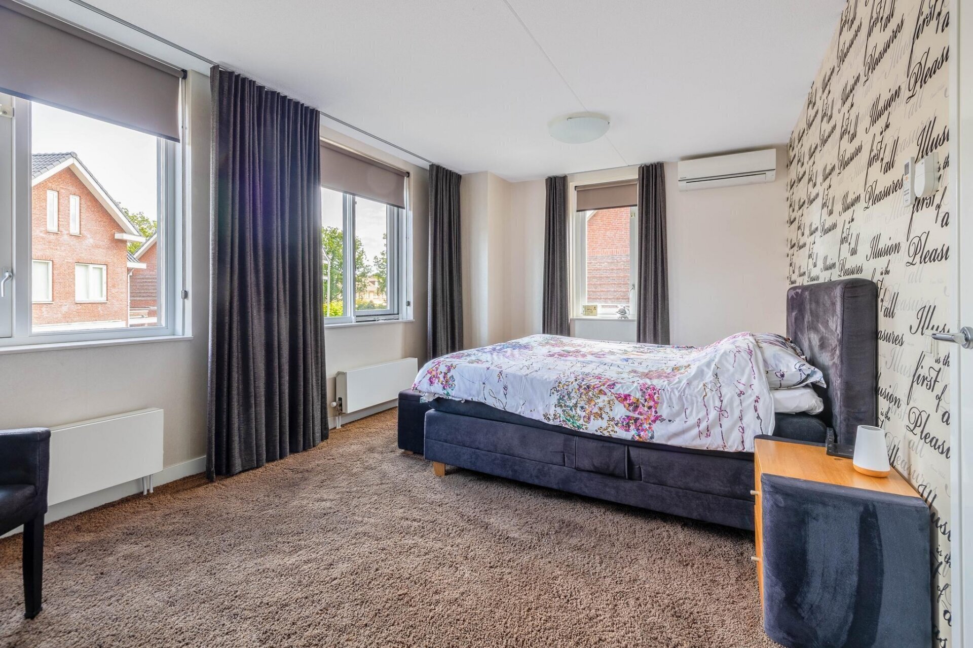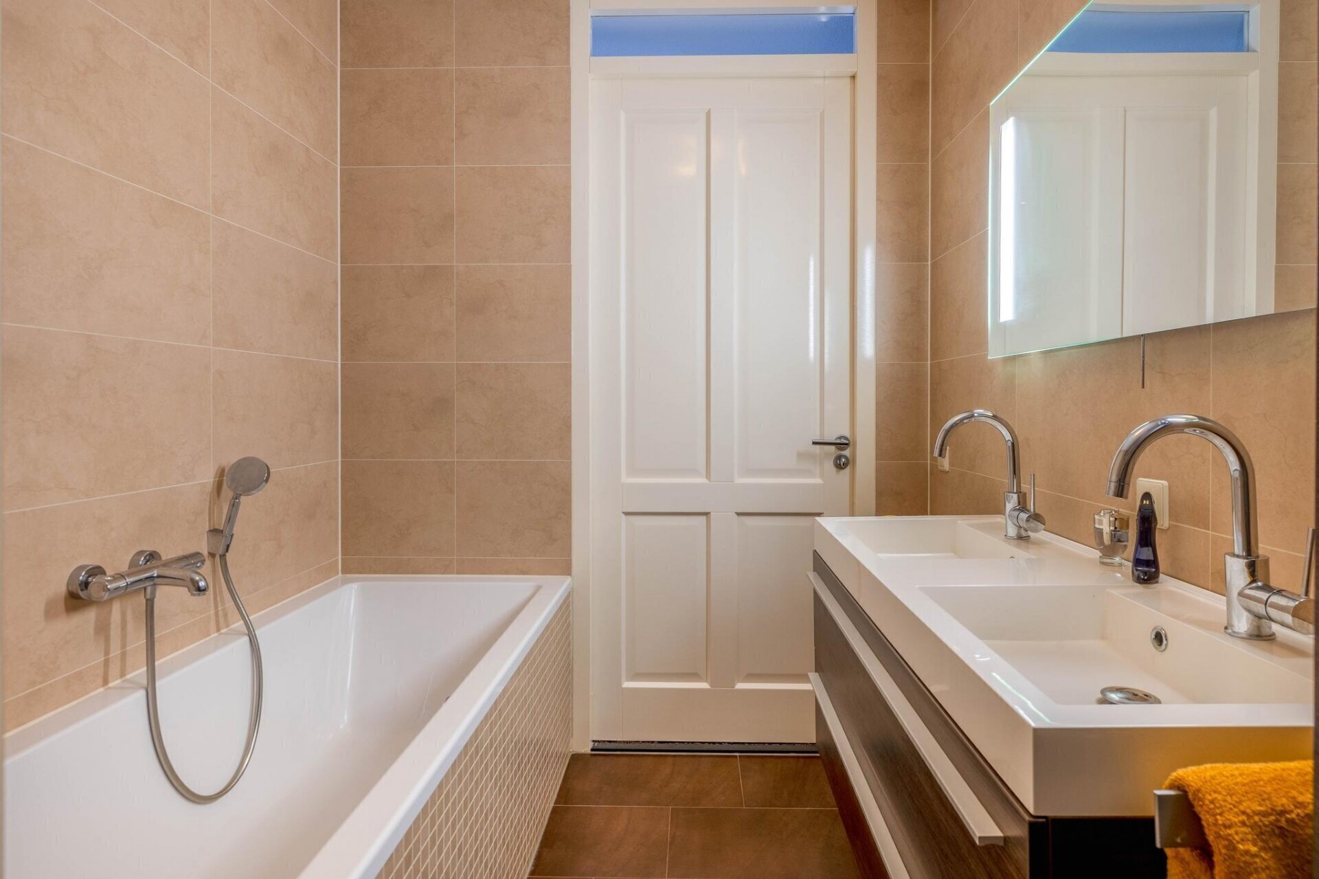 Overloop, separate tweede toilet en 4 ruime slaapkamers waarvan de 4e kamer eenvoudig weer is op te delen naar een 5e slaapkamer. De hoofdslaapkamer is voorzien van een kastenwand alsmede een airco. De badkamer is geheel betegeld en ingericht met een dubbele wastafel met meubel en een spiegelkast met verlichting, een ruime douchehoek en als sluitstuk een tweepersoonsligbad.