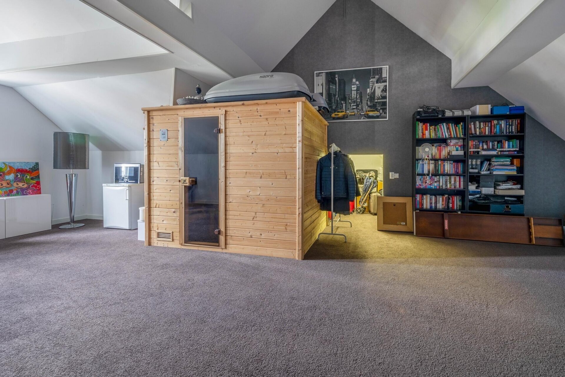 Open ruimte met sauna en een was-/werkruimte waar de opstelling van de cv-combiketel (AWB) is en de voorzieningen gemaakt zijn om te kunnen wassen en drogen. Een separate hobby-ruimte en een extra bergruimte maken deze etage weer compleet. Deze verdieping heeft de flexibiliteit dat er ook nog een extra slaap- of hobbykamer gemaakt kan worden.