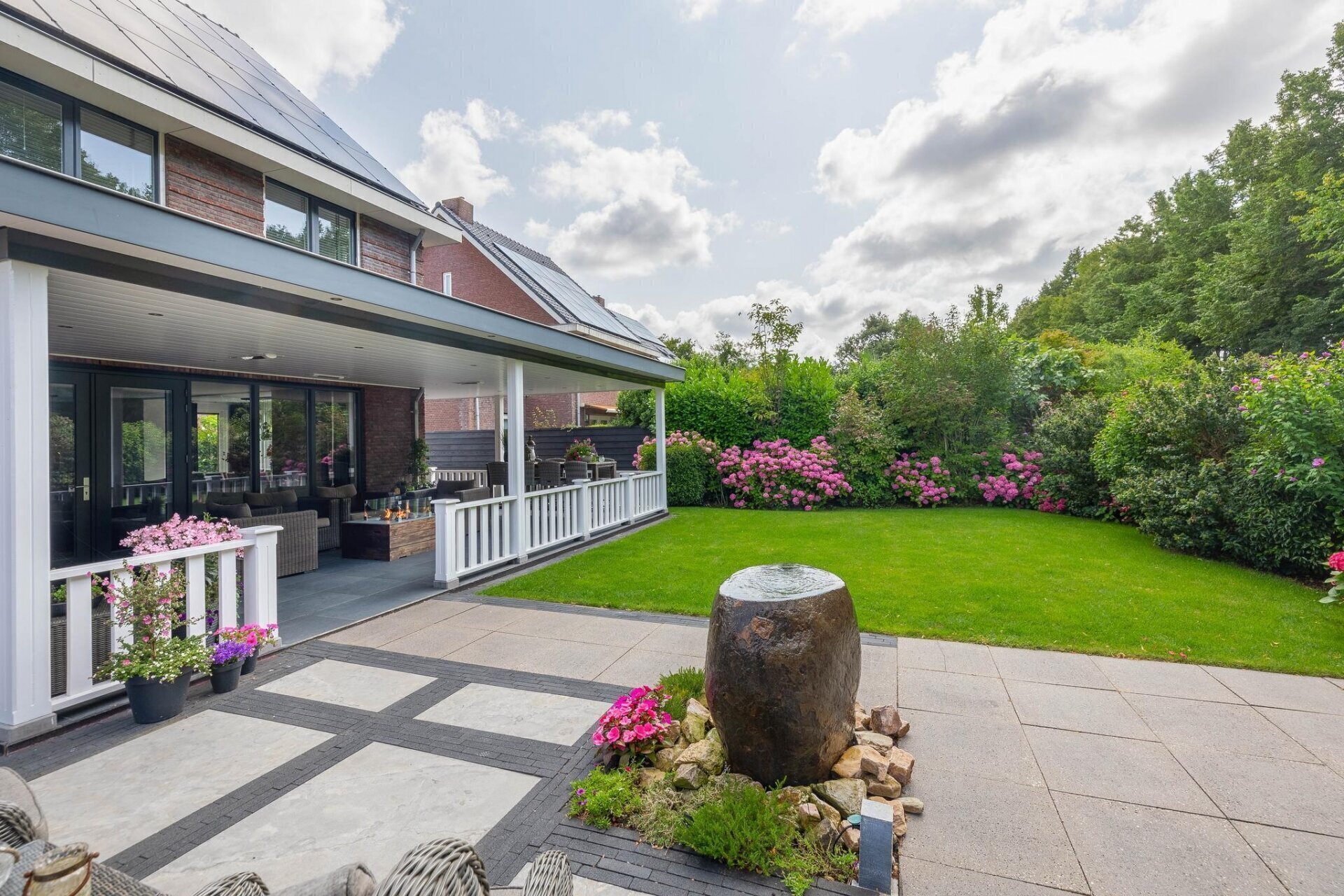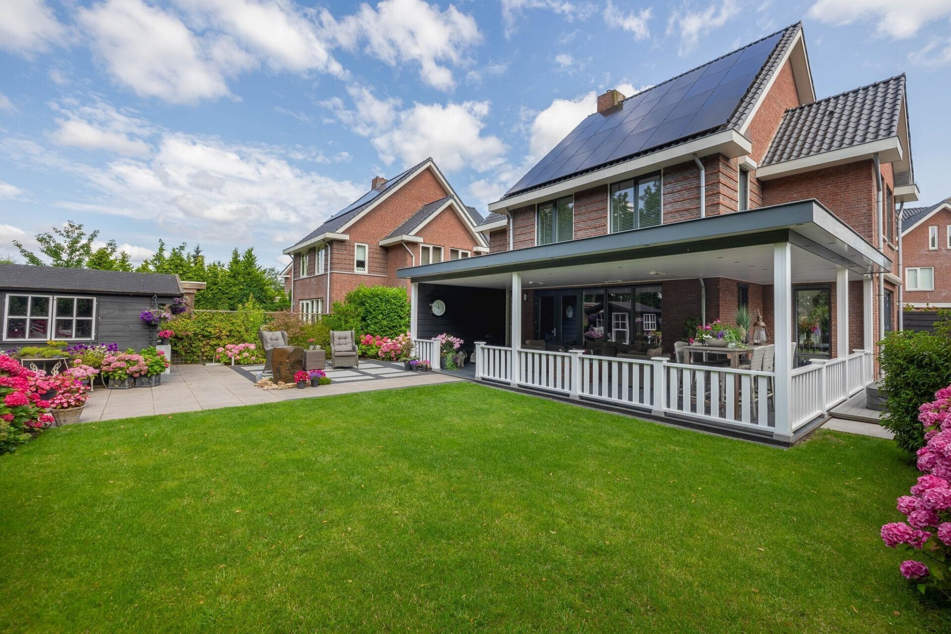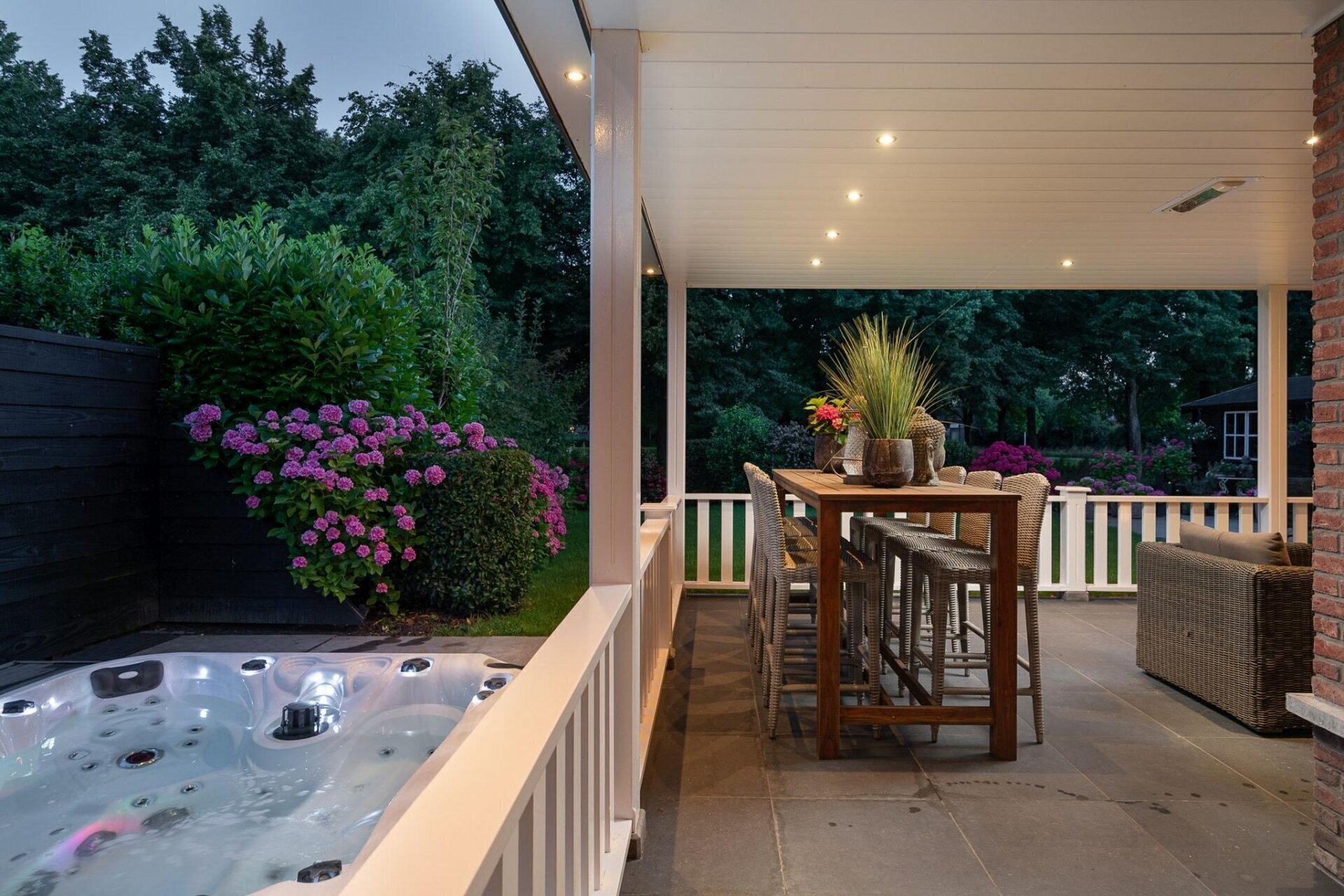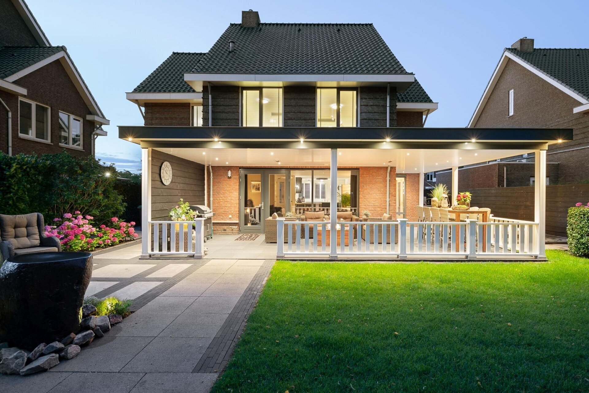 Door de vrije ligging en de oppervlakte van de tuin kunt u op elk gewenst moment van de dag een heerlijke plek vinden in de rustige tuin. Voor de late uurtjes is er een sfeervolle overkapping direct aan de woning geplaatst van ruim 46 m2 met verwarming, sfeerverlichting en een buitenkraan waardoor u hier ook eenvoudig een lounge-ruimte met een buitenkeuken zou kunnen maken. De tuin is aan weerszijden van het huis afsluitbaar middels een hekwerk.