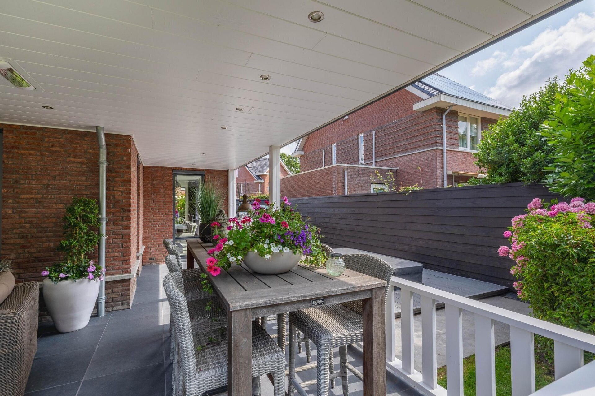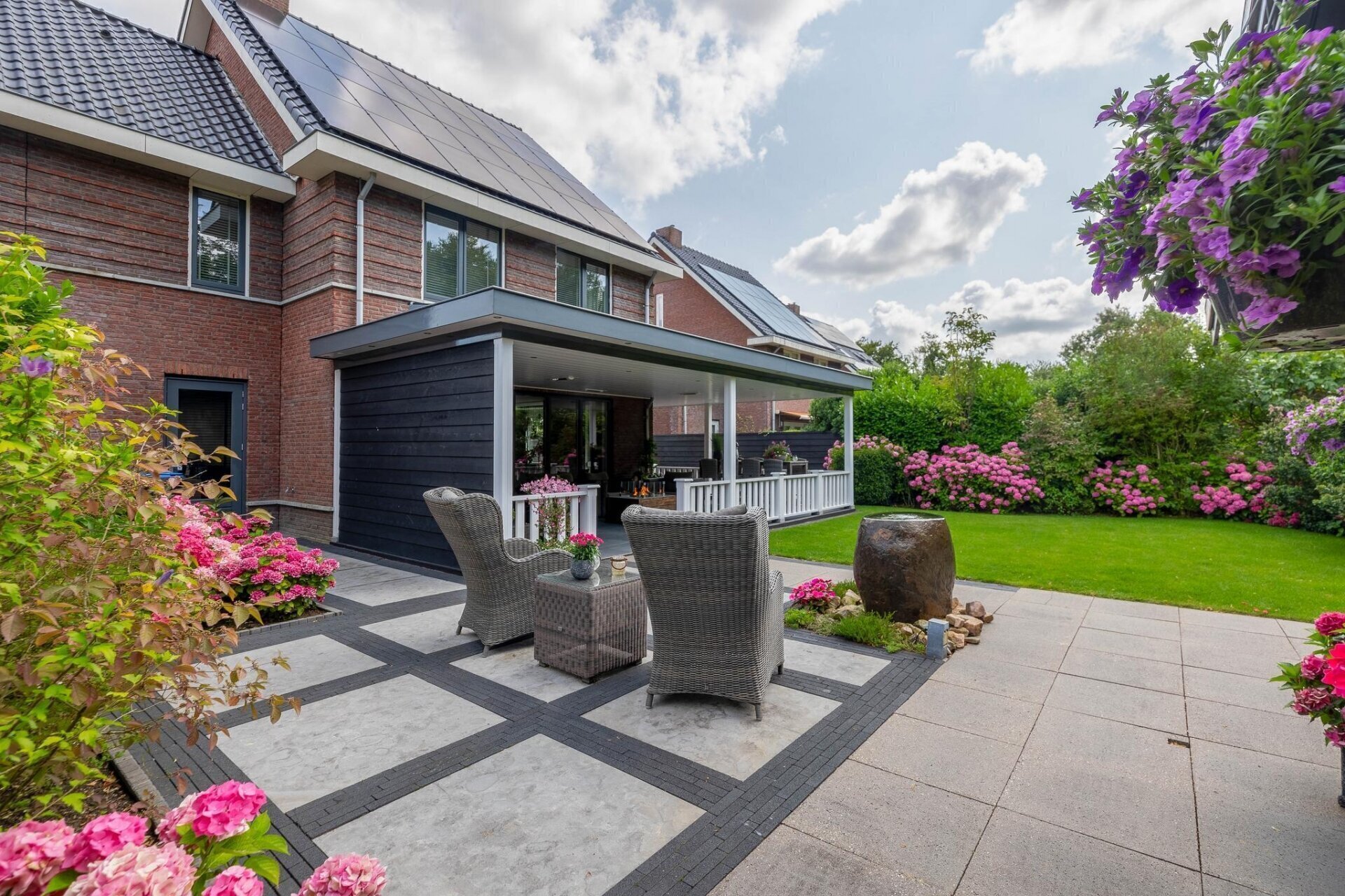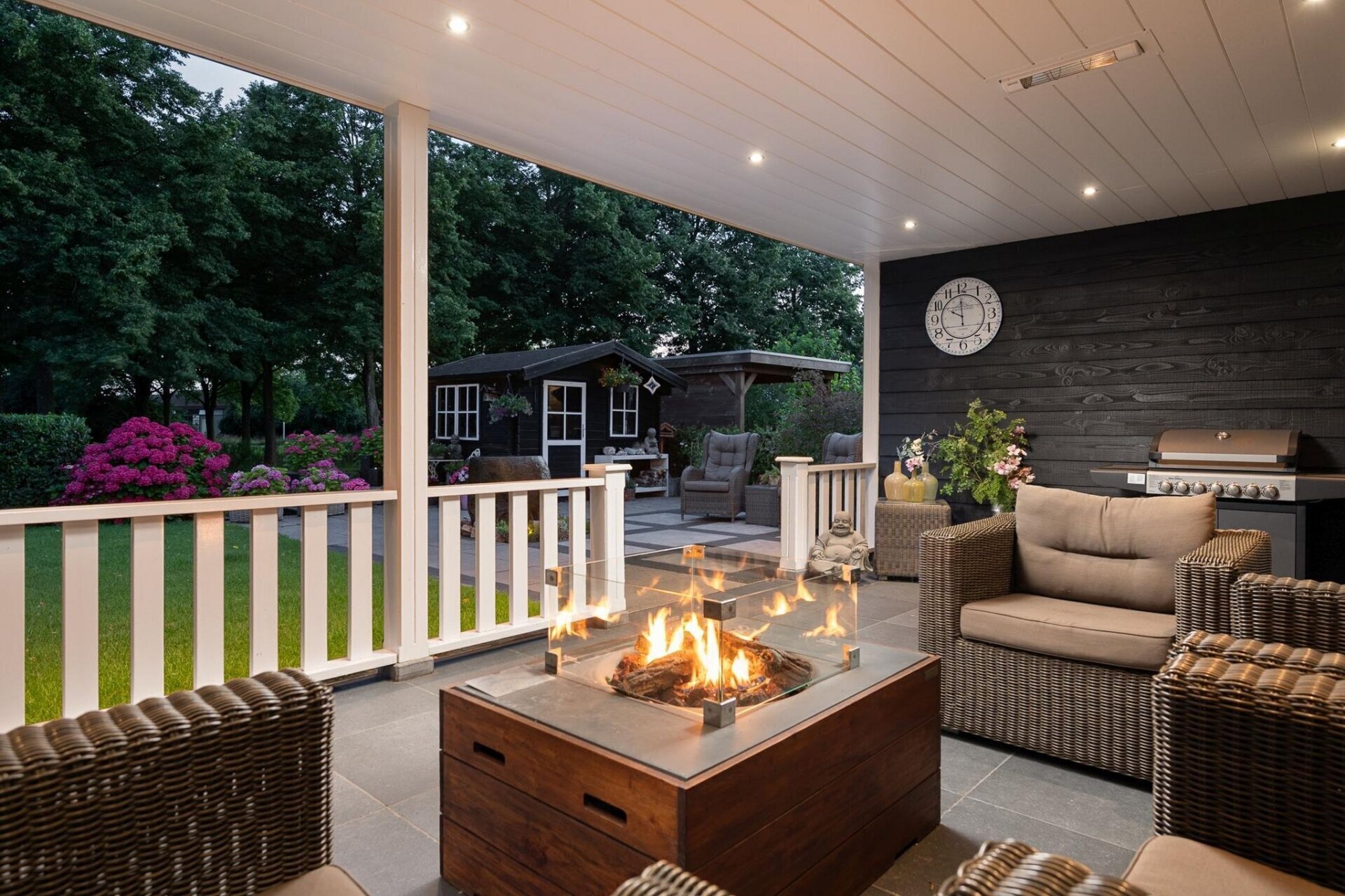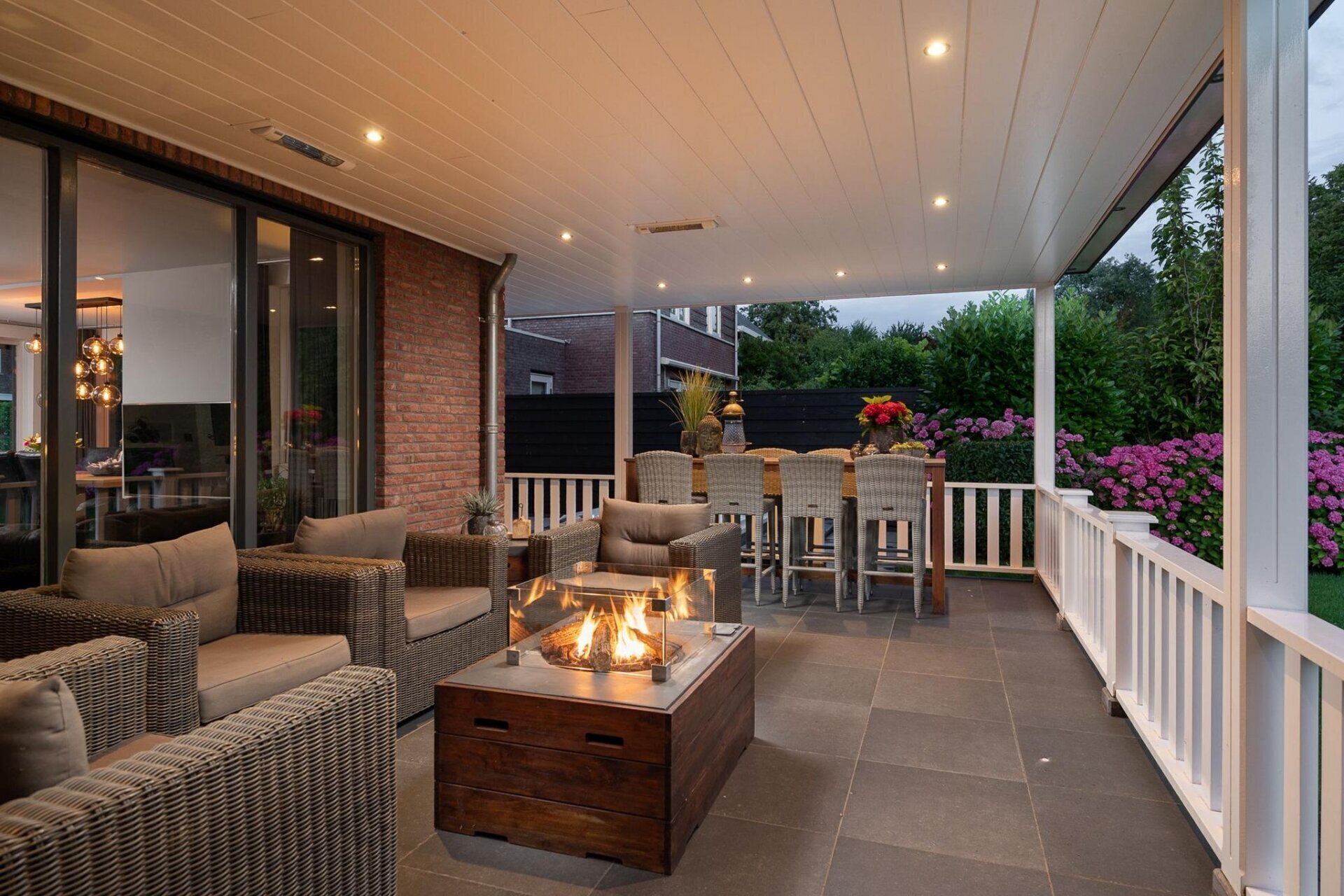 Door de vrije ligging en de oppervlakte van de tuin kunt u op elk gewenst moment van de dag een heerlijke plek vinden in de rustige tuin. Voor de late uurtjes is er een sfeervolle overkapping direct aan de woning geplaatst van ruim 46 m2 met verwarming, sfeerverlichting en een buitenkraan waardoor u hier ook eenvoudig een lounge-ruimte met een buitenkeuken zou kunnen maken. De tuin is aan weerszijden van het huis afsluitbaar middels een hekwerk.