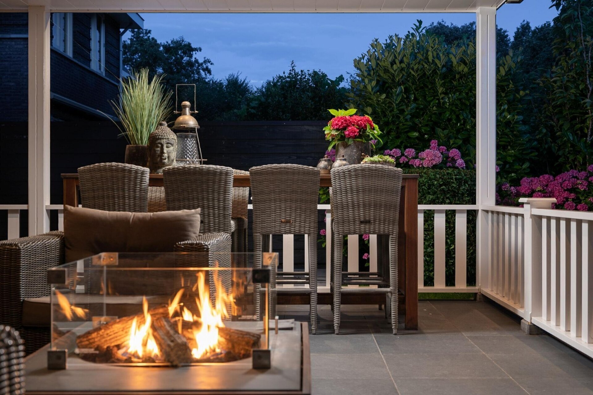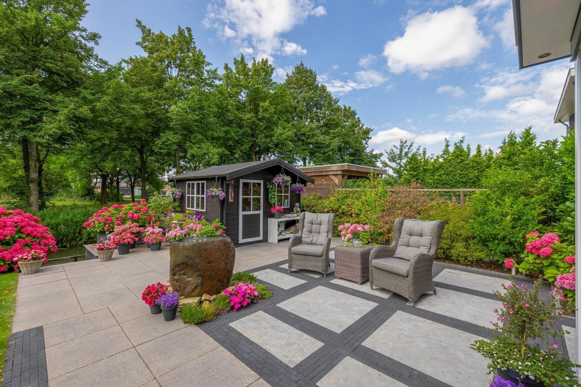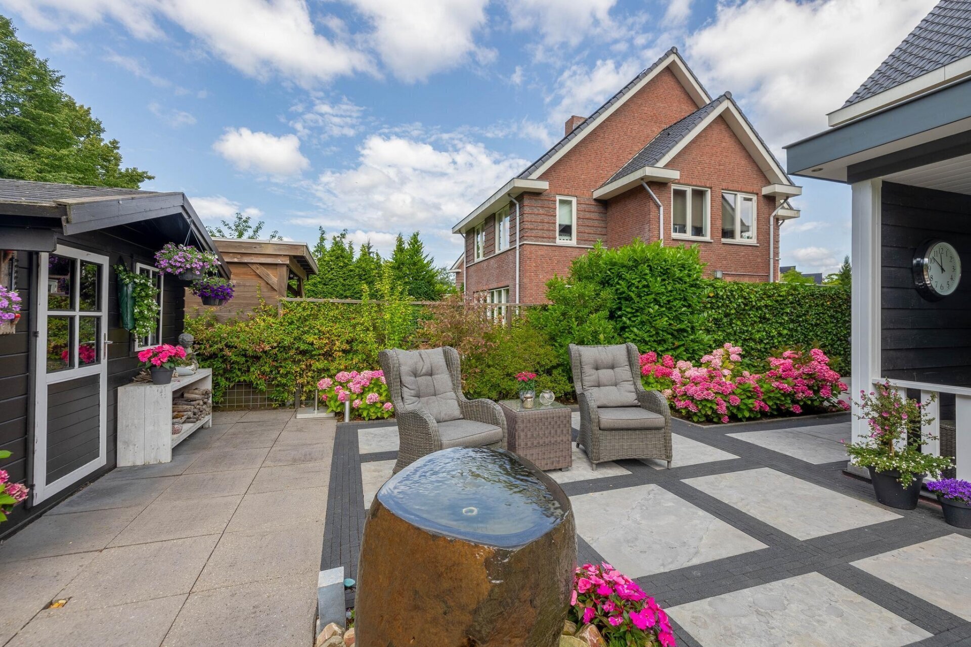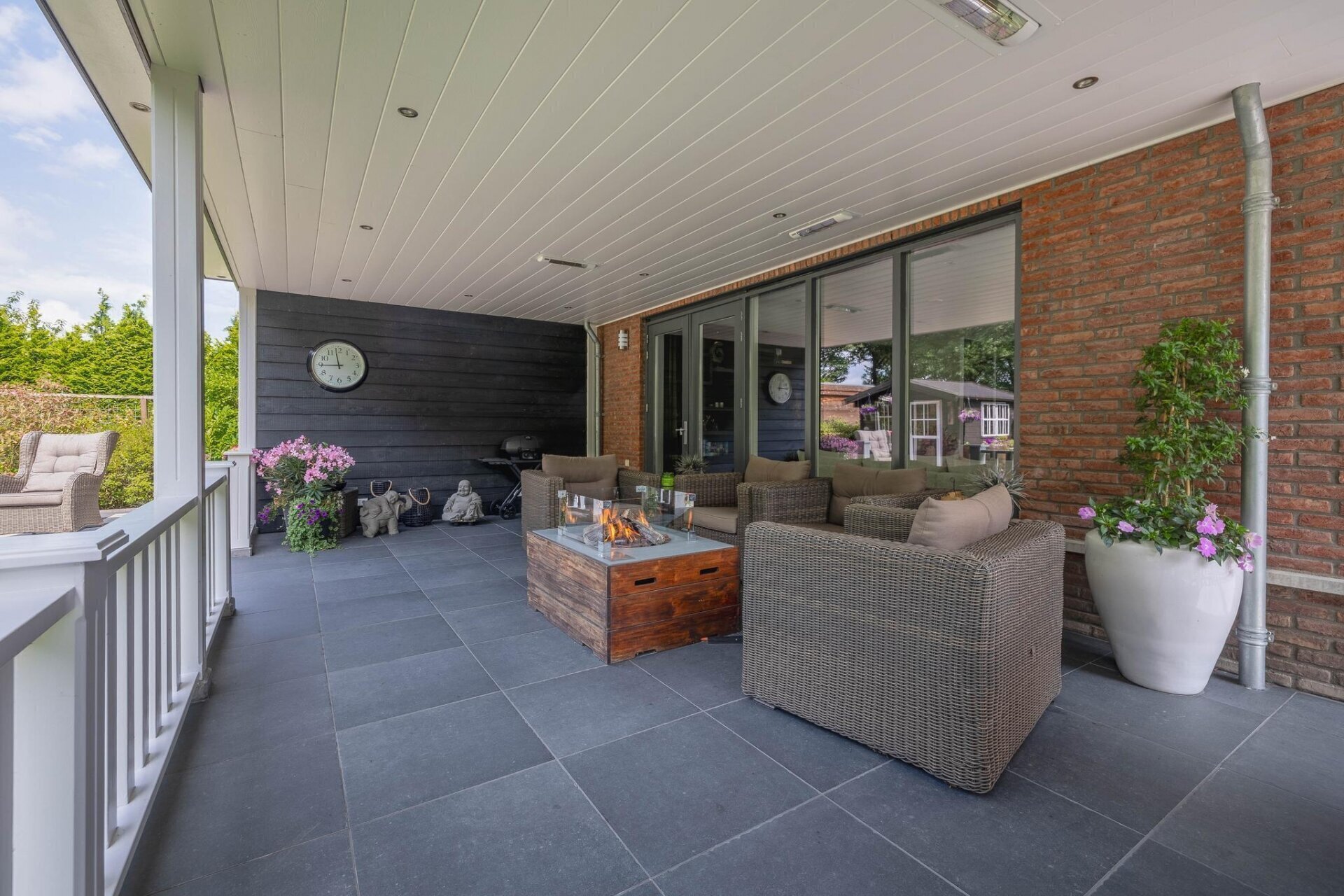 Door de vrije ligging en de oppervlakte van de tuin kunt u op elk gewenst moment van de dag een heerlijke plek vinden in de rustige tuin. Voor de late uurtjes is er een sfeervolle overkapping direct aan de woning geplaatst van ruim 46 m2 met verwarming, sfeerverlichting en een buitenkraan waardoor u hier ook eenvoudig een lounge-ruimte met een buitenkeuken zou kunnen maken. De tuin is aan weerszijden van het huis afsluitbaar middels een hekwerk.