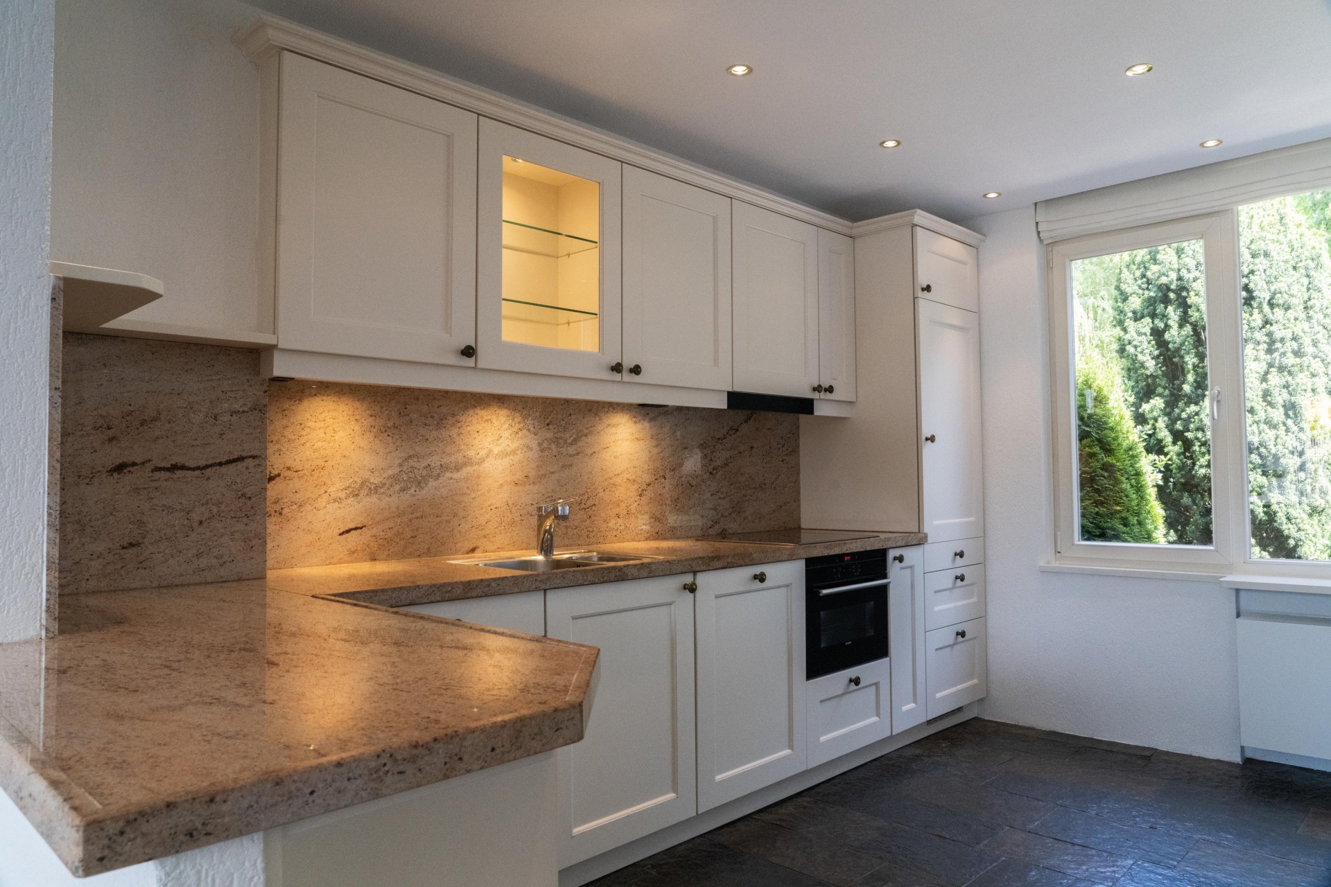 De keuken bevindt zich aan de voorzijde en is uitgerust met een granieten aanrechtblad, keramische kookplaat, afzuigkap, vaatwasser, koel/vriescombinatie en combimagnetron. Koken met uitzicht op de straat — gezellig én praktisch!