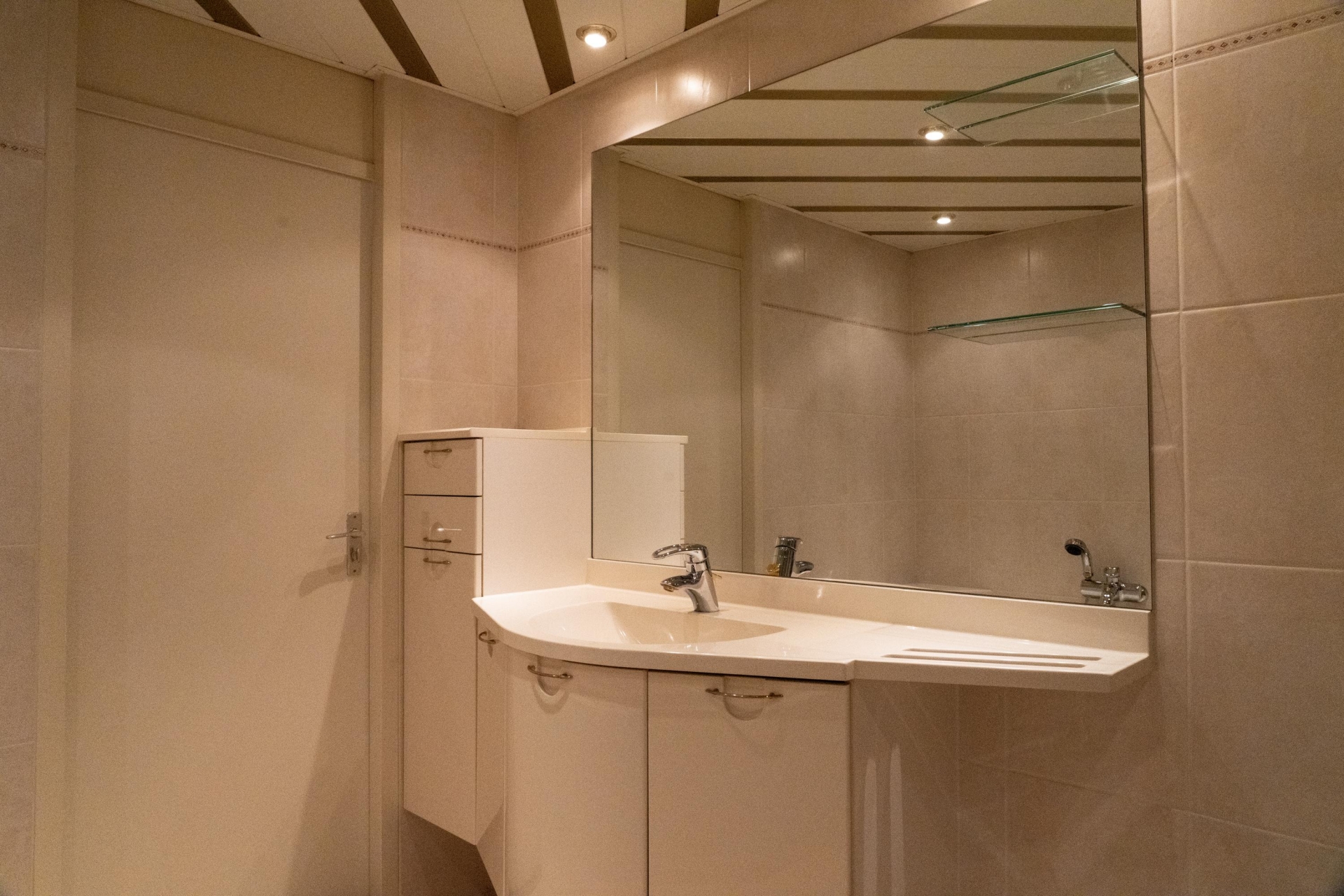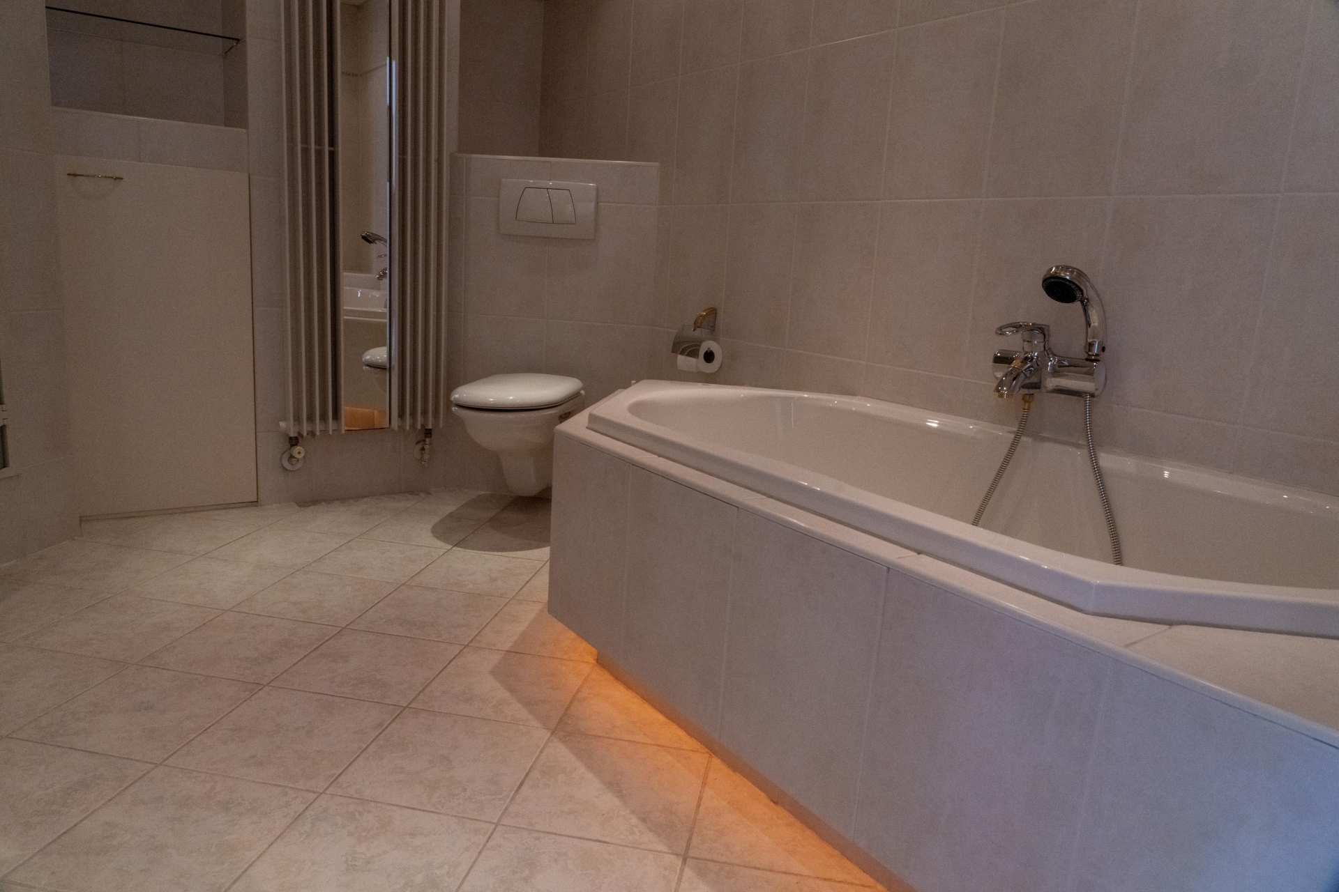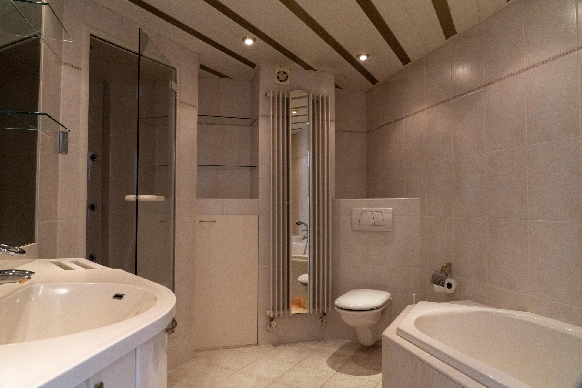 De complete badkamer is centraal gelegen en biedt zowel een ligbad als een douche, die tevens te gebruiken is als stoomcabine. Verder treft u hier een wastafelmeubel en het tweede toilet.