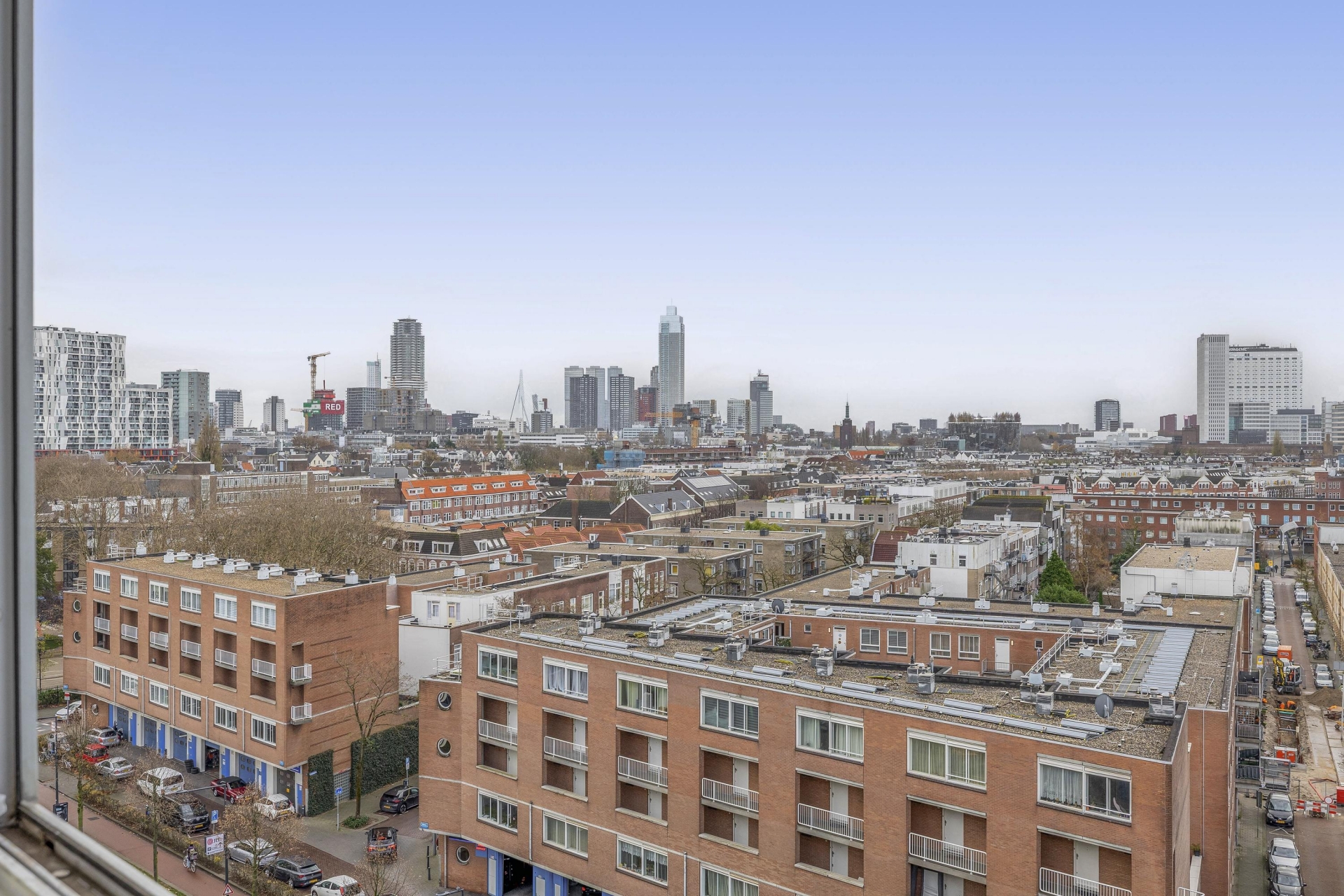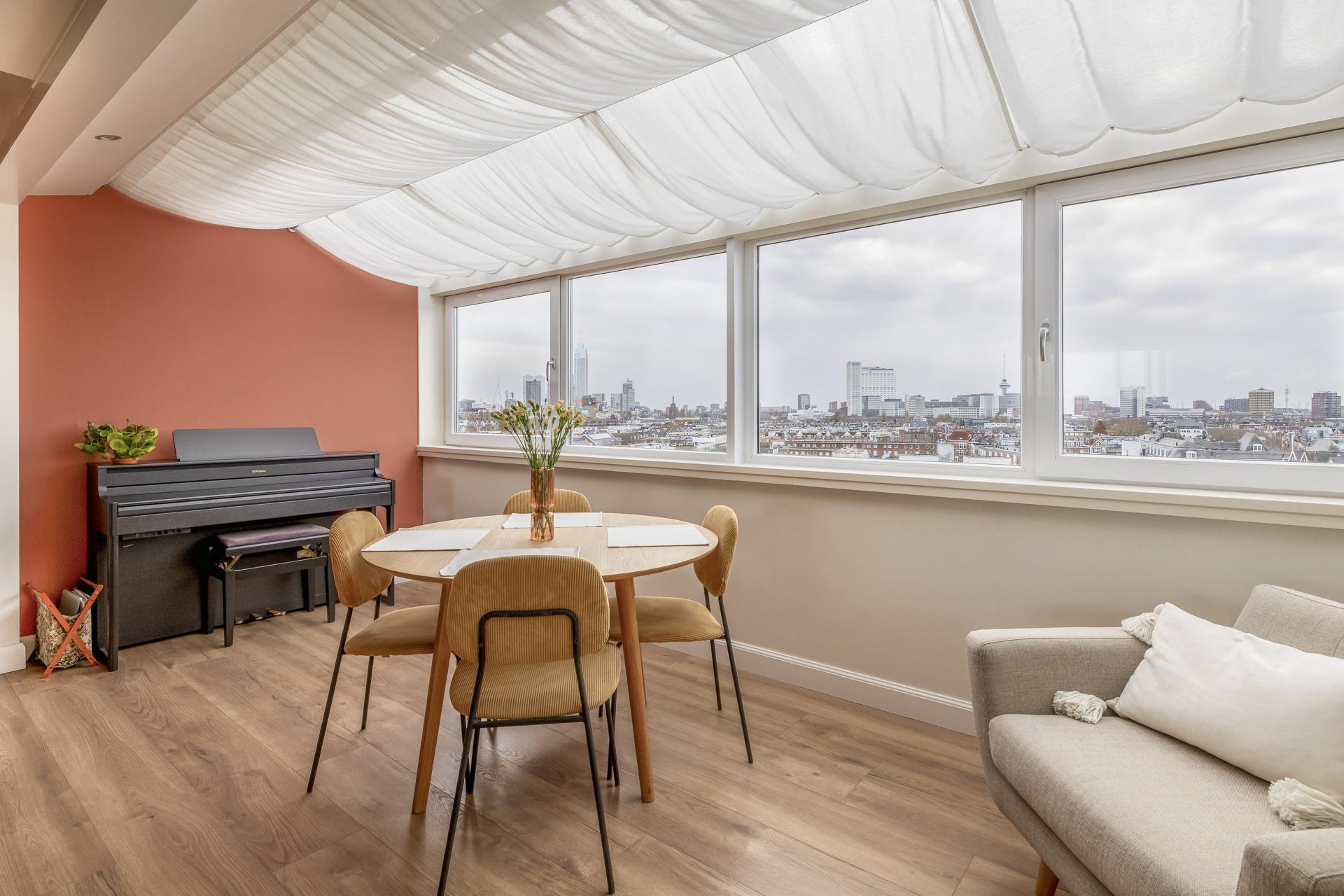 Uitzicht over de skyline van Rotterdam, speelse vide en een parkeerplek in de afgesloten garage. Wonen aan het Weena betekent thuiskomen in het bruisende hart van Rotterdam. Dit speelse appartement met vide, moderne afwerking en indrukwekkend uitzicht over de skyline biedt elke dag een unieke woonervaring. Met een eigen parkeerplek en alles om de hoek, leef je hier écht…