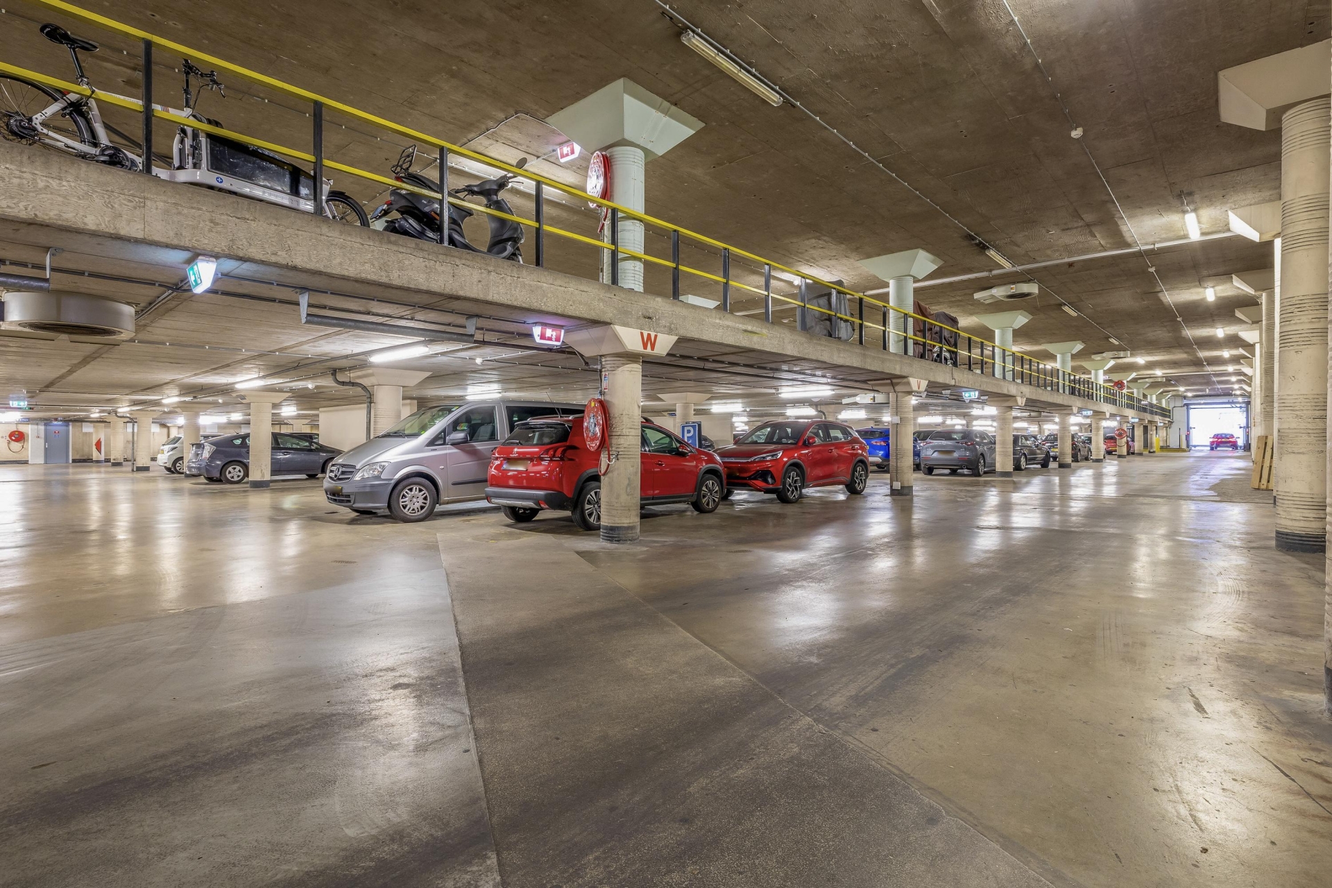 In de onderbouw (-1) van het complex beschik je over een eigen parkeerplaats. Deze plek is niet vast, maar biedt wel de zekerheid van een parkeermogelijkheid in hartje stad, een absolute pré! Voor fietsen, extra opslag en gemak is er ook een privéberging van ca. 5 m², handig gelegen op de eerste verdieping nabij het wandeldek en de zij-uitgang van het gebouw.