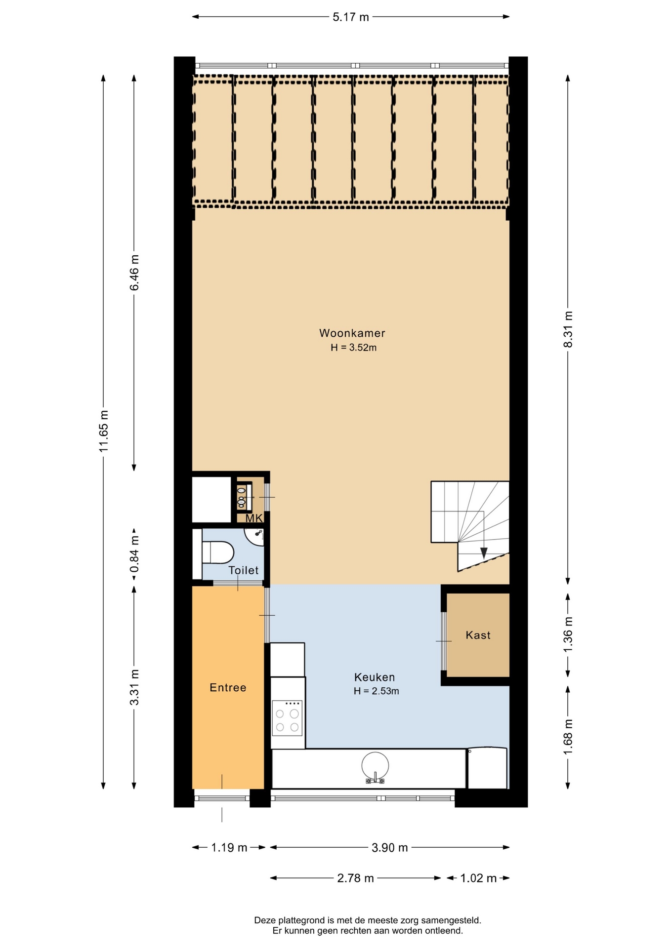 “Deze informatie is door ons met de nodige zorgvuldigheid samengesteld. Onzerzijds wordt echter geen enkele aansprakelijkheid aanvaard voor enige onvolledigheid, onjuistheid of anderszins, dan wel de gevolgen daarvan. Alle opgegeven maten en oppervlakten zijn indicatief.”