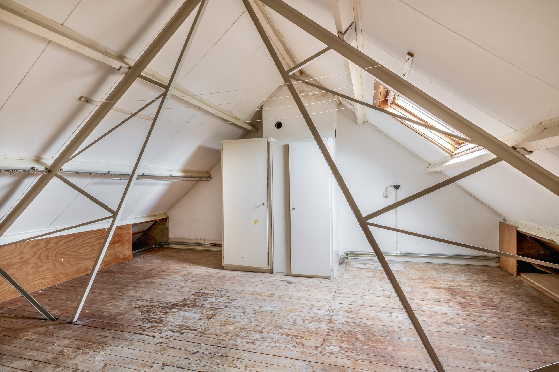 Overloop met opstelplaats CV combiketel en bergruimte; 4e slaapkamer voorzien van een dakvenster.