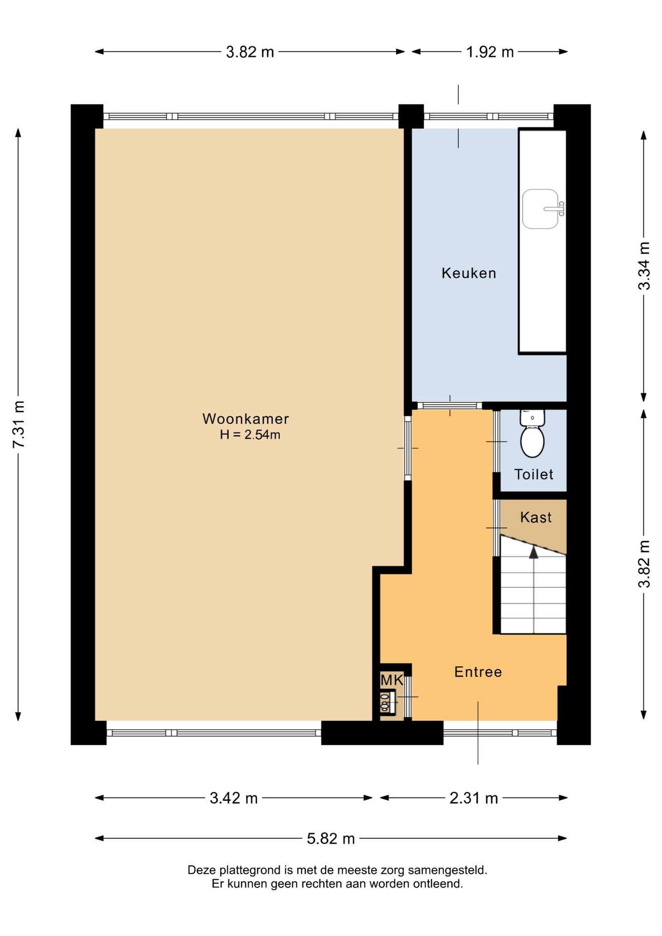 "Deze informatie is door ons met de nodige zorgvuldigheid samengesteld. Onzerzijds wordt echter geen enkele aansprakelijkheid aanvaard voor enige onvolledigheid, onjuistheid of anderszins, dan wel de gevolgen daarvan. Alle opgegeven maten en oppervlakten zijn indicatief. Van toepassing zijn de NVM voorwaarden".
