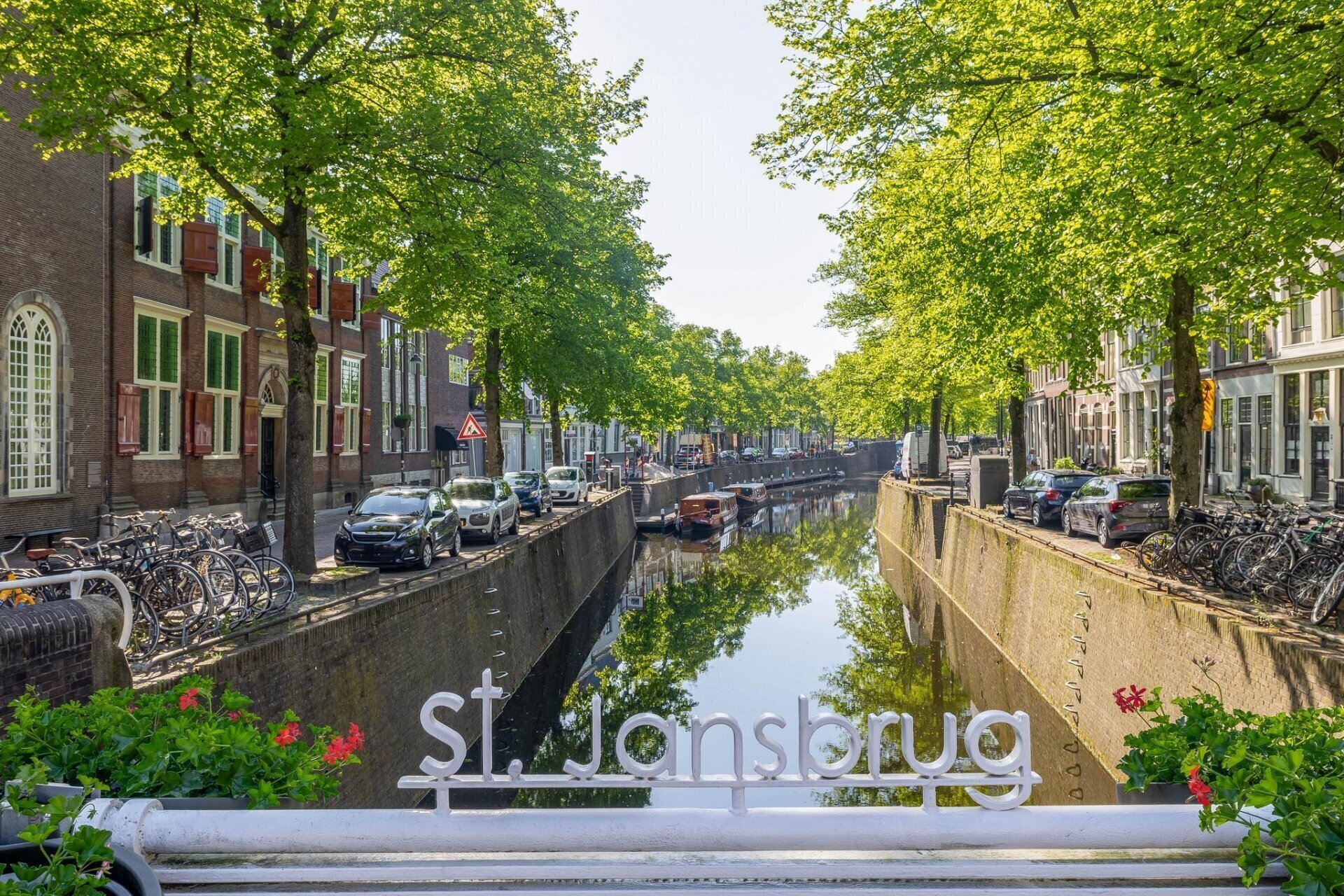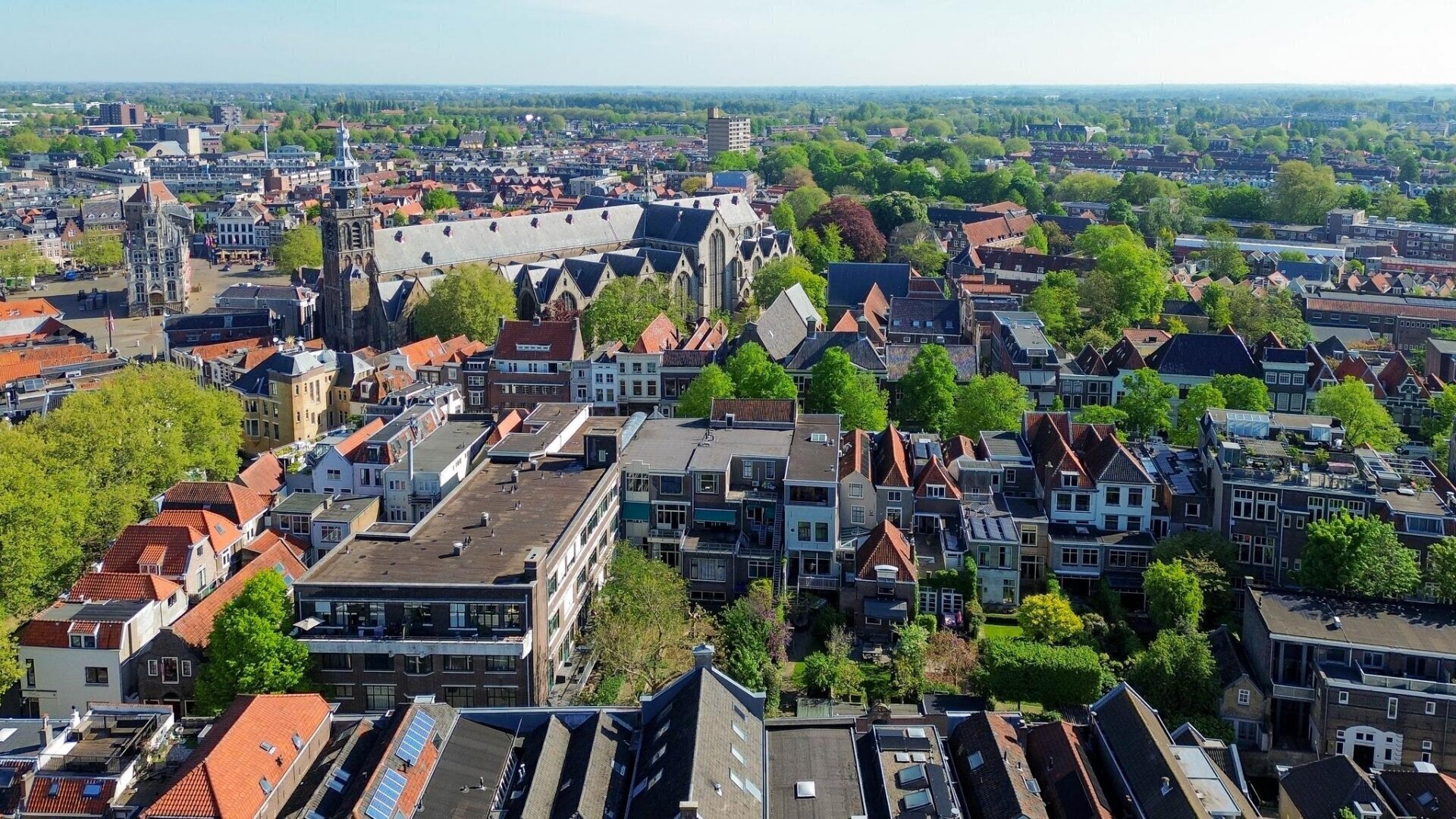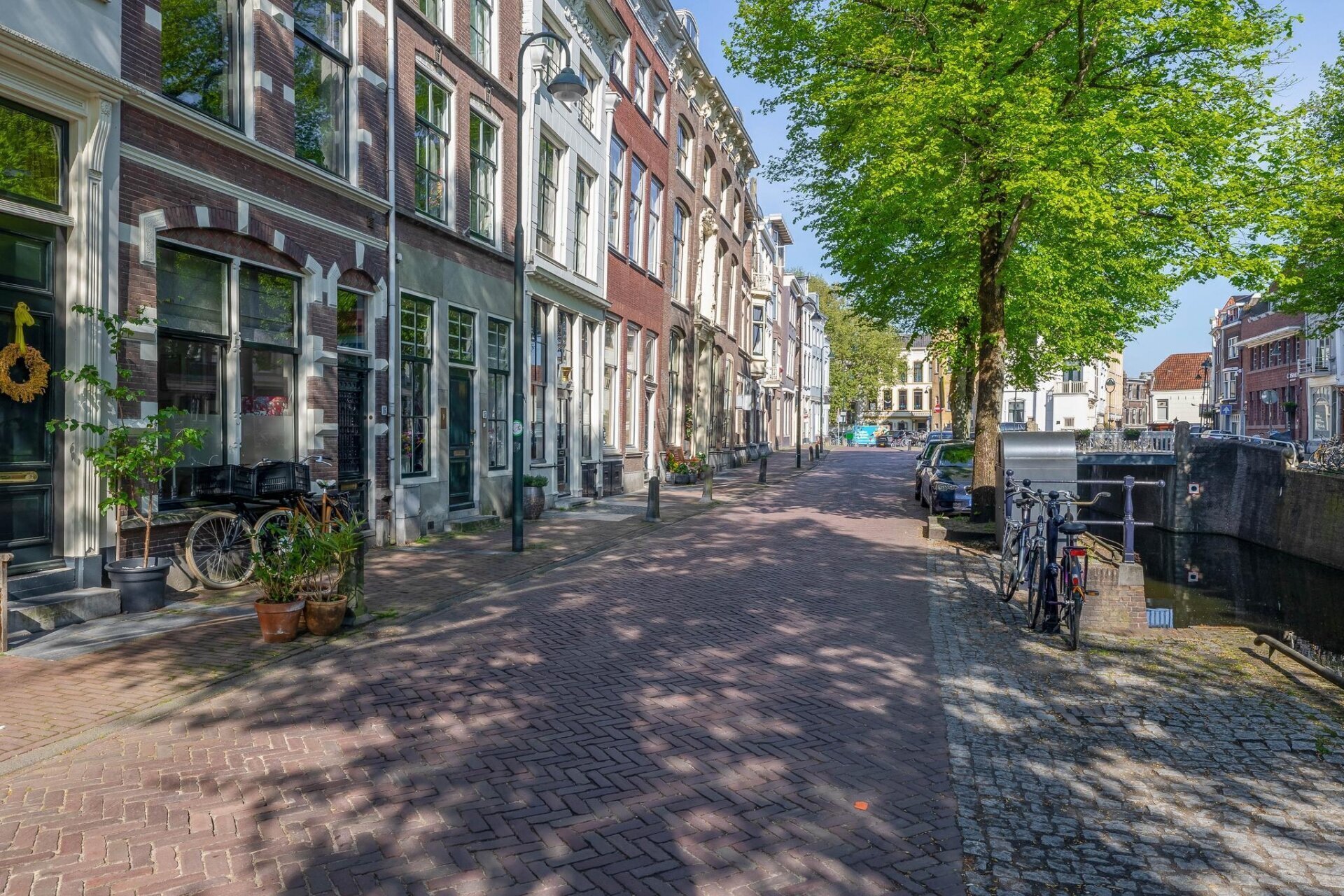 slaapkamer aan achterzijde met nieuwe achterpui met deur met terras en schitterend uitzicht over de historische panden van de Goudse binnenstad, slaapkamer met vaste kastenwand, airco, cv-ruimte en slaapkamer aan voorzijde met zicht op het museum en de St Janskerk