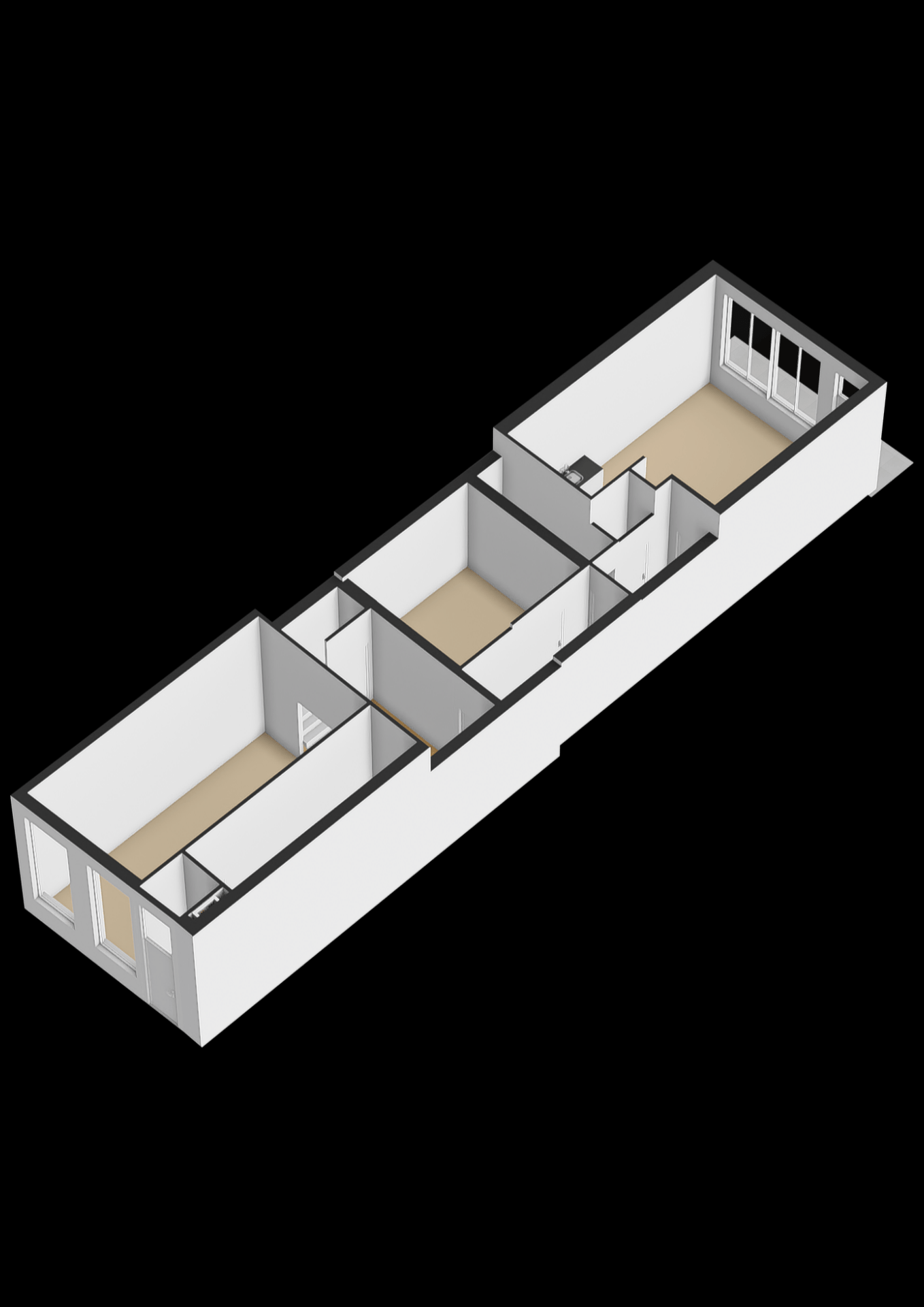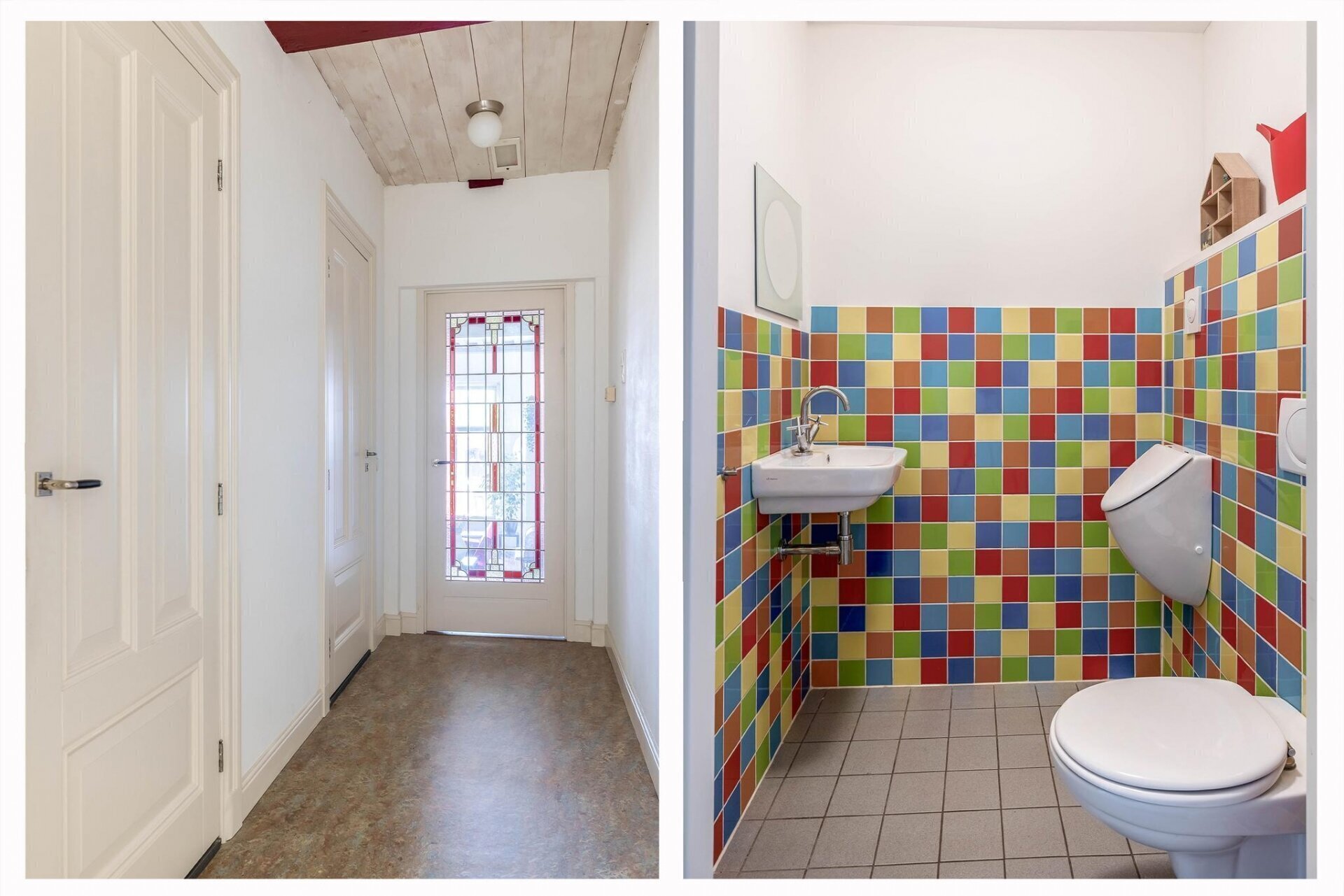 tussenhal met toiletruimte (met zwevend toilet, urinoir en wastafel), inpandige berging, voorkamer met zicht op de Haven en berging (ideaal voor het realiseren van slaapkamer met badkamer).