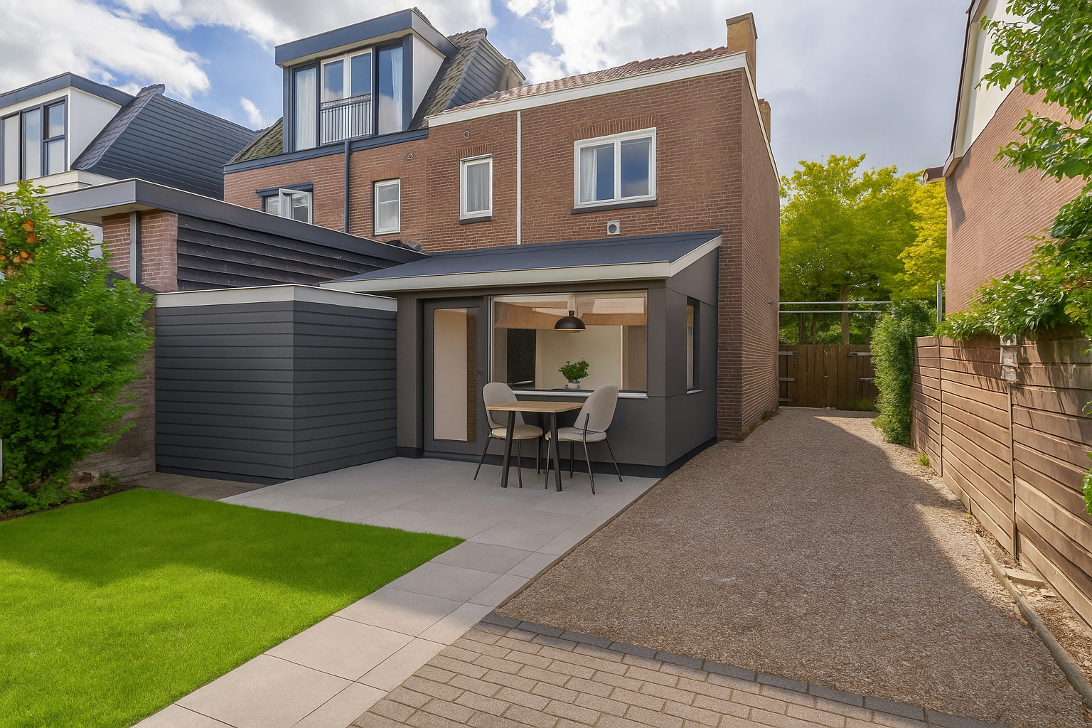 Achter het huis ligt een verzorgde achtertuin met volop mogelijkheden voor vergroening, een veranda of speelplek. Uniek is de dubbele garage aan de achterzijde met een elektrische sectionaldeur: ideaal voor wie extra opslag, een hobbyruimte of een werkplaats zoekt. De beide garages zijn bereikbaar via de zijkant van de woning aan de achterzijde van het perceel, waardoor je ook qua parkeren en bereikbaarheid goed zit.