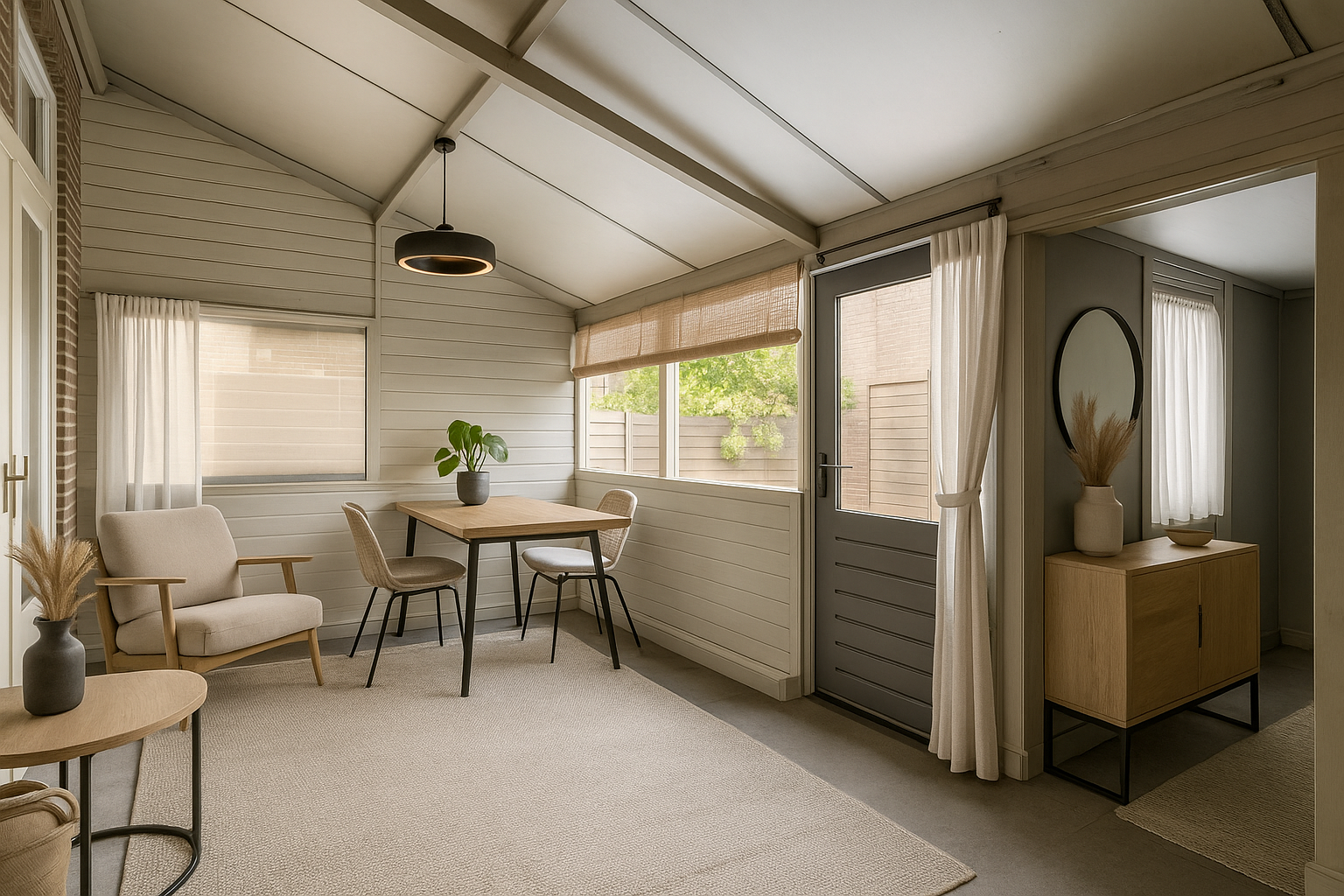 Bij binnenkomst in de hal voel je direct de sfeer van het huis. De woonkamer is licht en heeft nog originele elementen, zoals de erker aan de voorzijde die zorgt voor extra lichtinval en karakter. Er is plek voor een comfortabele zithoek en eettafel, en via de keuken met een verzorgde keukeninrichting loop je zo naar de serre aan de achterzijde met toegang tot de tuin. De afwerking is gedateerd, maar wie hier doorheen kijkt ziet meteen het potentieel: een lichte leefruimte met mooie basis.