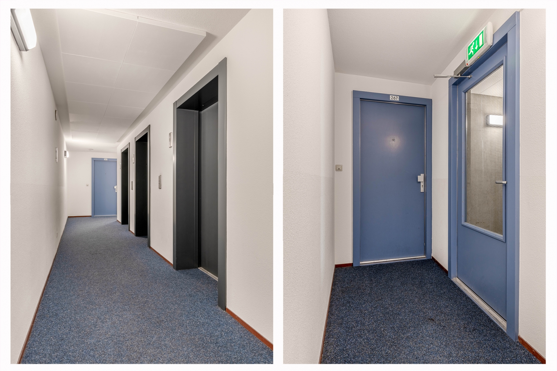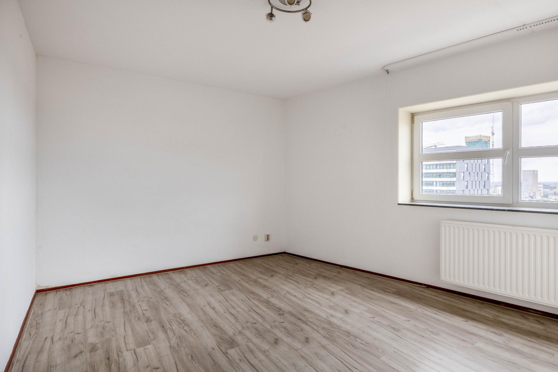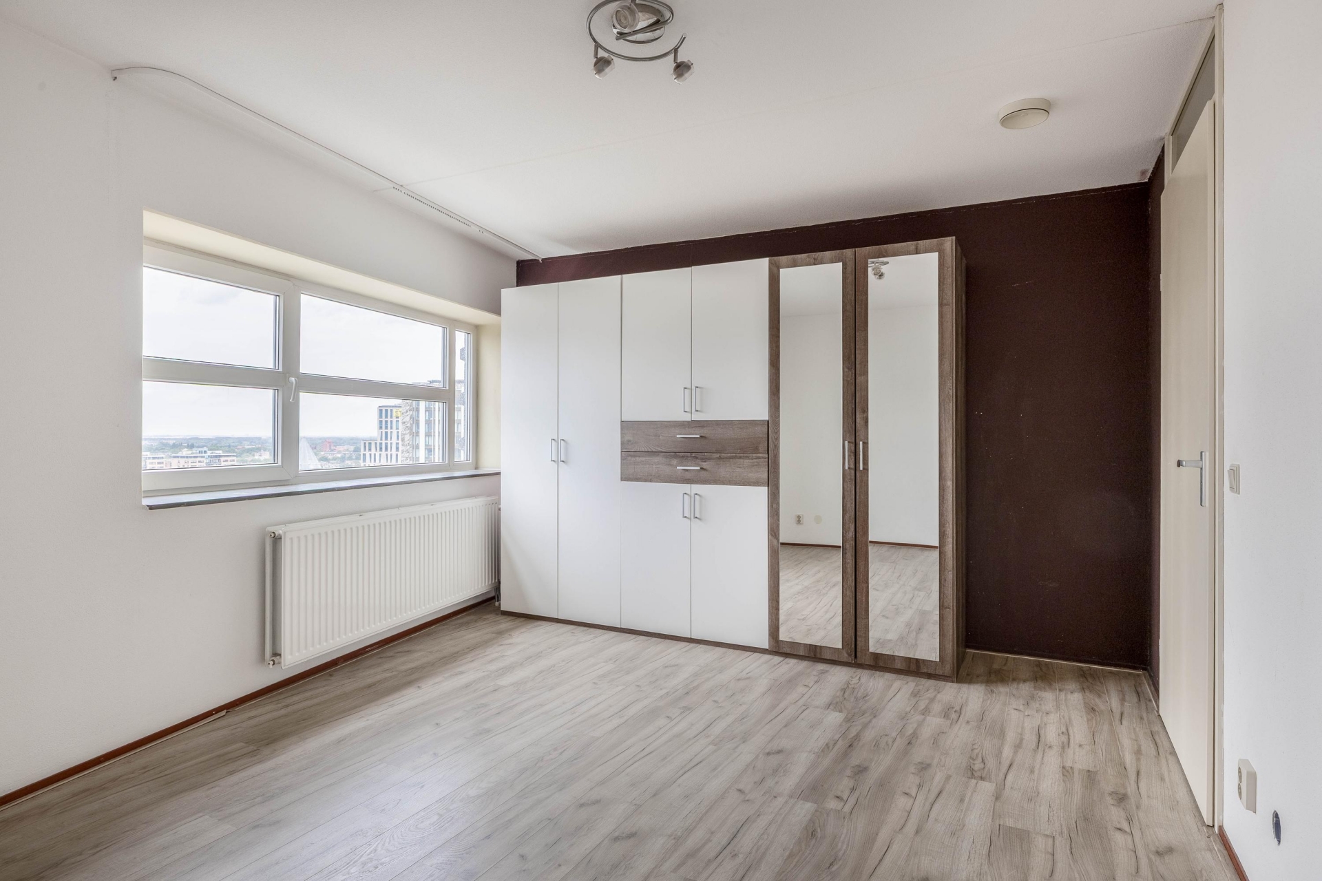 De slaapkamers zijn groter dan je misschien verwacht in een stadsappartement. Beide kamers bieden genoeg ruimte voor een tweepersoonsbed en extra meubels, zoals een grote kast of bureau. Handig voor wie thuis werkt of een logeerkamer wil. Verder is er een nette badkamer, een separaat toilet en een externe berging waar je met gemak je fiets of extra spullen kwijt kunt. Het complex is voorzien van een lift, zodat je moeiteloos op de 22e verdieping komt.