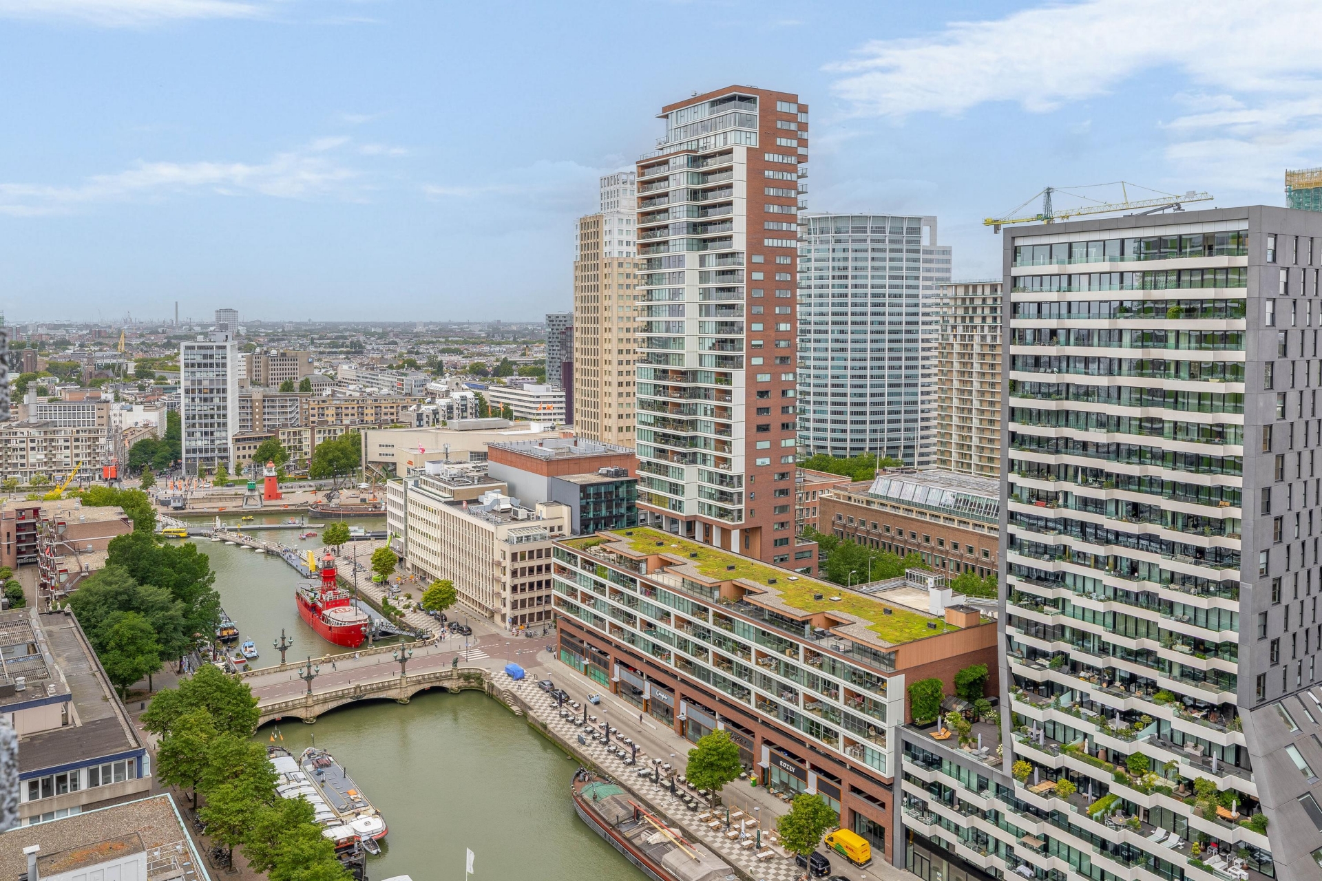 Welkom in dit lichte en ruime appartement op de 22e verdieping van De Waterstadtoren, een modern en herkenbaar complex aan de Wijnbrugstraat. Vanuit hier kijk je dagelijks uit over de stad en richting de iconische Willemsbrug – een uitzicht dat nooit verveelt. Dankzij de grote raampartijen aan de oostzijde geniet je van het ochtendlicht dat de woonkamer binnenvalt. Het appartement heeft een woonoppervlak van 74 m² en is slim ingedeeld, met twee royale slaapkamers en een ruime living met open keuken. Voor elke doelgroep kan dit dé perfecte plek worden om je te vestigen in het midden van het Maritieme district van Rotterdam. En voor wie niet bang is om zijn eigen stempel te drukken: hier kun je echt iets moois van maken.