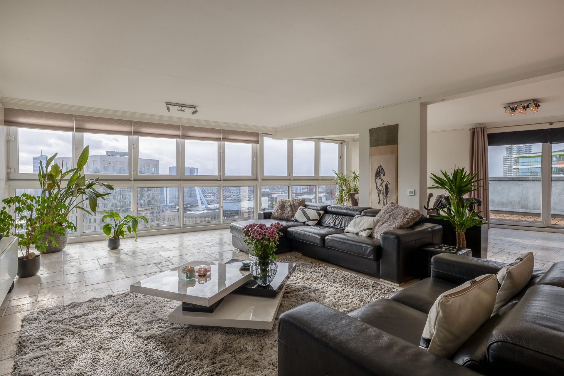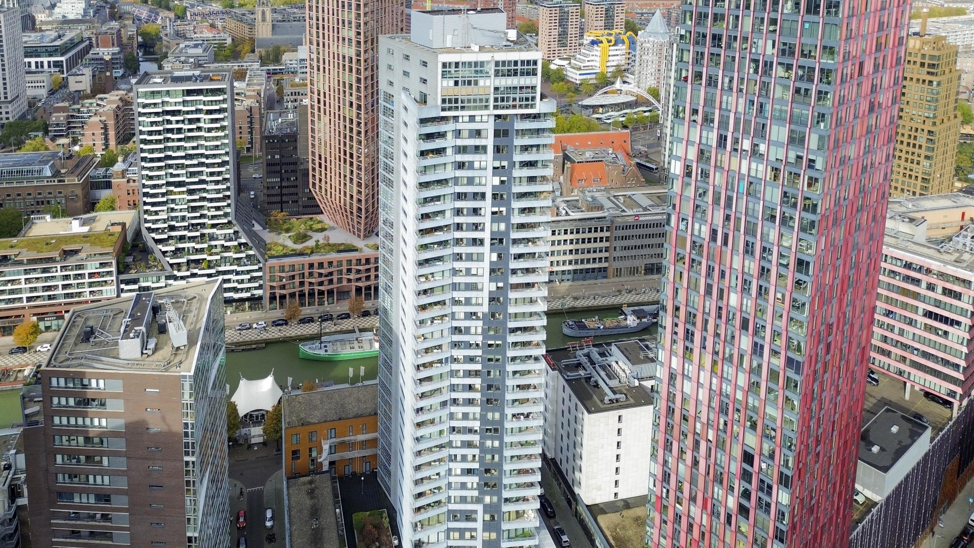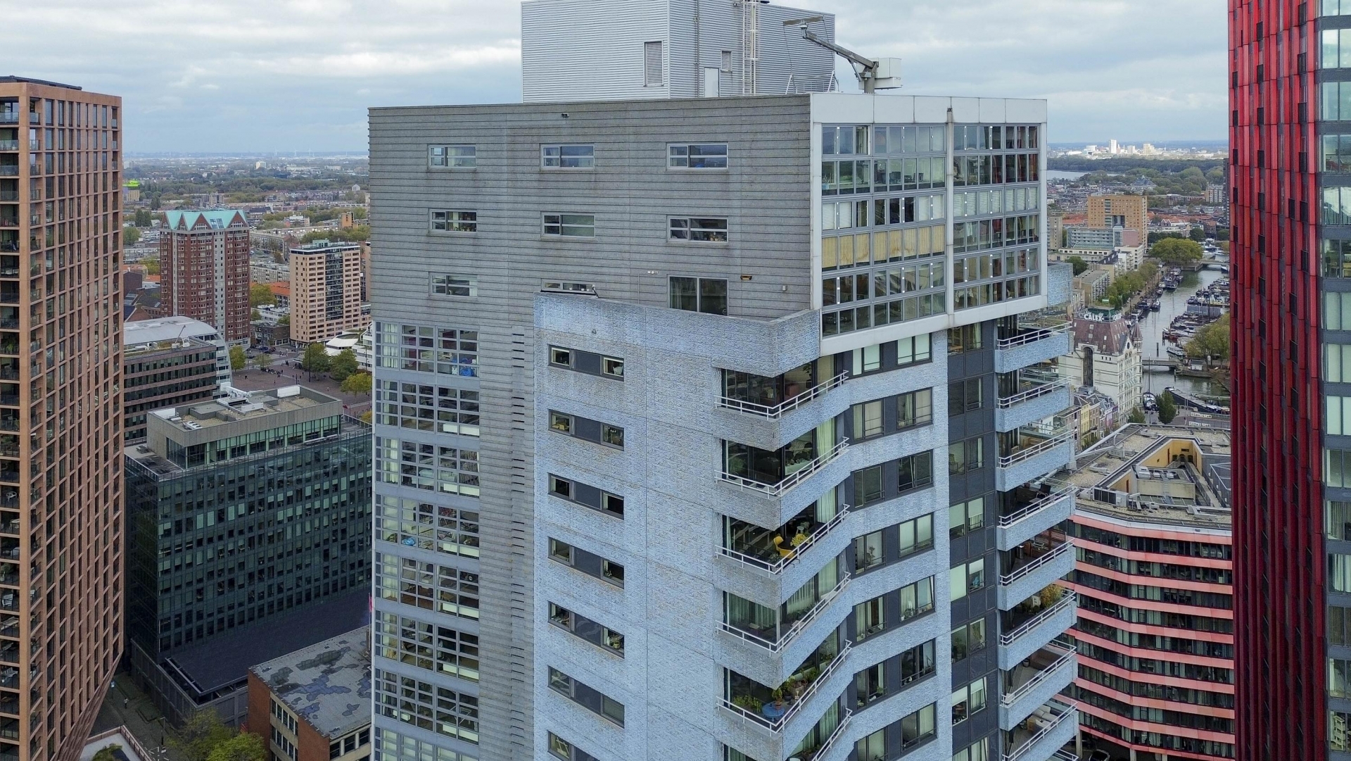 Binnenkomend via de centrale entree en lift kom je aan op de 34e verdieping. Daar opent zich een verrassend royale leefruimte, waar comfort en afwerking tot in detail samenkomen. Het panoramische uitzicht is werkelijk adembenemend; overdag kijk je uit over de stad en het water, 's avonds zorgen de duizenden lichtjes van Rotterdam voor een sfeer die nooit verveelt.