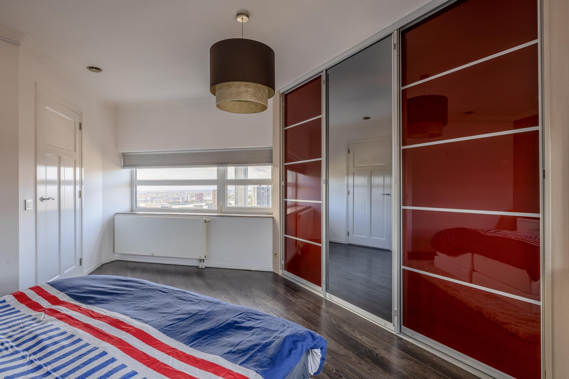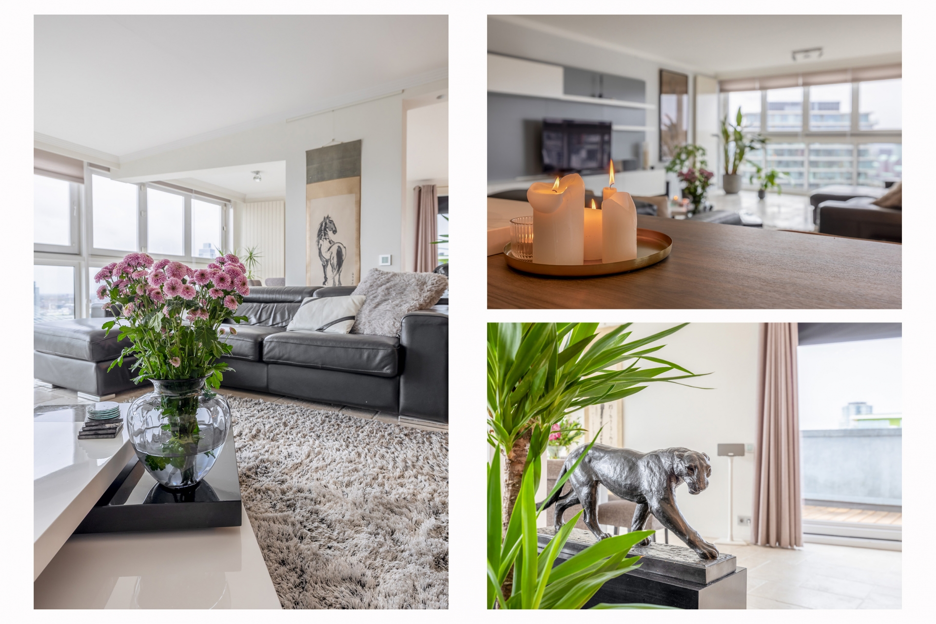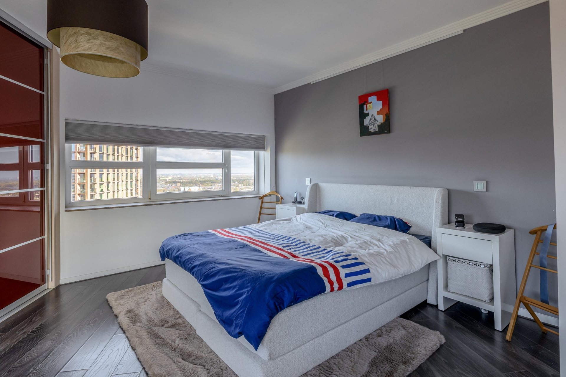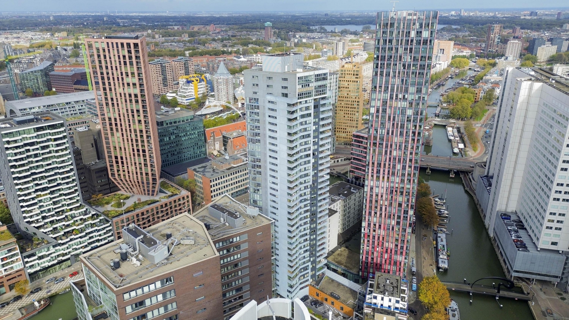 Binnenkomend via de centrale entree en lift kom je aan op de 34e verdieping. Daar opent zich een verrassend royale leefruimte, waar comfort en afwerking tot in detail samenkomen. Het panoramische uitzicht is werkelijk adembenemend; overdag kijk je uit over de stad en het water, 's avonds zorgen de duizenden lichtjes van Rotterdam voor een sfeer die nooit verveelt.