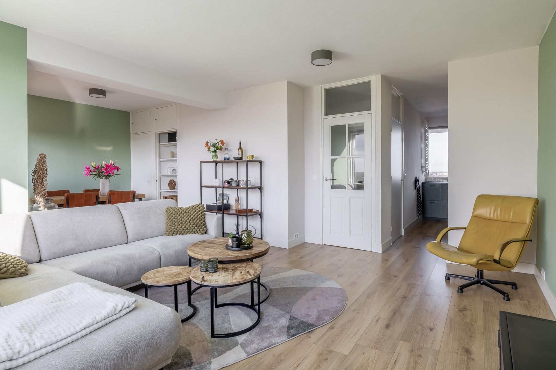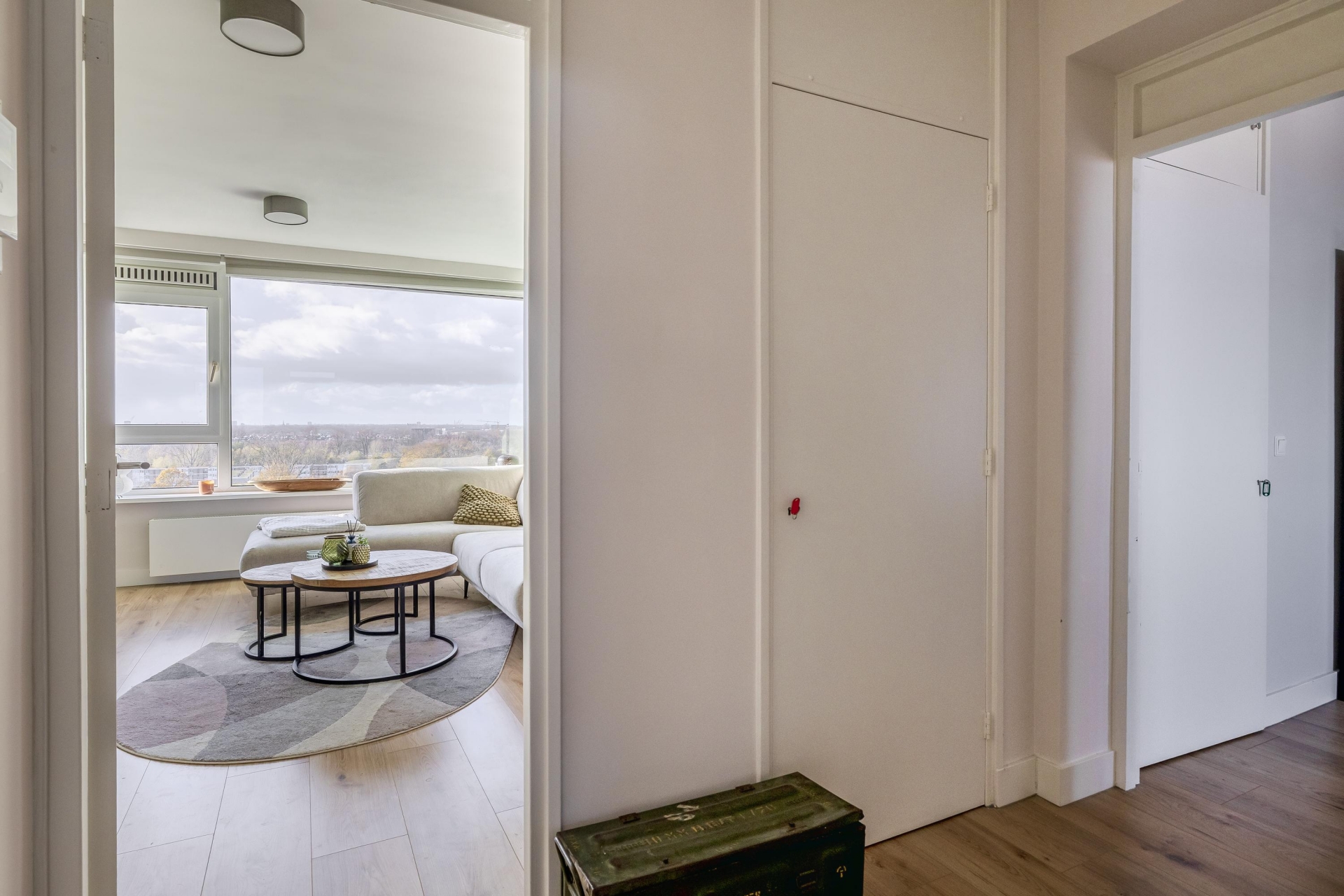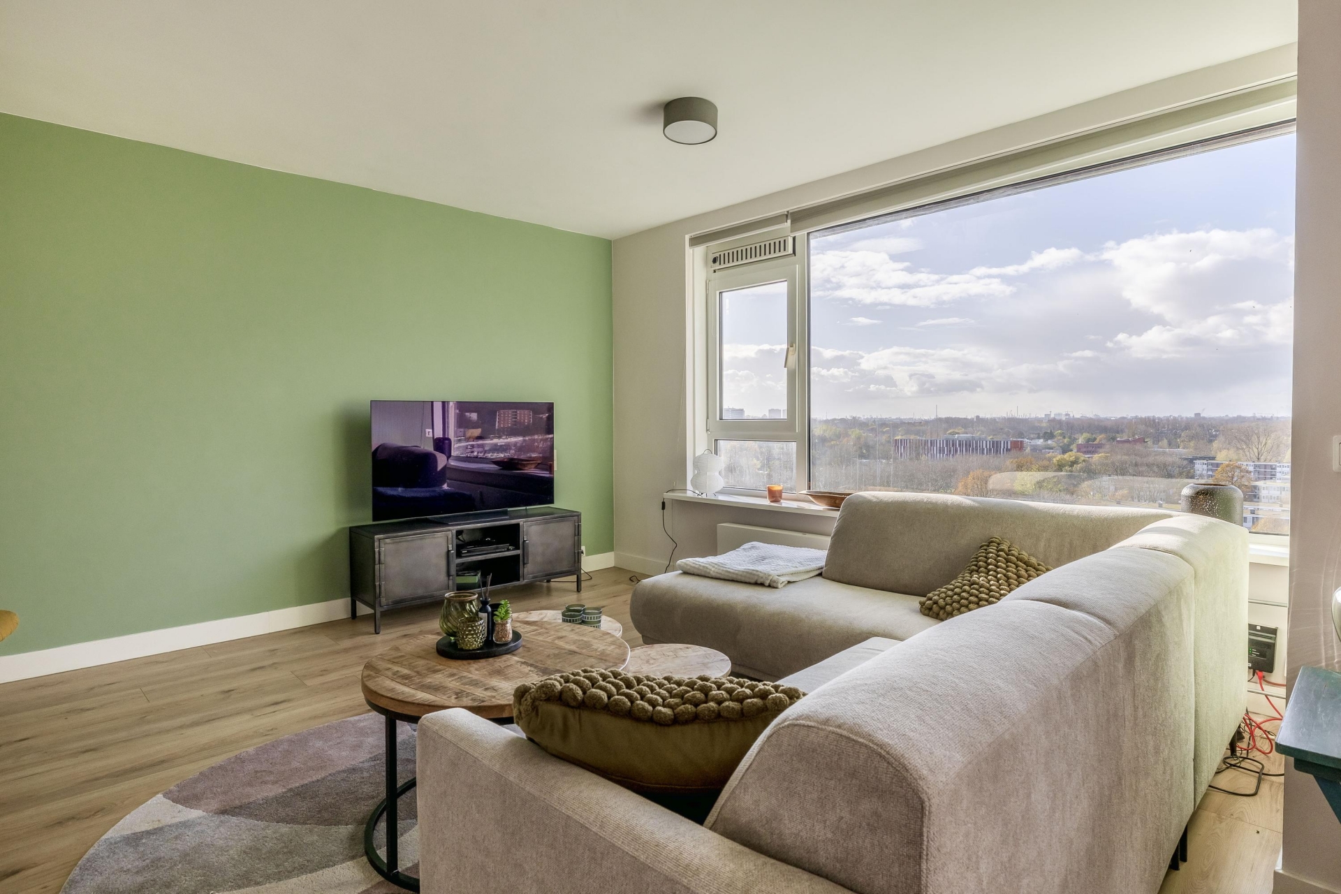 LICHTE WOONKAMER MET UITZICHT OVER DE STAD