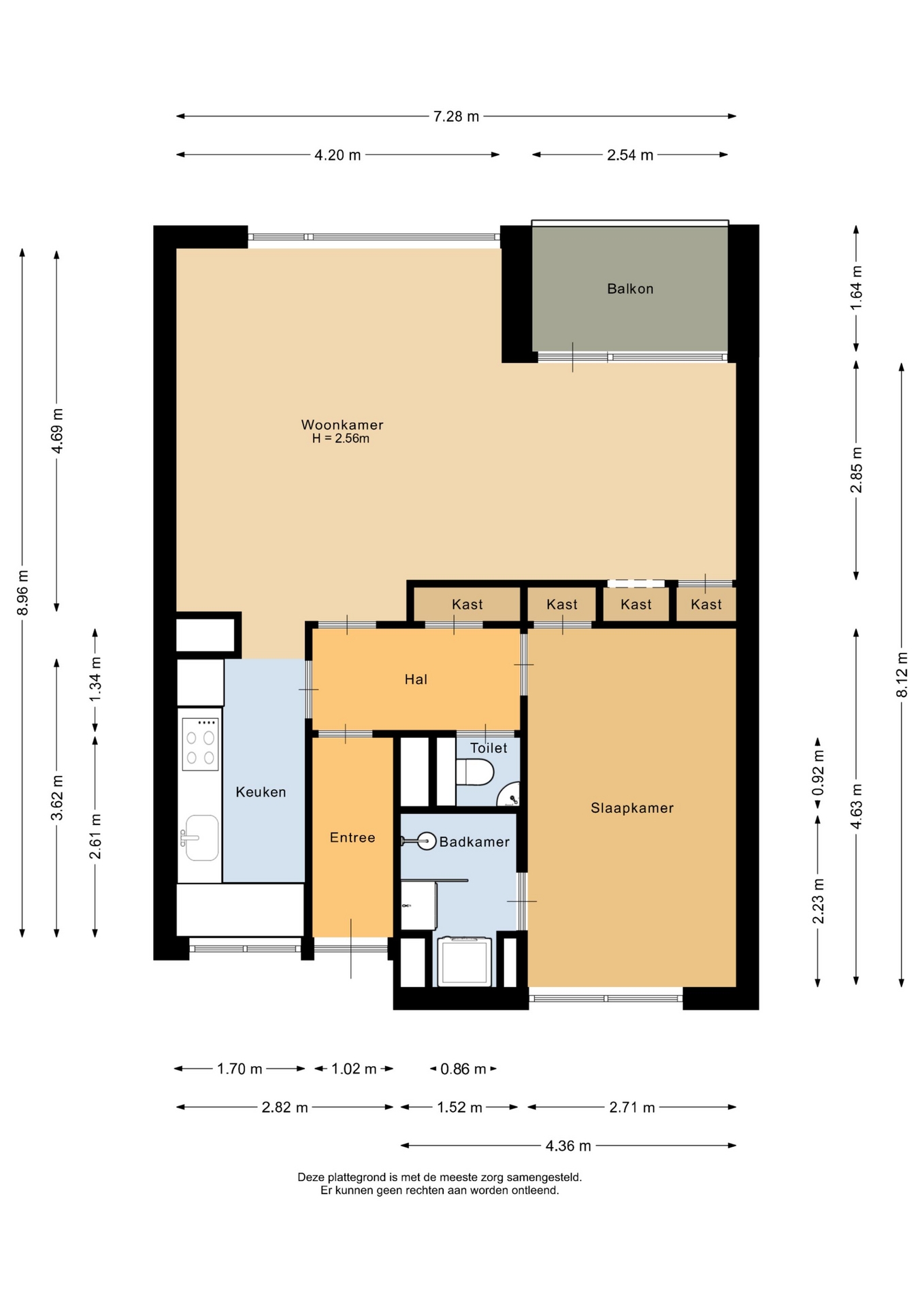 “Deze informatie is door ons met de nodige zorgvuldigheid samengesteld. Onzerzijds wordt echter geen enkele aansprakelijkheid aanvaard voor enige onvolledigheid, onjuistheid of anderszins, dan wel de gevolgen daarvan. Alle opgegeven maten en oppervlakten zijn indicatief.”