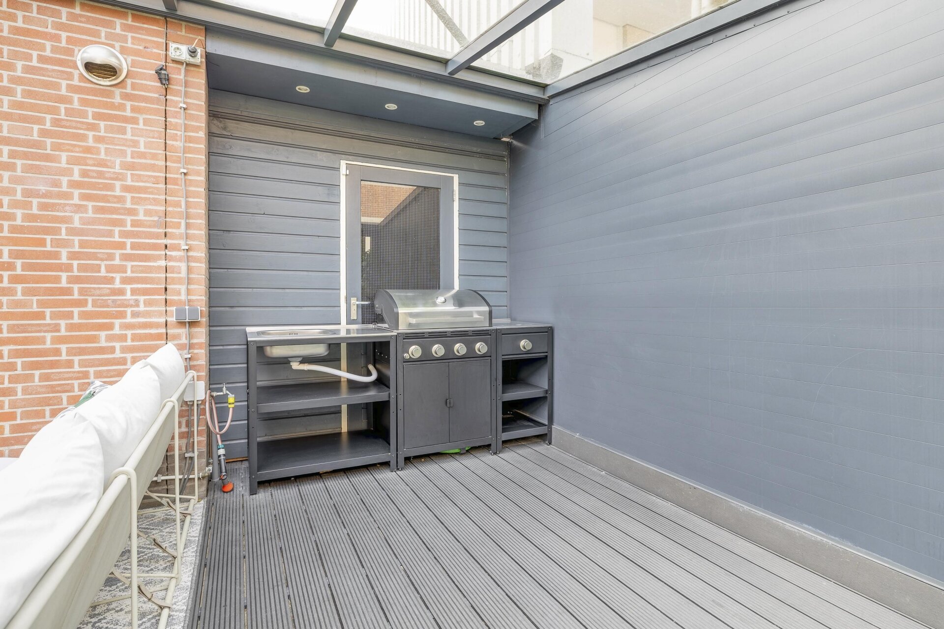 De eerste verdieping telt twee goed bemeten slaapkamers met laminaatvloeren en veel lichtinval. De badkamer is modern en uitgerust met een inloopdouche, wastafelmeubel, designradiator en luxe betegeling. Daarnaast is er een separaat tweede toilet en een aparte ruimte voor de wasmachine en cv-installatie.