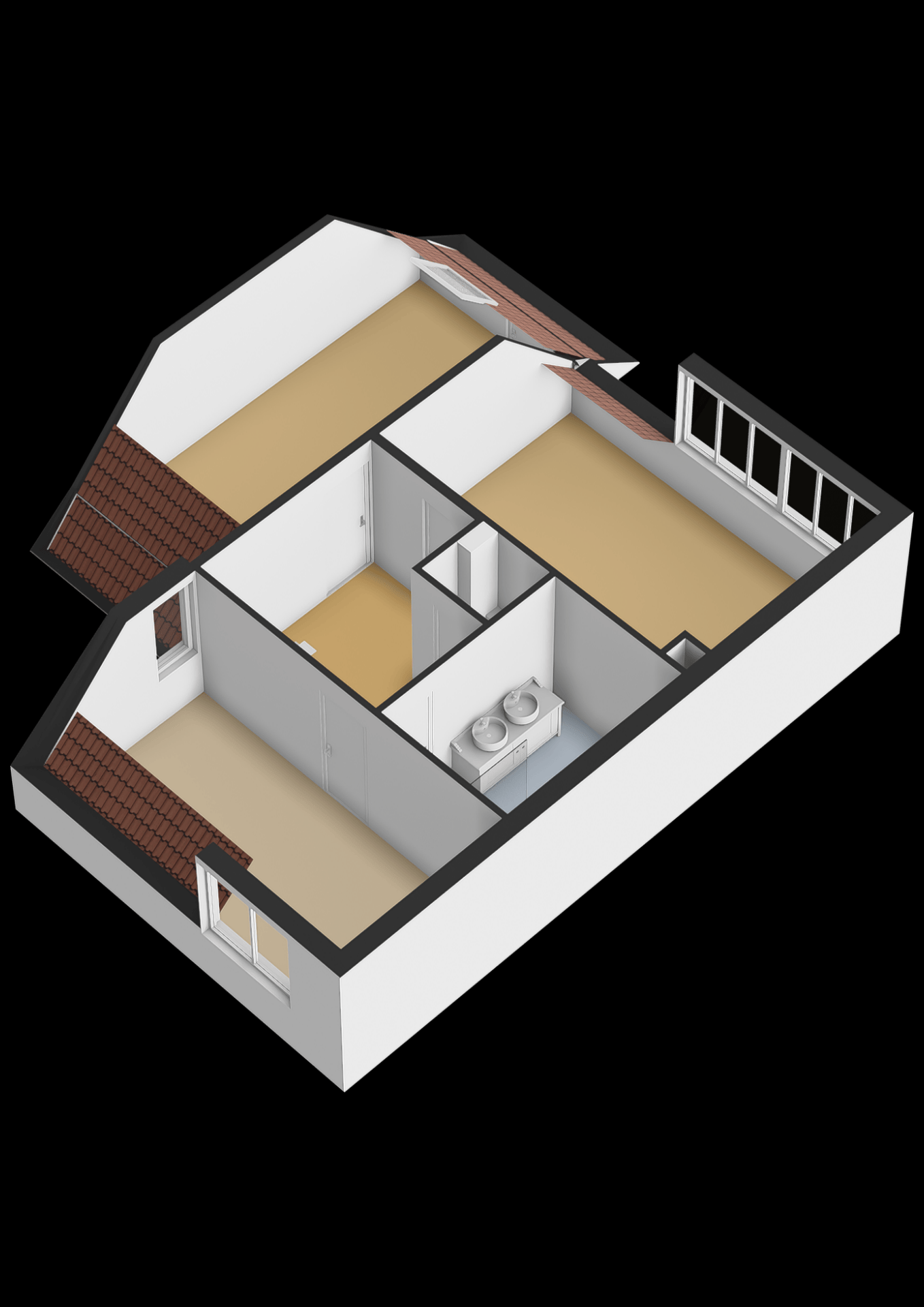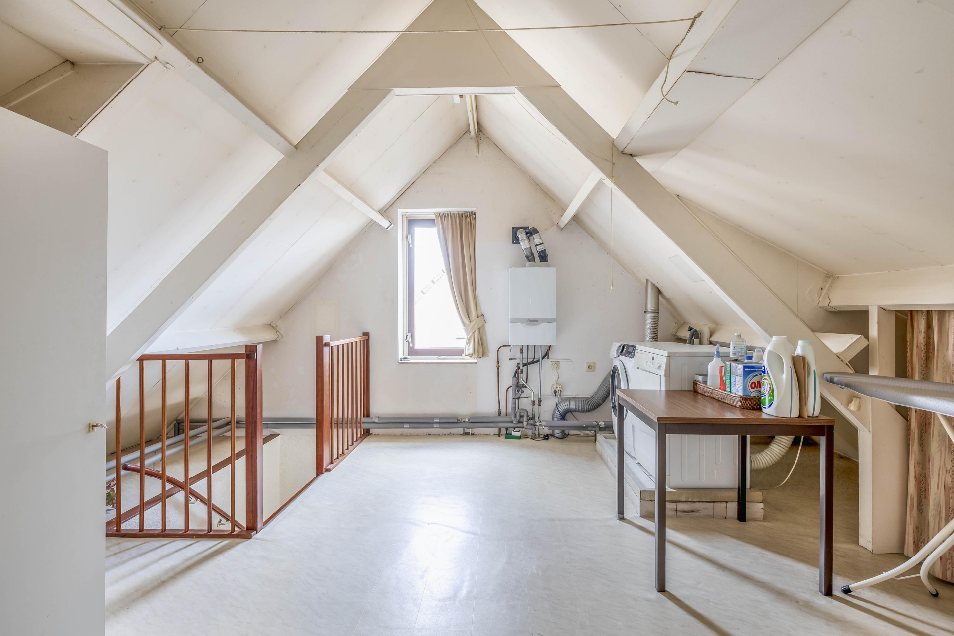 De badkamer is ruim opgezet en voorzien van een dubbele wastafel en een inloopdouche. Alles is netjes onderhouden en functioneel, met voldoende ruimte om hier eventueel een eigentijdse draai aan te geven. De tweede verdieping biedt extra ruimte, bijvoorbeeld voor een vierde slaapkamer of een combinatie van werken en opbergen. Dankzij de kapconstructie voelt deze verdieping ruim aan.